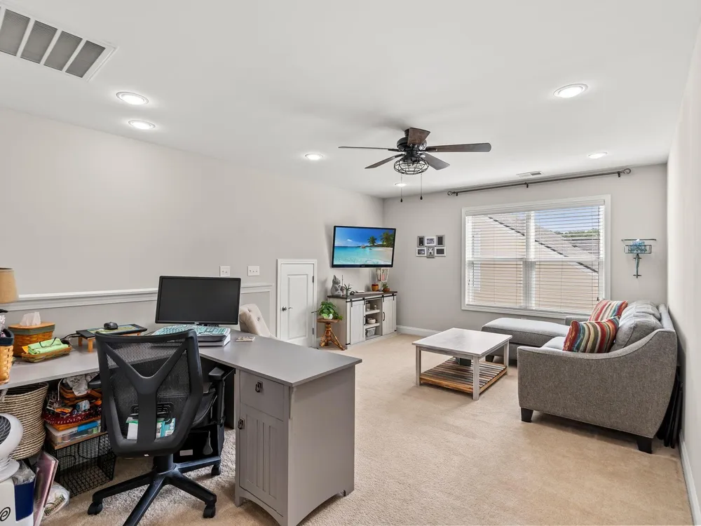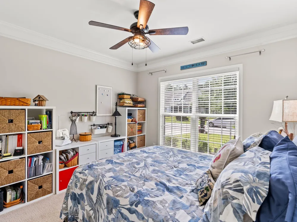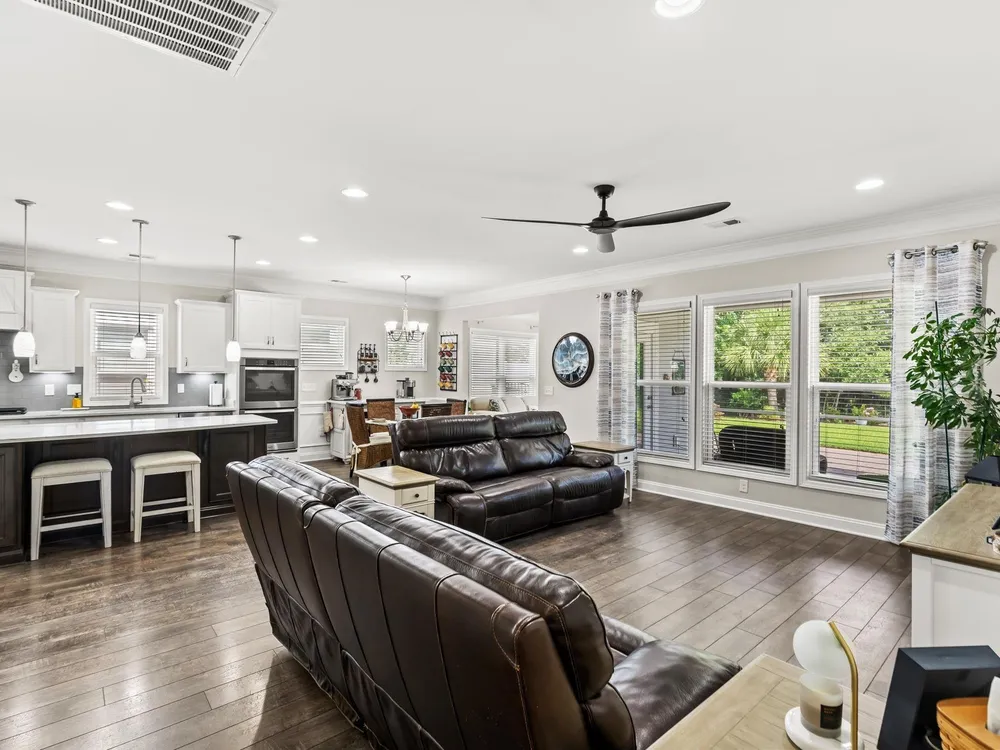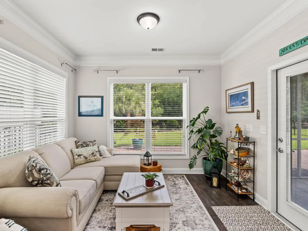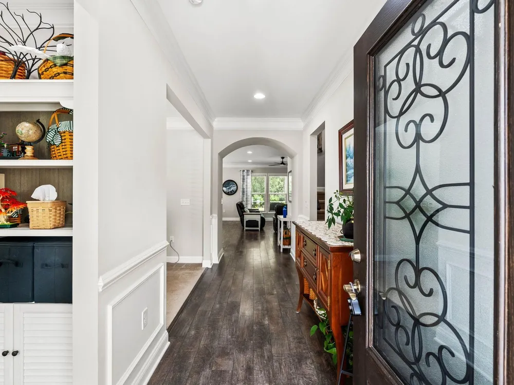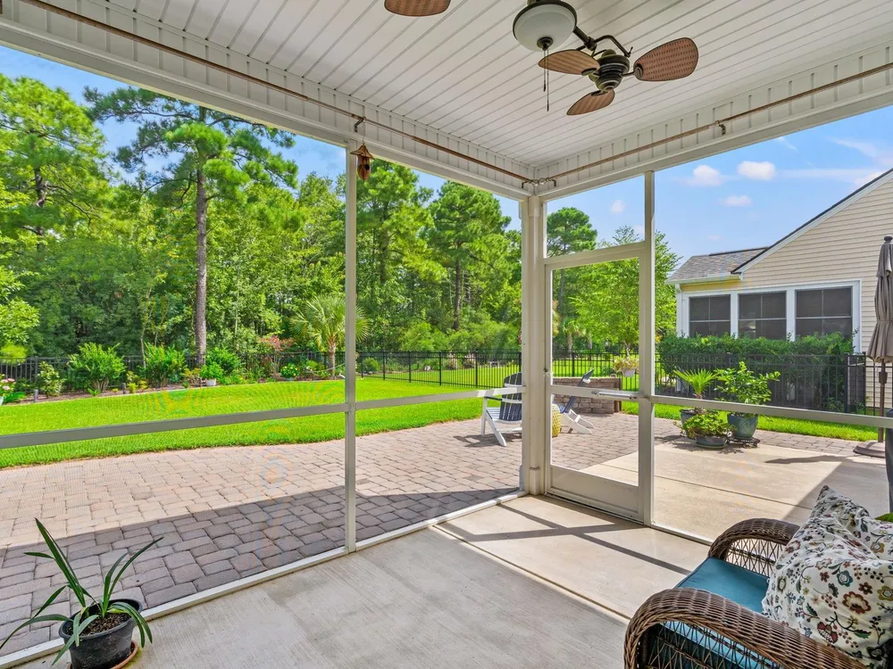 Welcome to 2450 Craven Drive, a truly exceptional home in the desirable Berkshire Forest community. This immaculate Abbeyville floor plan offers 3 bedrooms, 3 full bathrooms, and 2,380 heated square feet of thoughtfully designed living space. Every corner of this residence reflects quality craftsmanship and stylish upgrades, creating a home that is both elegant and comfortable. As you step inside, the foyer greets you with custom millwork and crown molding, setting the tone for the rest of the home. The main level features an inviting living room where natural light pours through large windows, opening seamlessly into a bright Carolina room—an ideal spot to enjoy morning coffee or unwind with a good book. A versatile flex room on this level provides the perfect setting for a home office, study, or den, while a guest bedroom and full bath offer privacy and convenience for visiting friends or family. The first-floor primary suite is a retreat of its own. Featuring tray ceilings and ample space for a king-sized bed and sitting area, it connects to a luxurious ensuite bathroom with a large tiled shower, dual vanities, and designer finishes. The walk-in closet is fitted with custom built-ins, offering both beauty and function with plenty of room to stay organized in style. Upstairs, the home continues to impress with a private retreat that can serve a variety of needs. A spacious loft provides a second living area, perfect for movie nights or a playroom. An office nook adds functionality, while the additional bedroom with a walk-in closet and a full bathroom makes this level ideal for extended family or guests. An oversized storage closet ensures you’ll never run out of space. At the heart of the home is a chef’s kitchen that blends form and function effortlessly. Outfitted with upgraded soft-close cabinetry, gleaming quartz countertops, stainless steel appliances, double ovens, and pull-out storage in the cabinets, this kitchen is as practical as it is stunning. The oversized island anchors the space, making it the perfect gathering spot for casual meals or entertaining guests, while the 5-burner gas range ensures every meal is prepared with ease. Outdoor living is just as impressive as the interior. Step out to the screened porch to enjoy quiet evenings, or entertain on the extended paver patio surrounded by lush landscaping. The fenced oversized backyard backs up to wooded privacy, offering a tranquil setting, while the front of the home faces a permanent green space, ensuring unobstructed views and peace of mind that it will never be built on. Additional features include a tankless hot water heater, providing energy efficiency and endless hot water, making daily living even more comfortable and convenient. Berkshire Forest is one of Myrtle Beach’s most beloved communities, known for its resort-style amenities. Residents enjoy access to a pool, lazy river, splash pad, playground, tennis courts, walking trails, and a community dock. The location offers convenient access to River Oaks Drive, Highway 501, Carolina Forest Boulevard, and International Drive, making shopping, dining, and entertainment just minutes away. This home is the perfect balance of luxury, comfort, and location. With every detail carefully considered, it is truly move-in ready and waiting for its next owner. Schedule your private showing today to experience all that 2450 Craven Drive has to offer—you won’t want to miss it!