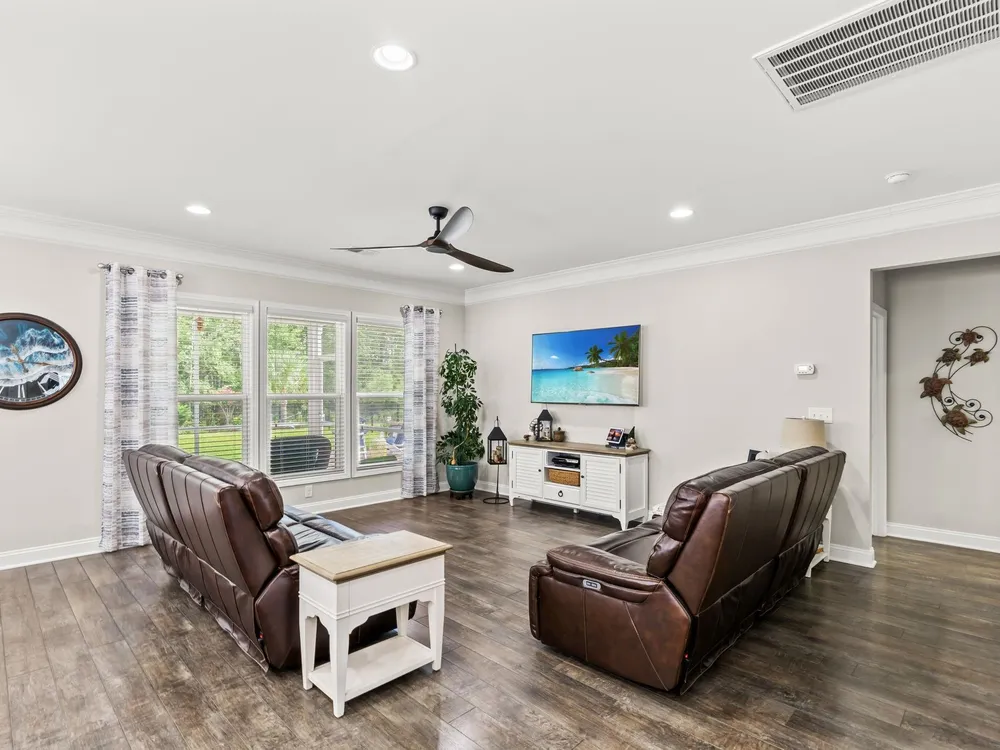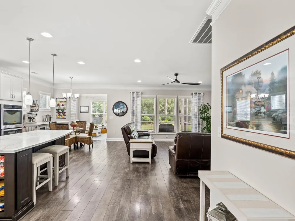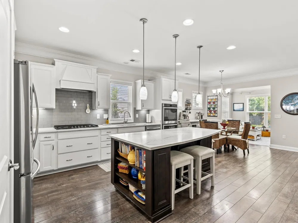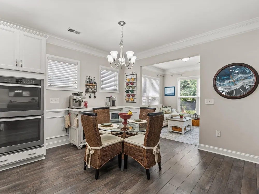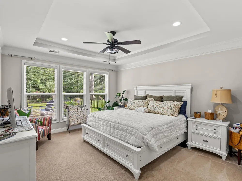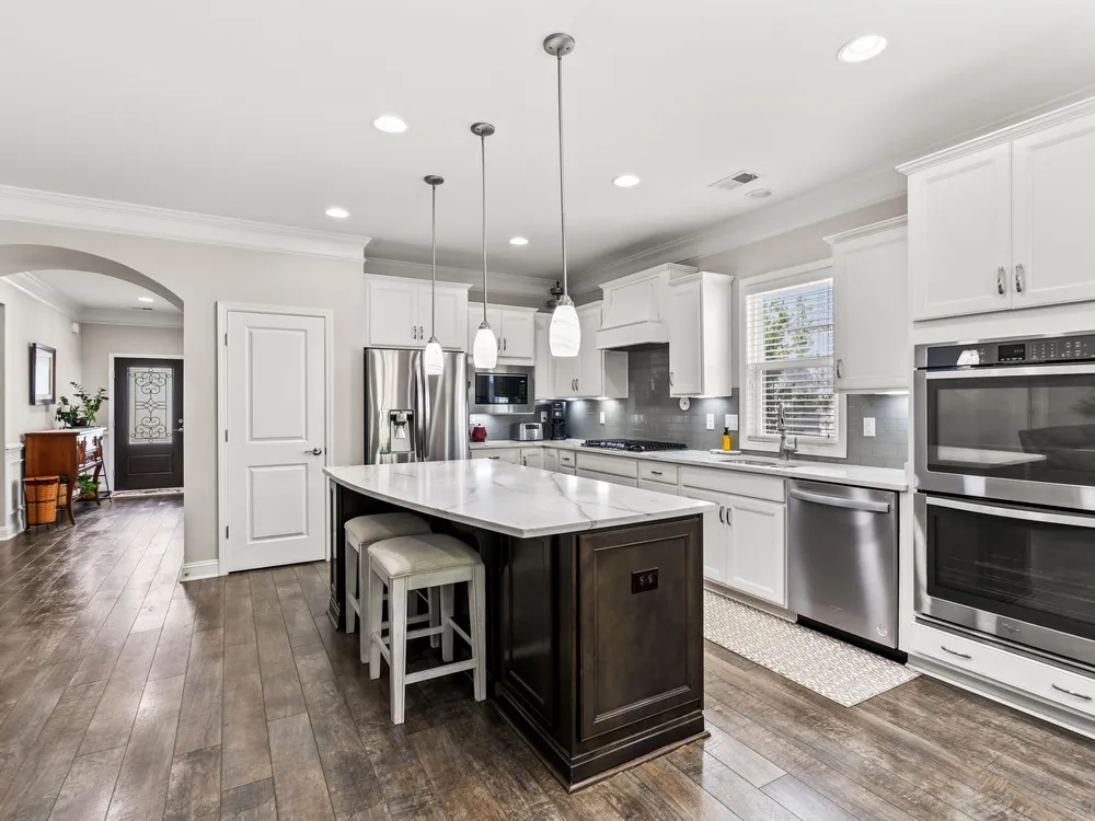 Welcome to 2450 Craven Drive, a truly exceptional home in the desirable Berkshire Forest community. This immaculate Abbeyville floor plan offers 3 bedrooms, 3 full bathrooms, and 2,380 heated square feet of thoughtfully designed living space. Every corner of this residence reflects quality craftsmanship and stylish upgrades, creating a home that is both elegant and comfortable. As you step inside, the foyer greets you with custom millwork and crown molding, setting the tone for the rest of the home. The main level features an inviting living room where natural light pours through large windows, opening seamlessly into a bright Carolina room—an ideal spot to enjoy morning coffee or unwind with a good book. A versatile flex room on this level provides the perfect setting for a home office, study, or den, while a guest bedroom and full bath offer privacy and convenience for visiting friends or family. The first-floor primary suite is a retreat of its own. Featuring tray ceilings and ample space for a king-sized bed and sitting area, it connects to a luxurious ensuite bathroom with a large tiled shower, dual vanities, and designer finishes. The walk-in closet is fitted with custom built-ins, offering both beauty and function with plenty of room to stay organized in style. Upstairs, the home continues to impress with a private retreat that can serve a variety of needs. A spacious loft provides a second living area, perfect for movie nights or a playroom. An office nook adds functionality, while the additional bedroom with a walk-in closet and a full bathroom makes this level ideal for extended family or guests. An oversized storage closet ensures you’ll never run out of space. At the heart of the home is a chef’s kitchen that blends form and function effortlessly. Outfitted with upgraded soft-close cabinetry, gleaming quartz countertops, stainless steel appliances, double ovens, and pull-out storage in the cabinets, this kitchen is as practical as it is stunning. The oversized island anchors the space, making it the perfect gathering spot for casual meals or entertaining guests, while the 5-burner gas range ensures every meal is prepared with ease. Outdoor living is just as impressive as the interior. Step out to the screened porch to enjoy quiet evenings, or entertain on the extended paver patio surrounded by lush landscaping. The fenced oversized backyard backs up to wooded privacy, offering a tranquil setting, while the front of the home faces a permanent green space, ensuring unobstructed views and peace of mind that it will never be built on. Additional features include a tankless hot water heater, providing energy efficiency and endless hot water, making daily living even more comfortable and convenient. Berkshire Forest is one of Myrtle Beach’s most beloved communities, known for its resort-style amenities. Residents enjoy access to a pool, lazy river, splash pad, playground, tennis courts, walking trails, and a community dock. The location offers convenient access to River Oaks Drive, Highway 501, Carolina Forest Boulevard, and International Drive, making shopping, dining, and entertainment just minutes away. This home is the perfect balance of luxury, comfort, and location. With every detail carefully considered, it is truly move-in ready and waiting for its next owner. Schedule your private showing today to experience all that 2450 Craven Drive has to offer—you won’t want to miss it!