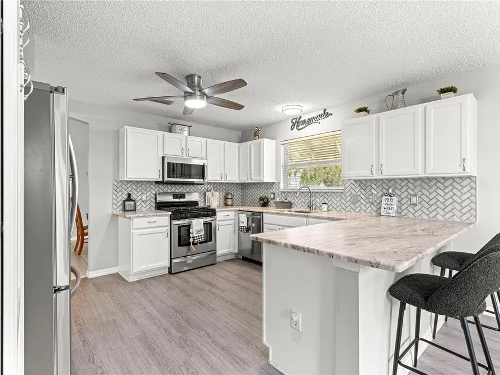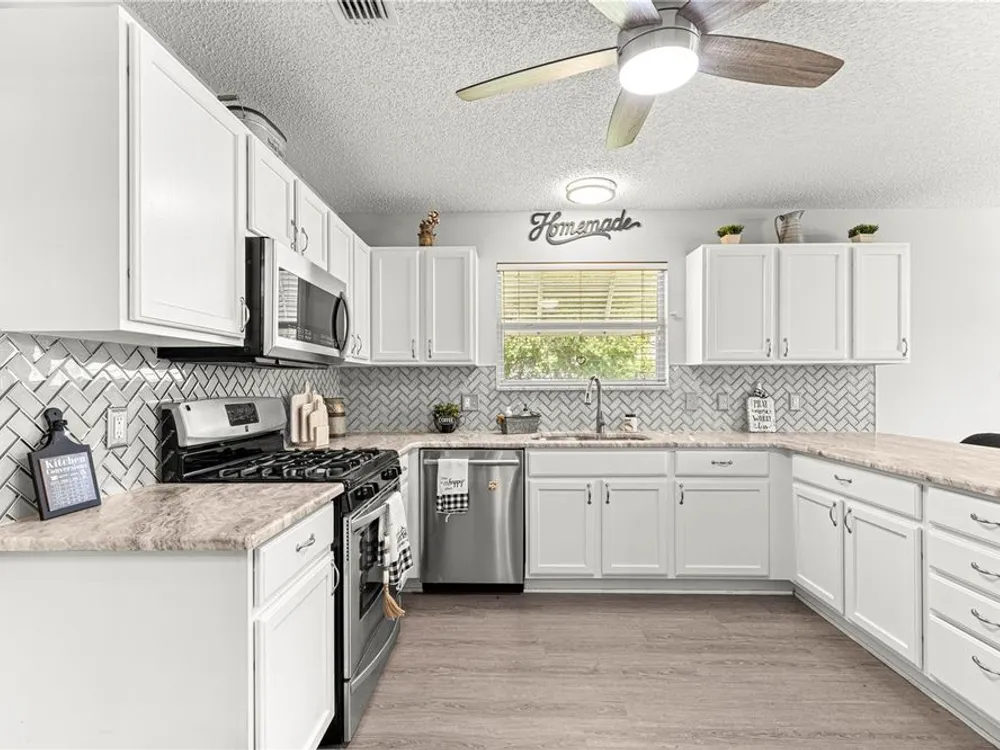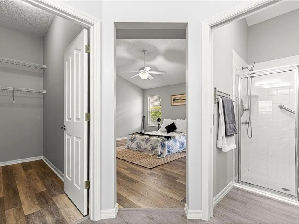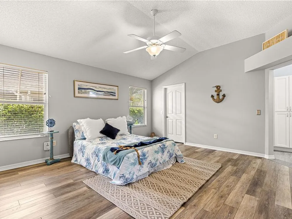 - Ceiling Fan(s), Eat-in Kitchen, High Ceilings, Main Level Primary, Walk-In Closet(s), Window Treatments