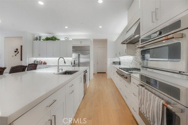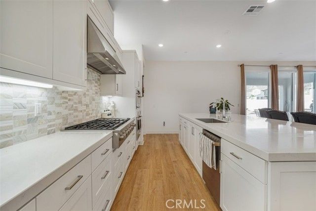 One-of-a-Kind Resort-Style Home on Rare Dual-Parcel Lot in Gated 55+ Community! Welcome to 24501 Via Sendero, a stunning 2024-built residence located on a massive corner lot with two separate APNs (3244-161-036 & 3244-161-037) in the highly desirable Estrada 3 at Tesoro Highlands Valencia community. This is one of the few homes offering such an expansive lot, delivering privacy, space, and exceptional value. Experience elegant resort-style living in this immaculate 3-bedroom + office, 3.5-bathroom home with approximately 2,550 sq ft of open-concept luxury. Step inside to find premium vinyl wood flooring, soaring high ceilings, and a thoughtfully designed layout ideal for comfort and entertaining. The custom 4-panel sliding glass doors seamlessly connect indoor and outdoor living spaces. The chef’s kitchen is a showstopper—equipped with a 6-burner gas range and built-in griddle, stainless steel appliances, a spacious island with seating, modern countertops, designer backsplash, a dry bar, and abundant cabinetry. A walk-in pantry with custom wood shelving and a large laundry room with ample storage add everyday convenience. Retreat to the luxurious primary suite with direct patio access, a generous walk-in closet, and spacious bathroom ensuite featuring dual sinks and a large w