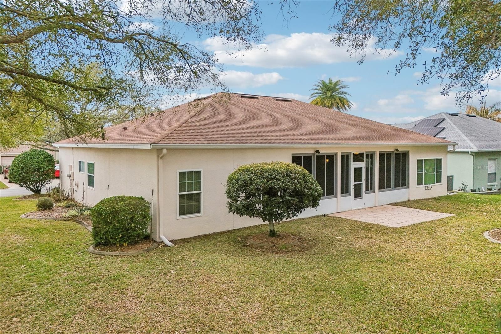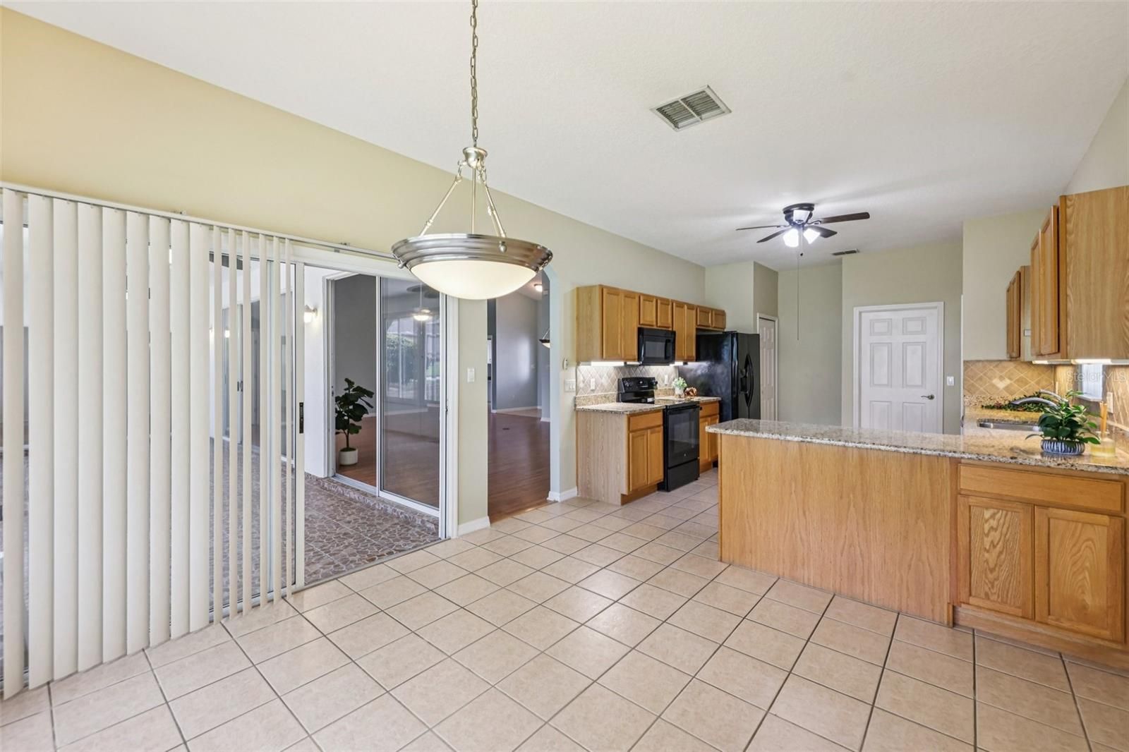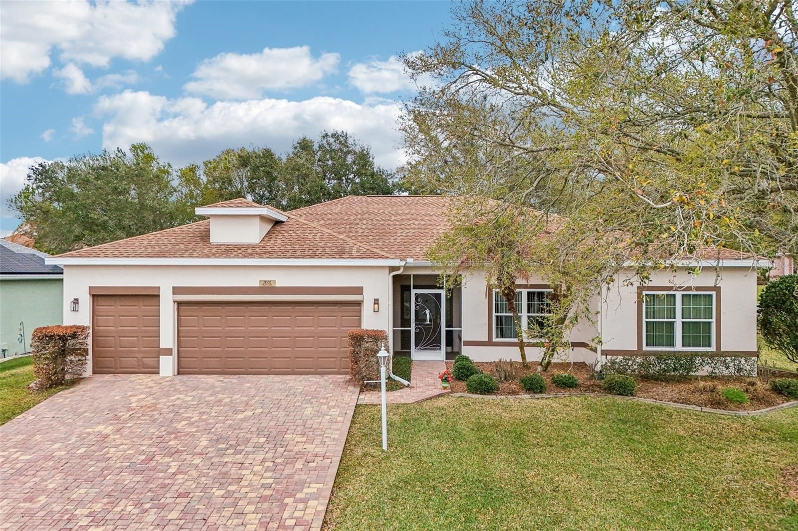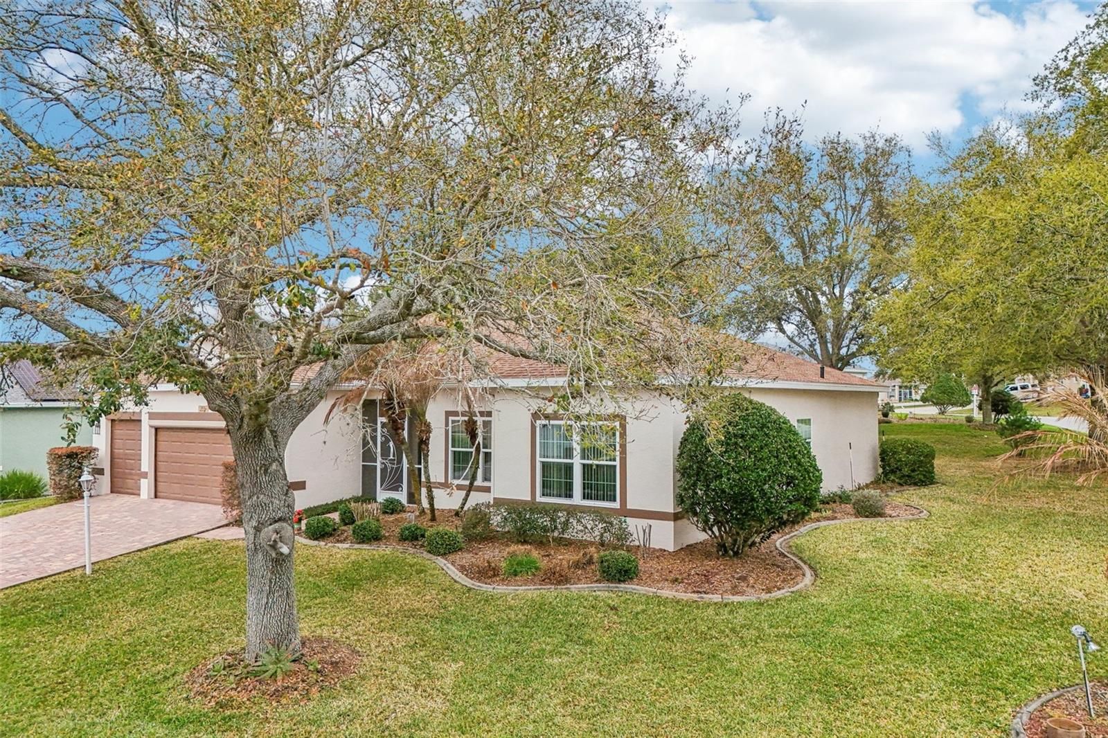 One or more photo(s) has been virtually staged. Take advantage of this exciting new price and step into easy Florida living in this beautifully maintained home! From the moment you arrive, you’re welcomed by a paved driveway, walkway, and screened front entry framed by mature landscaping—setting the tone for what’s inside. Enjoy laminate flooring throughout (except BR 2) and a bright, open living and dining area with center sliding glass doors, creating a seamless flow for everyday living and entertaining. The kitchen is designed with both function and style in mind, offering granite countertops, expanded pantry storage, an eat-in dinette, and the convenience of an interior laundry room. The spacious owner’s suite easily fits king-size furnishings and features a walk-in closet and private ensuite with dual sinks, step-in shower, and a relaxing soaking tub. A comfortable guest bedroom and a versatile third room—ideal as a home office, hobby space, or additional guest room—offer flexibility to fit your lifestyle. You’ll love the roomy 2-car garage plus a dedicated golf-cart garage, providing plenty of storage and convenience. Step out to your enclosed lanai with sliders, creating a true all-weather outdoor living space to enjoy year-round. Major updates include: ROOF (2018), AC (2013), and WATER SOFTENER. Located in The Plantation at Leesburg, this sought-after gated 55+ community offers resort-style amenities including two golf courses, three clubhouses with heated pools, tennis, pickleball, fitness centers, walking trails, and a full calendar of social activities—all just minutes from shopping, dining, medical facilities, and the airport. Now is the time—schedule your private showing today and see firsthand the value, comfort, and lifestyle this home has to offer before it’s gone!