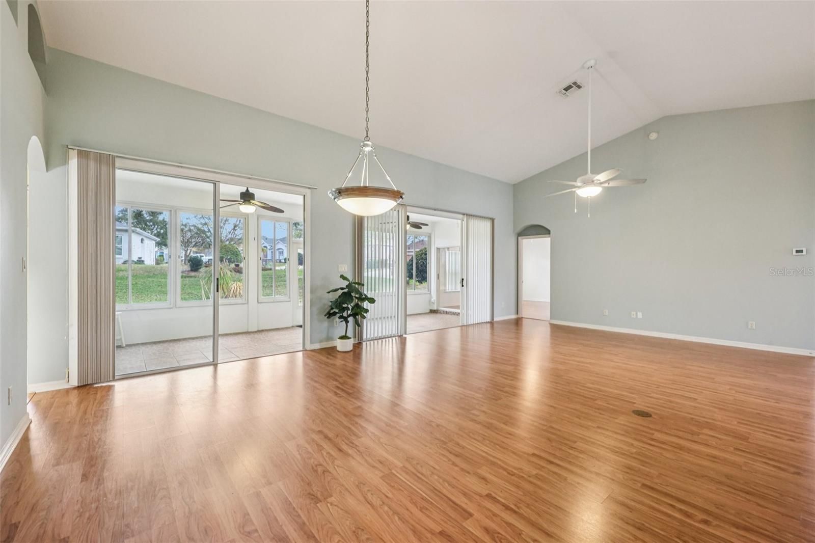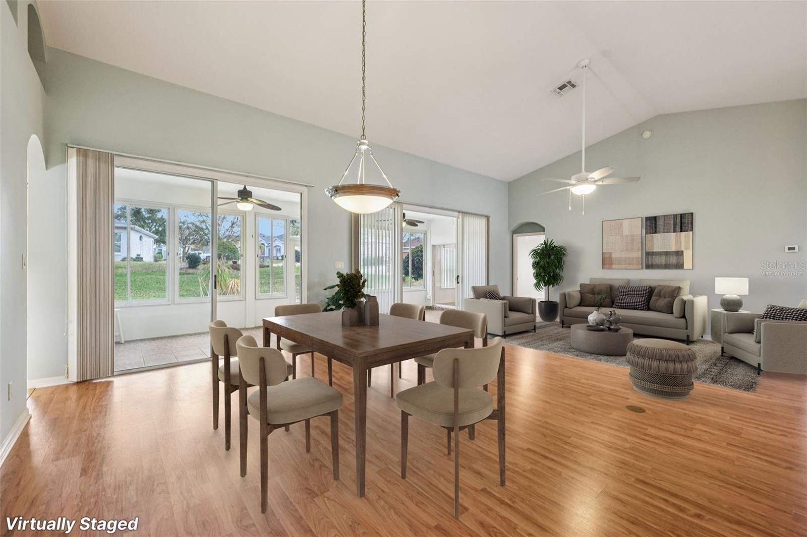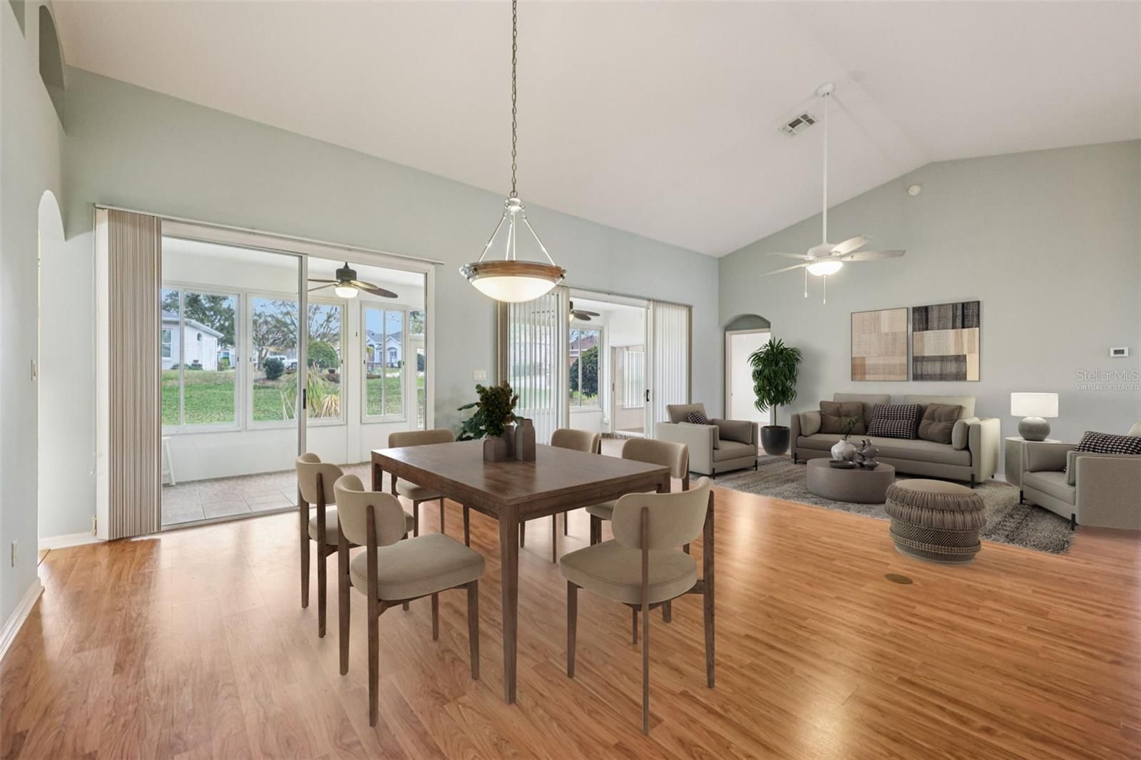 One or more photo(s) has been virtually staged. Take advantage of this exciting new price and step into easy Florida living in this beautifully maintained home! From the moment you arrive, you’re welcomed by a paved driveway, walkway, and screened front entry framed by mature landscaping—setting the tone for what’s inside. Enjoy laminate flooring throughout (except BR 2) and a bright, open living and dining area with center sliding glass doors, creating a seamless flow for everyday living and entertaining. The kitchen is designed with both function and style in mind, offering granite countertops, expanded pantry storage, an eat-in dinette, and the convenience of an interior laundry room. The spacious owner’s suite easily fits king-size furnishings and features a walk-in closet and private ensuite with dual sinks, step-in shower, and a relaxing soaking tub. A comfortable guest bedroom and a versatile third room—ideal as a home office, hobby space, or additional guest room—offer flexibility to fit your lifestyle. You’ll love the roomy 2-car garage plus a dedicated golf-cart garage, providing plenty of storage and convenience. Step out to your enclosed lanai with sliders, creating a true all-weather outdoor living space to enjoy year-round. Major updates include: ROOF (2018), AC (2013), and WATER SOFTENER. Located in The Plantation at Leesburg, this sought-after gated 55+ community offers resort-style amenities including two golf courses, three clubhouses with heated pools, tennis, pickleball, fitness centers, walking trails, and a full calendar of social activities—all just minutes from shopping, dining, medical facilities, and the airport. Now is the time—schedule your private showing today and see firsthand the value, comfort, and lifestyle this home has to offer before it’s gone!