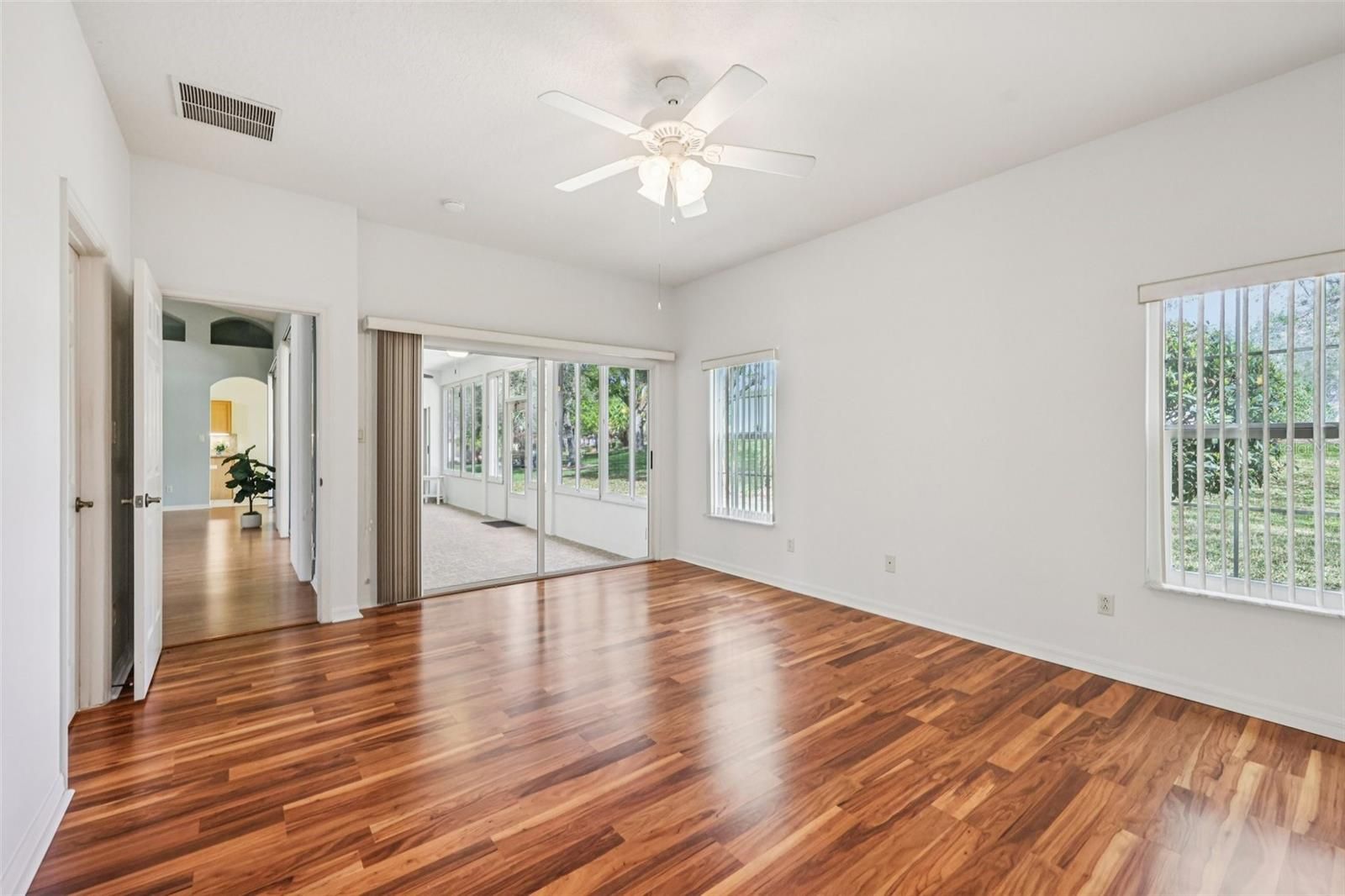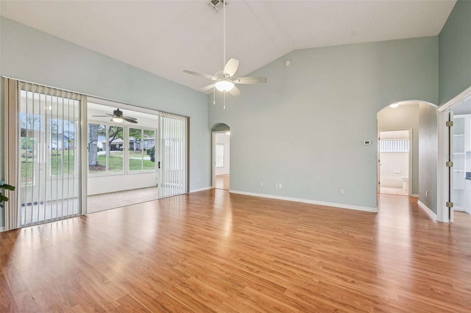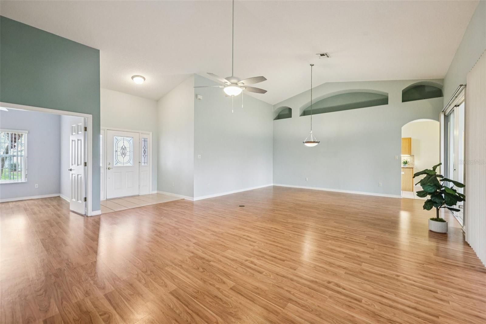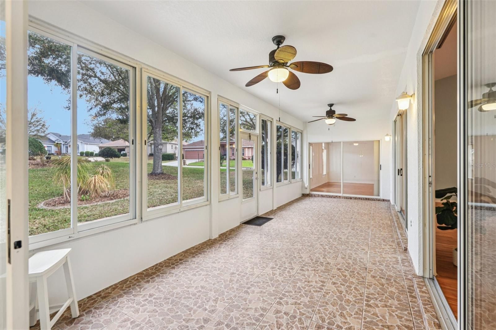 One or more photo(s) has been virtually staged. Take advantage of this exciting new price and step into easy Florida living in this beautifully maintained home! From the moment you arrive, you’re welcomed by a paved driveway, walkway, and screened front entry framed by mature landscaping—setting the tone for what’s inside. Enjoy laminate flooring throughout (except BR 2) and a bright, open living and dining area with center sliding glass doors, creating a seamless flow for everyday living and entertaining. The kitchen is designed with both function and style in mind, offering granite countertops, expanded pantry storage, an eat-in dinette, and the convenience of an interior laundry room. The spacious owner’s suite easily fits king-size furnishings and features a walk-in closet and private ensuite with dual sinks, step-in shower, and a relaxing soaking tub. A comfortable guest bedroom and a versatile third room—ideal as a home office, hobby space, or additional guest room—offer flexibility to fit your lifestyle. You’ll love the roomy 2-car garage plus a dedicated golf-cart garage, providing plenty of storage and convenience. Step out to your enclosed lanai with sliders, creating a true all-weather outdoor living space to enjoy year-round. Major updates include: ROOF (2018), AC (2013), and WATER SOFTENER. Located in The Plantation at Leesburg, this sought-after gated 55+ community offers resort-style amenities including two golf courses, three clubhouses with heated pools, tennis, pickleball, fitness centers, walking trails, and a full calendar of social activities—all just minutes from shopping, dining, medical facilities, and the airport. Now is the time—schedule your private showing today and see firsthand the value, comfort, and lifestyle this home has to offer before it’s gone!