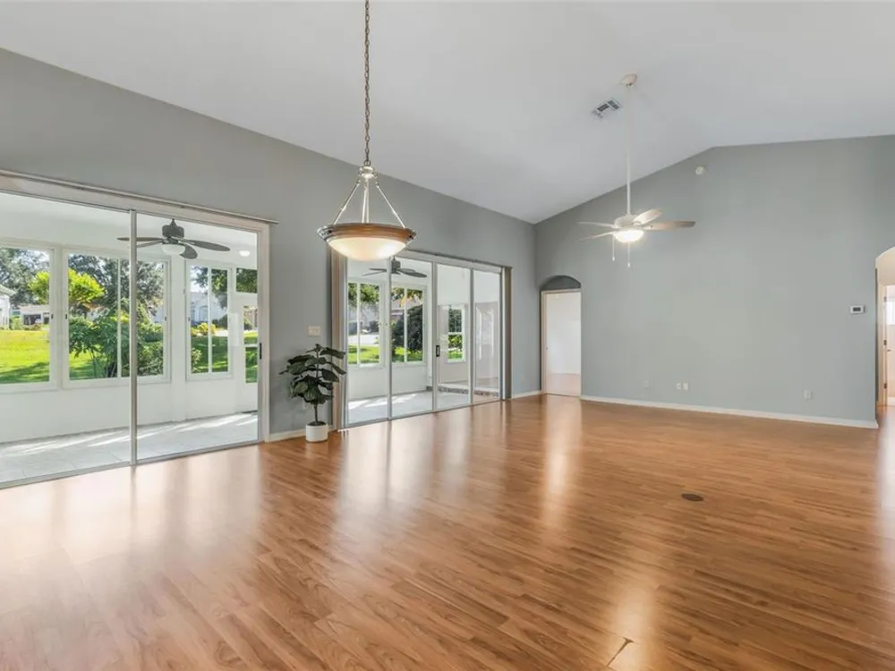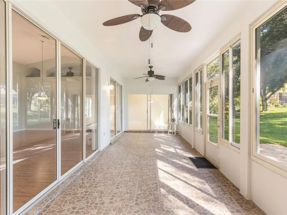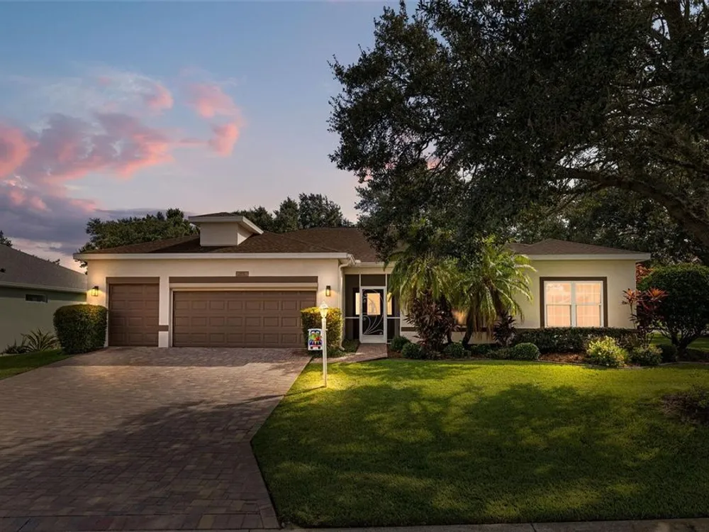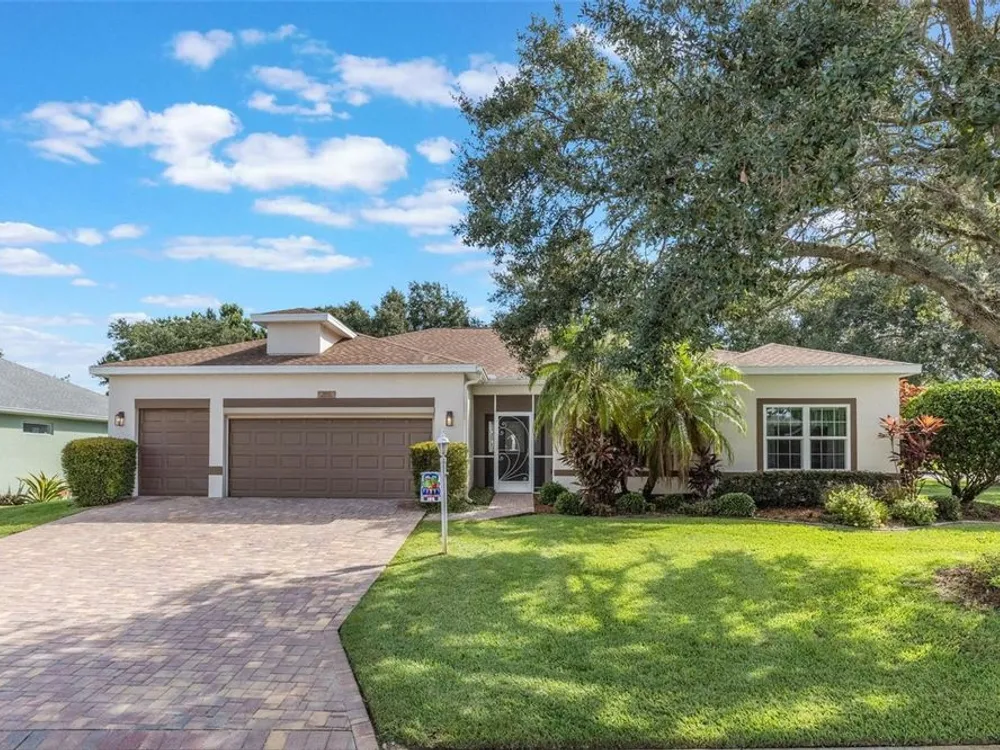 MOVE-IN READY and packed with FEATURES! This well-maintained home welcomes you with a PAVED DRIVEWAY, paved walkway, and a screened-in front entrance surrounded by established landscaping. Inside, enjoy laminate flooring throughout (except BR 2) and a bright and open living room/dining room combination with center sliding glass doors. The kitchen offers ample granite countertops, an expanded pantry, eat-in dinette room along with an inside laundry for convenience. The spacious owner’s suite easily accommodates king-size furniture and includes a walk-in closet. The ensuite offers dual sinks, step-in shower, and a relaxing soaking tub. The guest bedroom is comfortable and inviting, while the third room serves as a versatile flex space—perfect as another bedroom or home office. A roomy 2-car garage plus a GOLF-CART GARAGE provides plenty of storage. You will appreciate your enclosed lanai with sliders that creates an all-weather outdoor room, expanding your living space year-round. *** ROOF 2018 ** AC 2013 *** The Plantation at Leesburg is a sought-after 55+ gated community offering two golf courses, three clubhouses each with a heated pool, tennis courts, pickleball courts, fitness centers, walking trails, and endless social activities. Conveniently located near shopping, dining, medical facilities, parks, and the airport. Don’t miss this opportunity! Schedule your showing today and experience the perfect combination of comfort, style, and functionality.