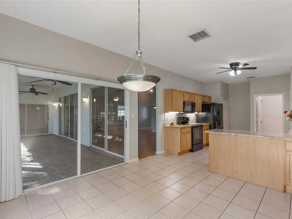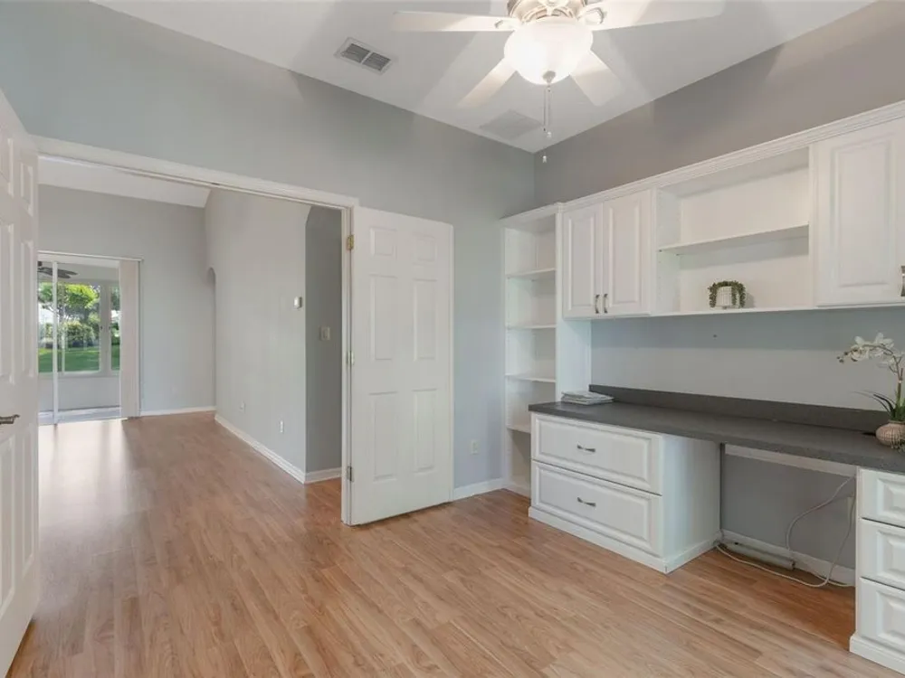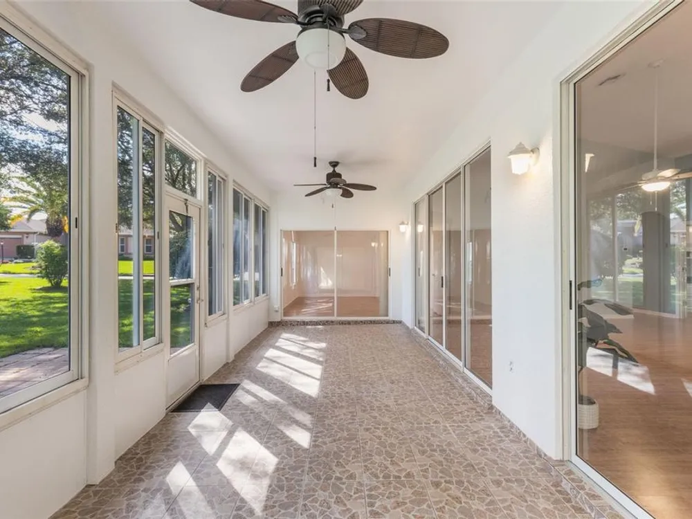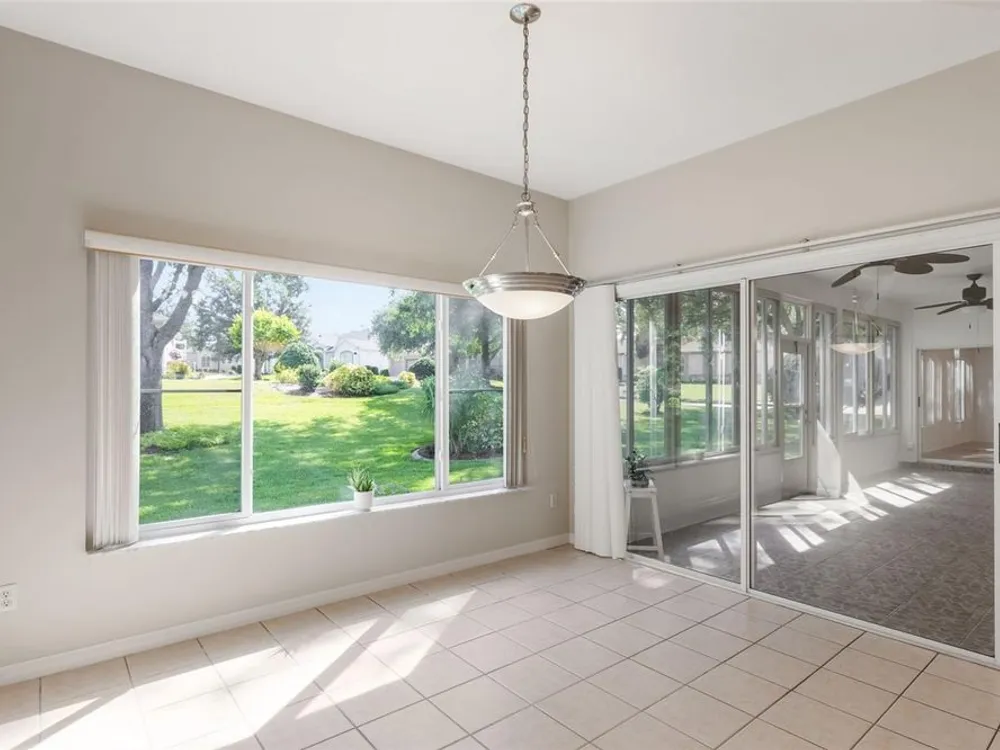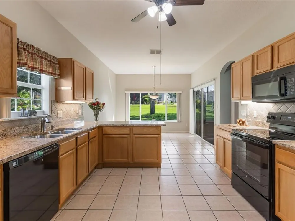 MOVE-IN READY and packed with FEATURES! This well-maintained home welcomes you with a PAVED DRIVEWAY, paved walkway, and a screened-in front entrance surrounded by established landscaping. Inside, enjoy laminate flooring throughout (except BR 2) and a bright and open living room/dining room combination with center sliding glass doors. The kitchen offers ample granite countertops, an expanded pantry, eat-in dinette room along with an inside laundry for convenience. The spacious owner’s suite easily accommodates king-size furniture and includes a walk-in closet. The ensuite offers dual sinks, step-in shower, and a relaxing soaking tub. The guest bedroom is comfortable and inviting, while the third room serves as a versatile flex space—perfect as another bedroom or home office. A roomy 2-car garage plus a GOLF-CART GARAGE provides plenty of storage. You will appreciate your enclosed lanai with sliders that creates an all-weather outdoor room, expanding your living space year-round. *** ROOF 2018 ** AC 2013 *** The Plantation at Leesburg is a sought-after 55+ gated community offering two golf courses, three clubhouses each with a heated pool, tennis courts, pickleball courts, fitness centers, walking trails, and endless social activities. Conveniently located near shopping, dining, medical facilities, parks, and the airport. Don’t miss this opportunity! Schedule your showing today and experience the perfect combination of comfort, style, and functionality.