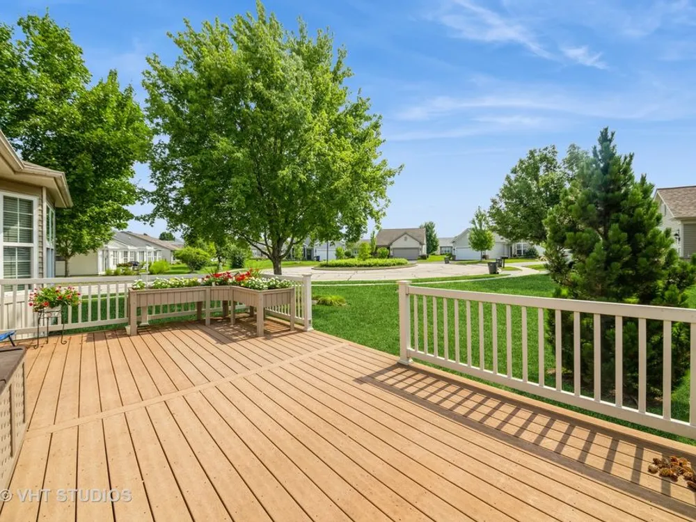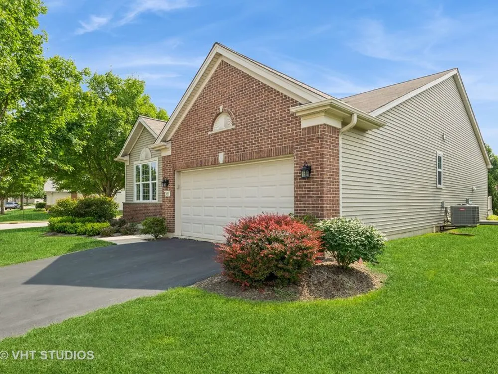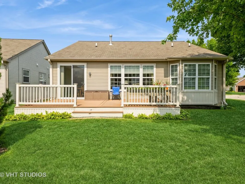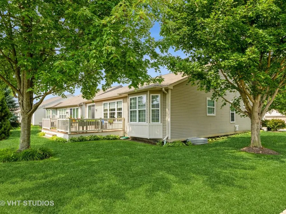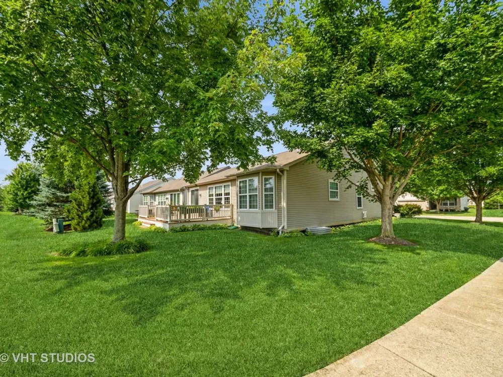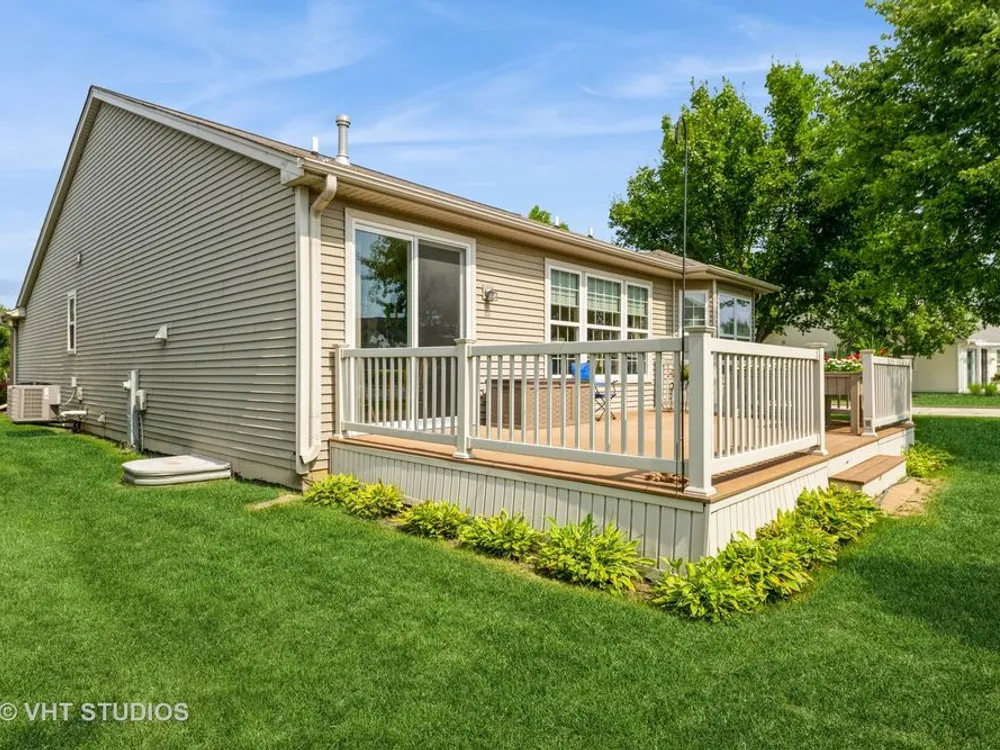 Beautiful Wilmette model with an EXTENDED GARAGE & UNFINISHED BASEMENT with separate workshop area. Large 20x12 composite deck with raised flower beds will stay. Kitchen has cherry cabinets, corian counters, tile backsplash, newer microwave & range (1/23),refrigerator (2018) & under cabinet lighting. HWH has been replaced (2014). NEW AC & FURNACE, but roof is original but in good shape. House has a FIREPLACE and TV will stay and has SURROUND SOUND & SUB-WOOFER. Master Bedroom has a BAY WINDOW. Sprinkler system "as is" but can be put in working condition. Edgewater is an Active Adult community and one person living in house has to be 55+. HOA cuts grass and shovels snow (2" or more), seal coat driveways every 2 years, has 24/7 guard, 2 pools and hot tub, tennis/pickle ball courts; many activities to participate in. Live in a Wonderful Community with many things to do!