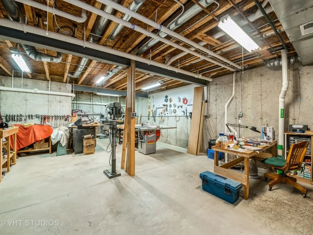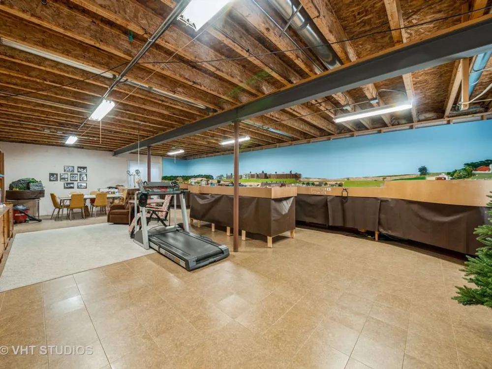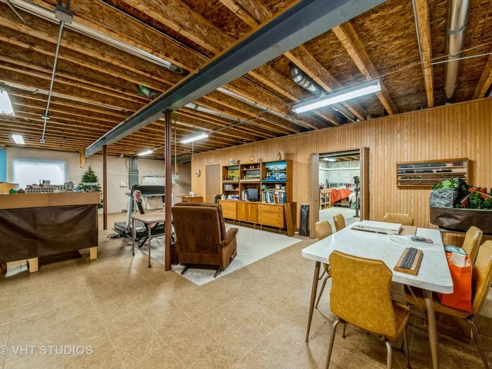 - Bedroom on Main Level, Full Bathroom, Walk-In Closet(s), High Ceilings, Den, Game Room, Workshop, Entrance Foyer, Separate Shower, Dual Sinks, Living/Dining Room