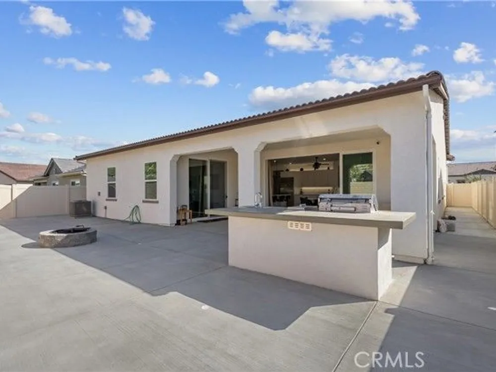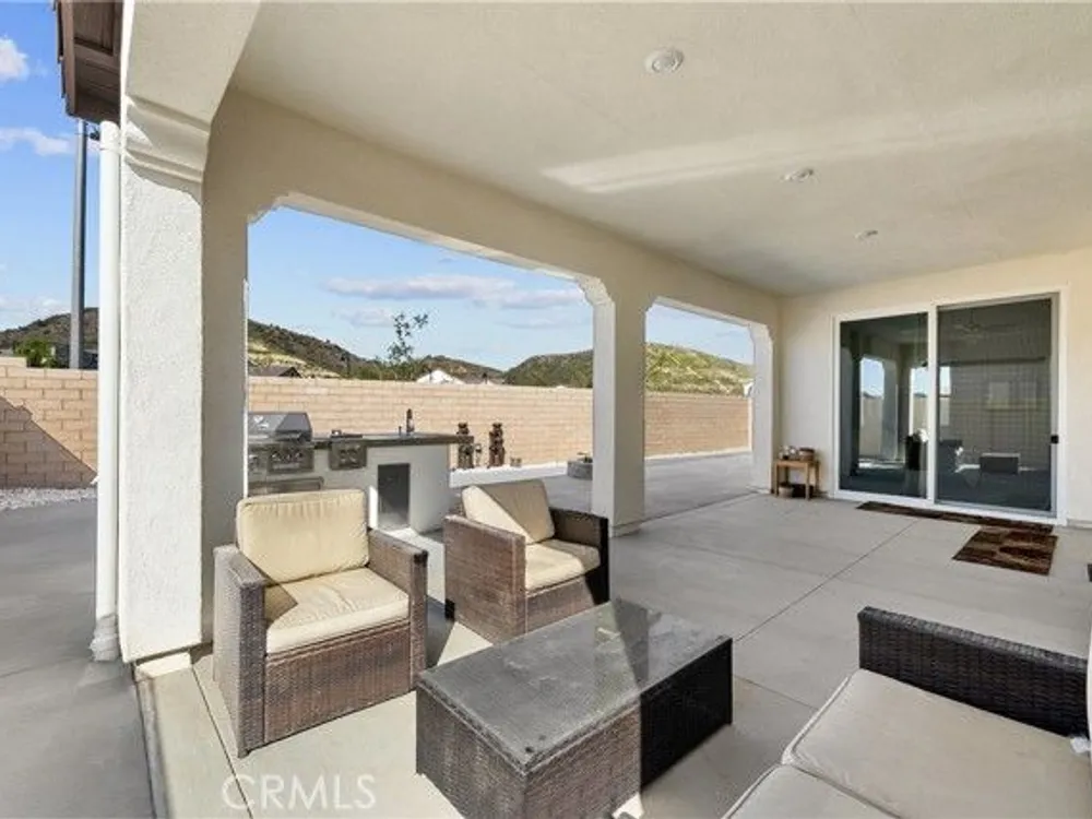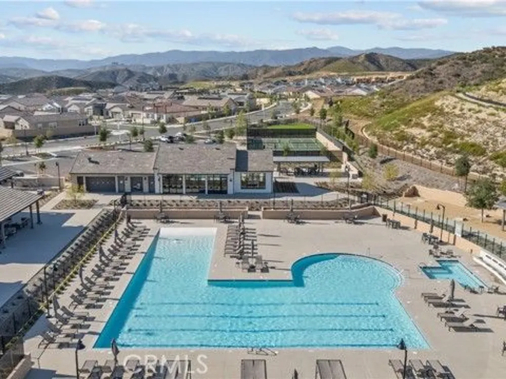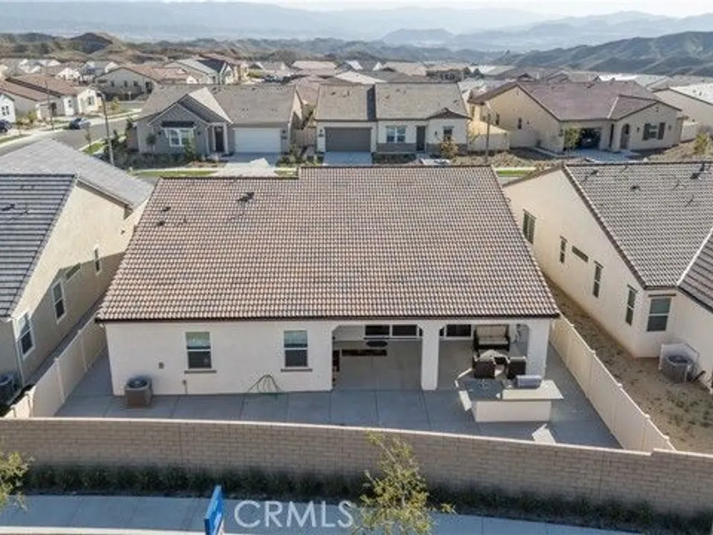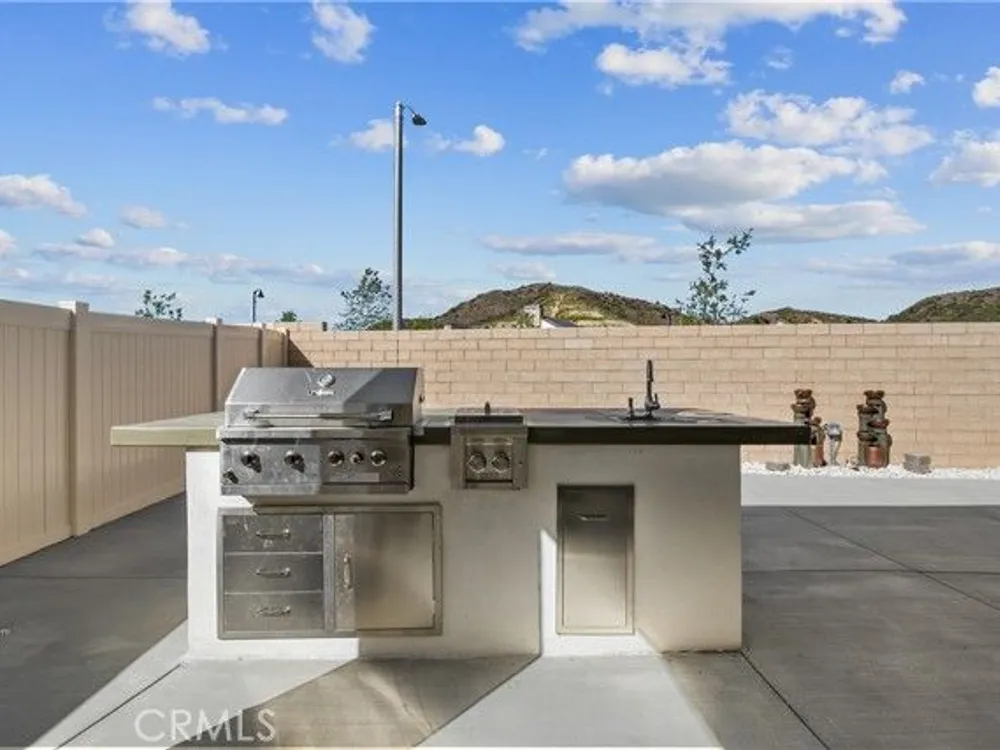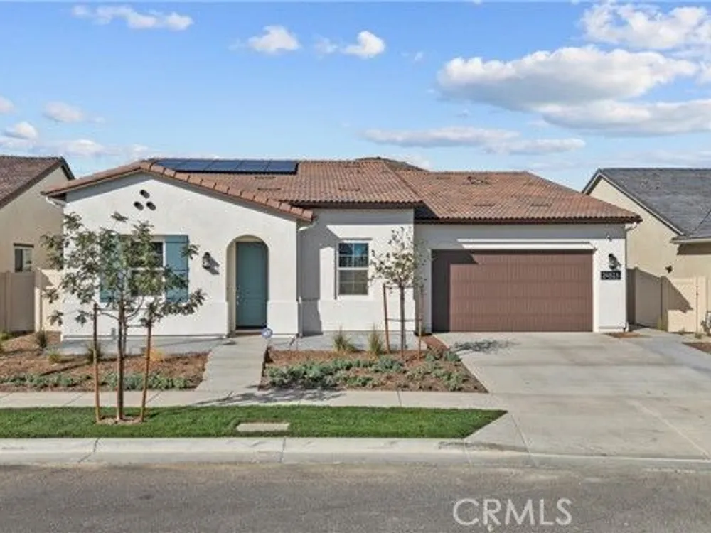 Beautiful Valencia Home! Elegant Resort Style living in a gated 55+ community. Built in 2024, this well-manicured Estrada 3 home offers an open floor plan with 3 bedrooms, plus an office, 3.5 bathrooms with over 2,530 square feet of ample living space. There are many features which include quality vinyl flooring, high ceilings, custom 4 panel slider doors that provide indoor outdoor access for a relaxed and comfort living, also great for entertaining. This amazing home offers a Chef's kitchen with stainless steel appliances, 6 burner gas stove with integrated griddle on the side, modern countertops, plenty of cabinetry, a long dry bar, and an island with sink and seating area that opens to the family room, recessed lighting, storage space and more. Off of the kitchen is a large walk-in pantry with custom wood shelving. Across the pantry is the spacious laundry room with plenty of counter space and more storage space. All bedrooms have ceiling fans/light fixtures. Primary bedroom has a large walk-in closet and sliding glass doors that lead to the patio. Inside the private ensuite is the primary bathroom equipped with a double sink vanity, large walk-in shower with bench and walk-in closet. There is Central AC and Heating, ceiling fans, decorative lighting and chandeliers throughout this home and a tankless water heater. The backyard is equipped with a custom built in bar-b-que grill with a sink, covered patio, concrete hardscape throughout and firepit, perfect for your gatherings and entertaining. The Solar Panels are owned!. There is a private 2-car attached garage with direct access and an EV charger! The community amenities offer a variety of luxuries such as a recreation facility, pools, spa, gym/fitness center, dog park, pickle ball courts, club house and lifestyle events and activities! Many upgrades, gorgeous and truly a place to call home!
