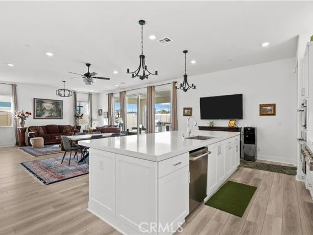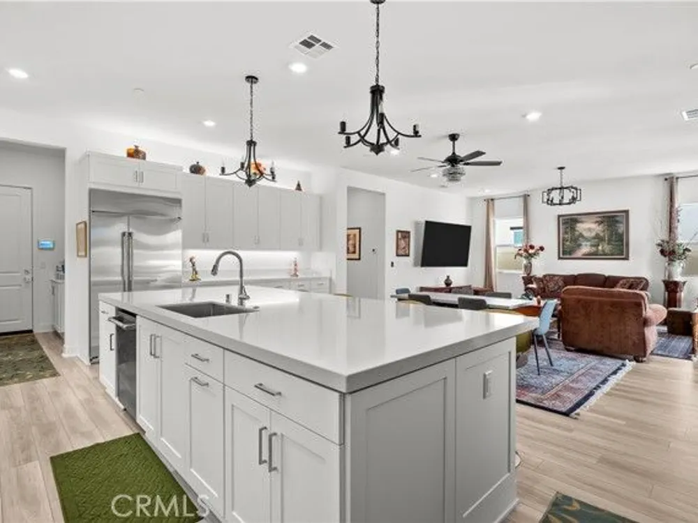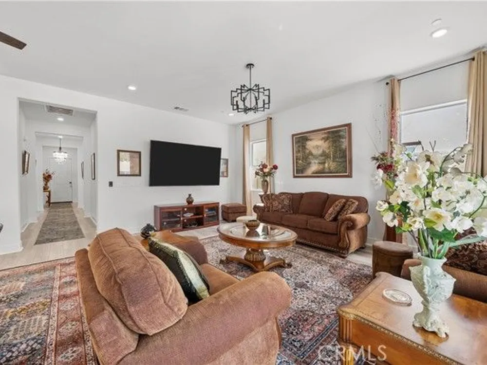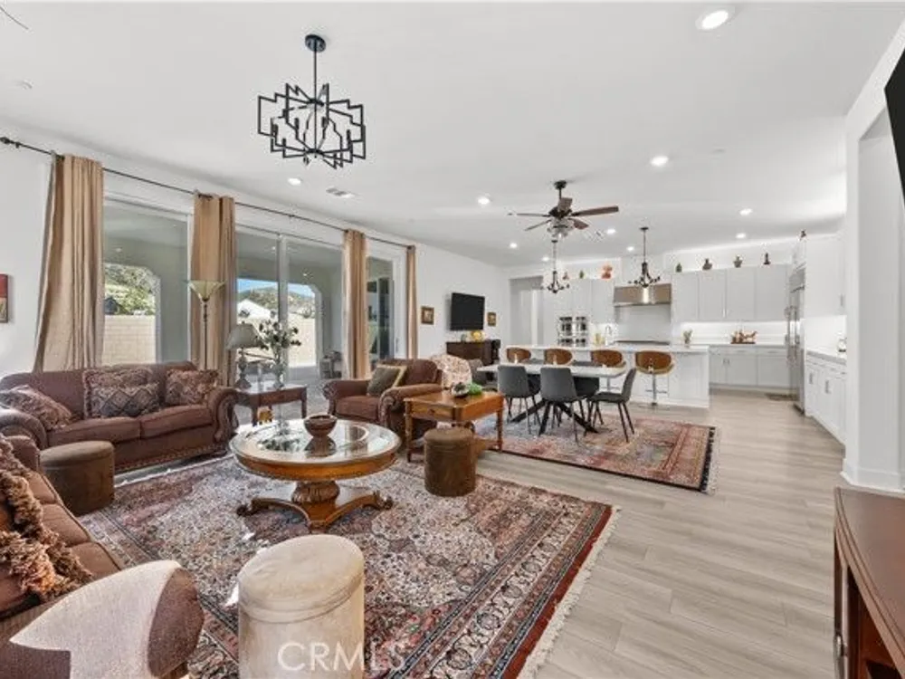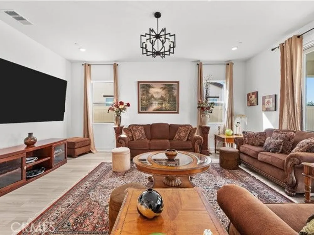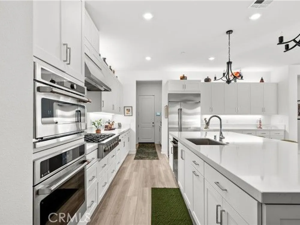 Beautiful Valencia Home! Elegant Resort Style living in a gated 55+ community. Built in 2024, this well-manicured Estrada 3 home offers an open floor plan with 3 bedrooms, plus an office, 3.5 bathrooms with over 2,530 square feet of ample living space. There are many features which include quality vinyl flooring, high ceilings, custom 4 panel slider doors that provide indoor outdoor access for a relaxed and comfort living, also great for entertaining. This amazing home offers a Chef's kitchen with stainless steel appliances, 6 burner gas stove with integrated griddle on the side, modern countertops, plenty of cabinetry, a long dry bar, and an island with sink and seating area that opens to the family room, recessed lighting, storage space and more. Off of the kitchen is a large walk-in pantry with custom wood shelving. Across the pantry is the spacious laundry room with plenty of counter space and more storage space. All bedrooms have ceiling fans/light fixtures. Primary bedroom has a large walk-in closet and sliding glass doors that lead to the patio. Inside the private ensuite is the primary bathroom equipped with a double sink vanity, large walk-in shower with bench and walk-in closet. There is Central AC and Heating, ceiling fans, decorative lighting and chandeliers throughout this home and a tankless water heater. The backyard is equipped with a custom built in bar-b-que grill with a sink, covered patio, concrete hardscape throughout and firepit, perfect for your gatherings and entertaining. The Solar Panels are owned!. There is a private 2-car attached garage with direct access and an EV charger! The community amenities offer a variety of luxuries such as a recreation facility, pools, spa, gym/fitness center, dog park, pickle ball courts, club house and lifestyle events and activities! Many upgrades, gorgeous and truly a place to call home!