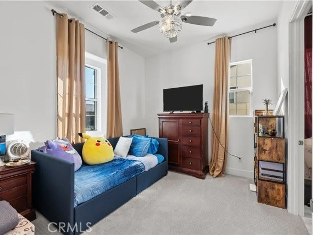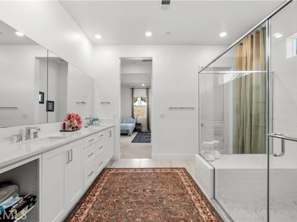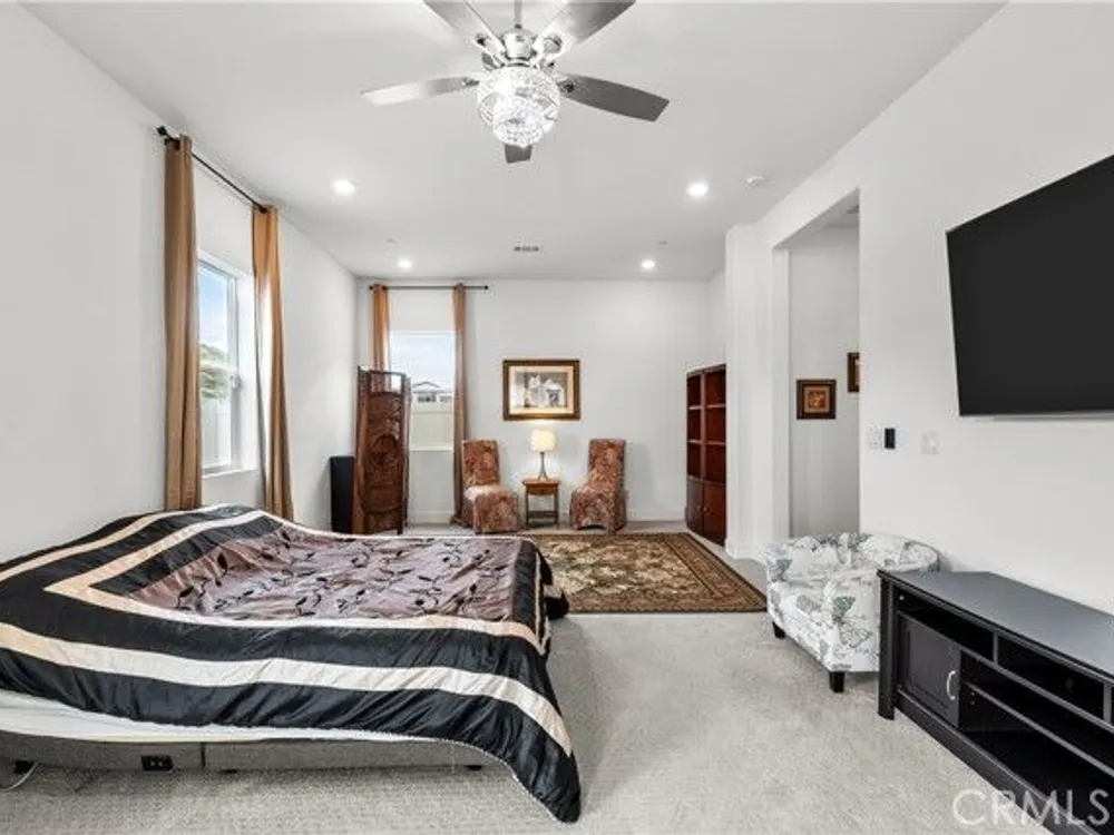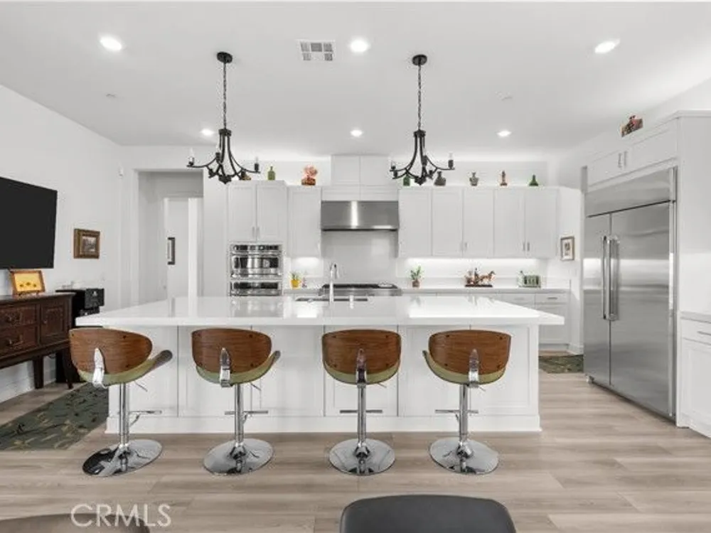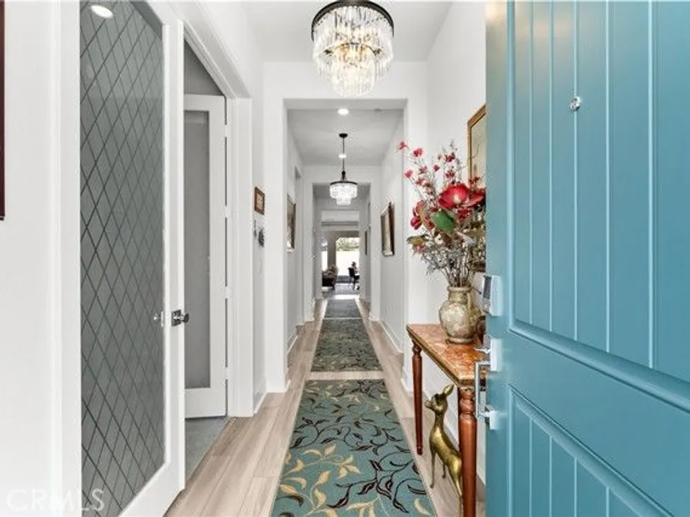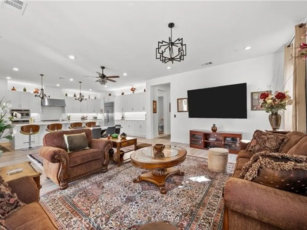 Beautiful Valencia Home! Elegant Resort Style living in a gated 55+ community. Built in 2024, this well-manicured Estrada 3 home offers an open floor plan with 3 bedrooms, plus an office, 3.5 bathrooms with over 2,530 square feet of ample living space. There are many features which include quality vinyl flooring, high ceilings, custom 4 panel slider doors that provide indoor outdoor access for a relaxed and comfort living, also great for entertaining. This amazing home offers a Chef's kitchen with stainless steel appliances, 6 burner gas stove with integrated griddle on the side, modern countertops, plenty of cabinetry, a long dry bar, and an island with sink and seating area that opens to the family room, recessed lighting, storage space and more. Off of the kitchen is a large walk-in pantry with custom wood shelving. Across the pantry is the spacious laundry room with plenty of counter space and more storage space. All bedrooms have ceiling fans/light fixtures. Primary bedroom has a large walk-in closet and sliding glass doors that lead to the patio. Inside the private ensuite is the primary bathroom equipped with a double sink vanity, large walk-in shower with bench and walk-in closet. There is Central AC and Heating, ceiling fans, decorative lighting and chandeliers throughout this home and a tankless water heater. The backyard is equipped with a custom built in bar-b-que grill with a sink, covered patio, concrete hardscape throughout and firepit, perfect for your gatherings and entertaining. The Solar Panels are owned!. There is a private 2-car attached garage with direct access and an EV charger! The community amenities offer a variety of luxuries such as a recreation facility, pools, spa, gym/fitness center, dog park, pickle ball courts, club house and lifestyle events and activities! Many upgrades, gorgeous and truly a place to call home!