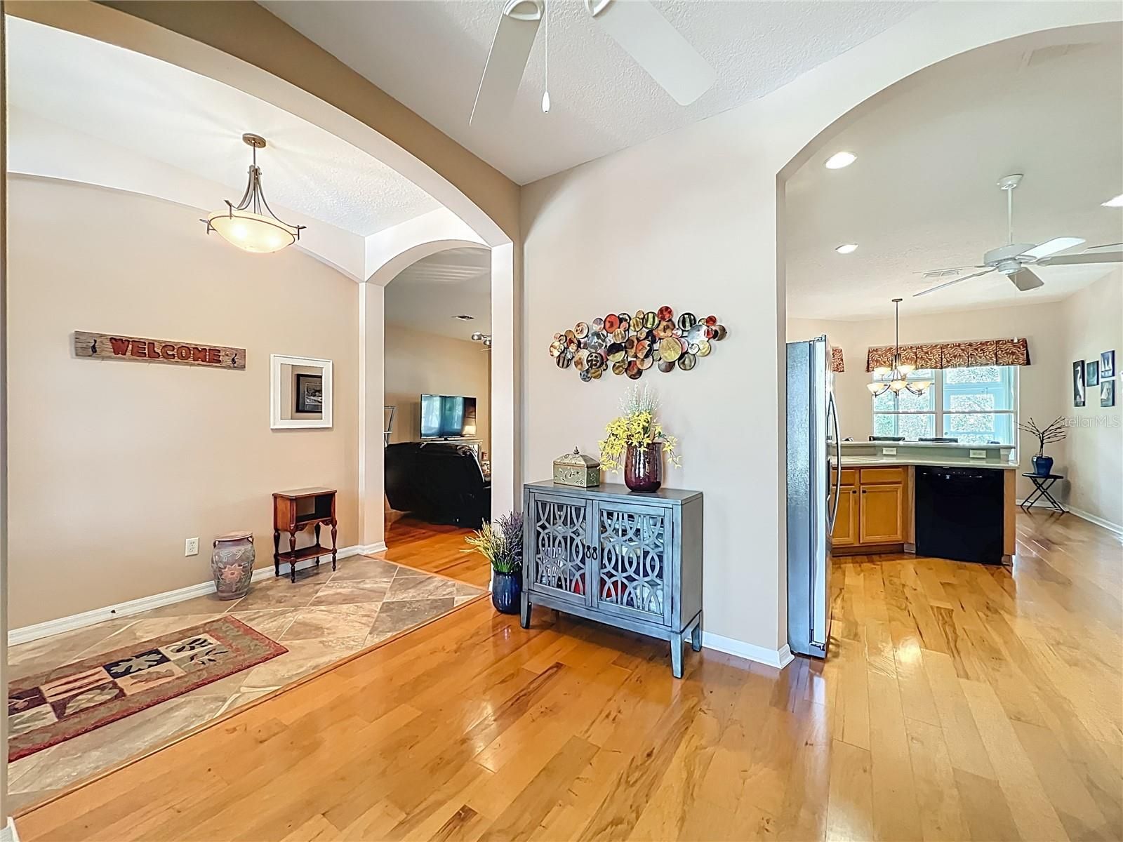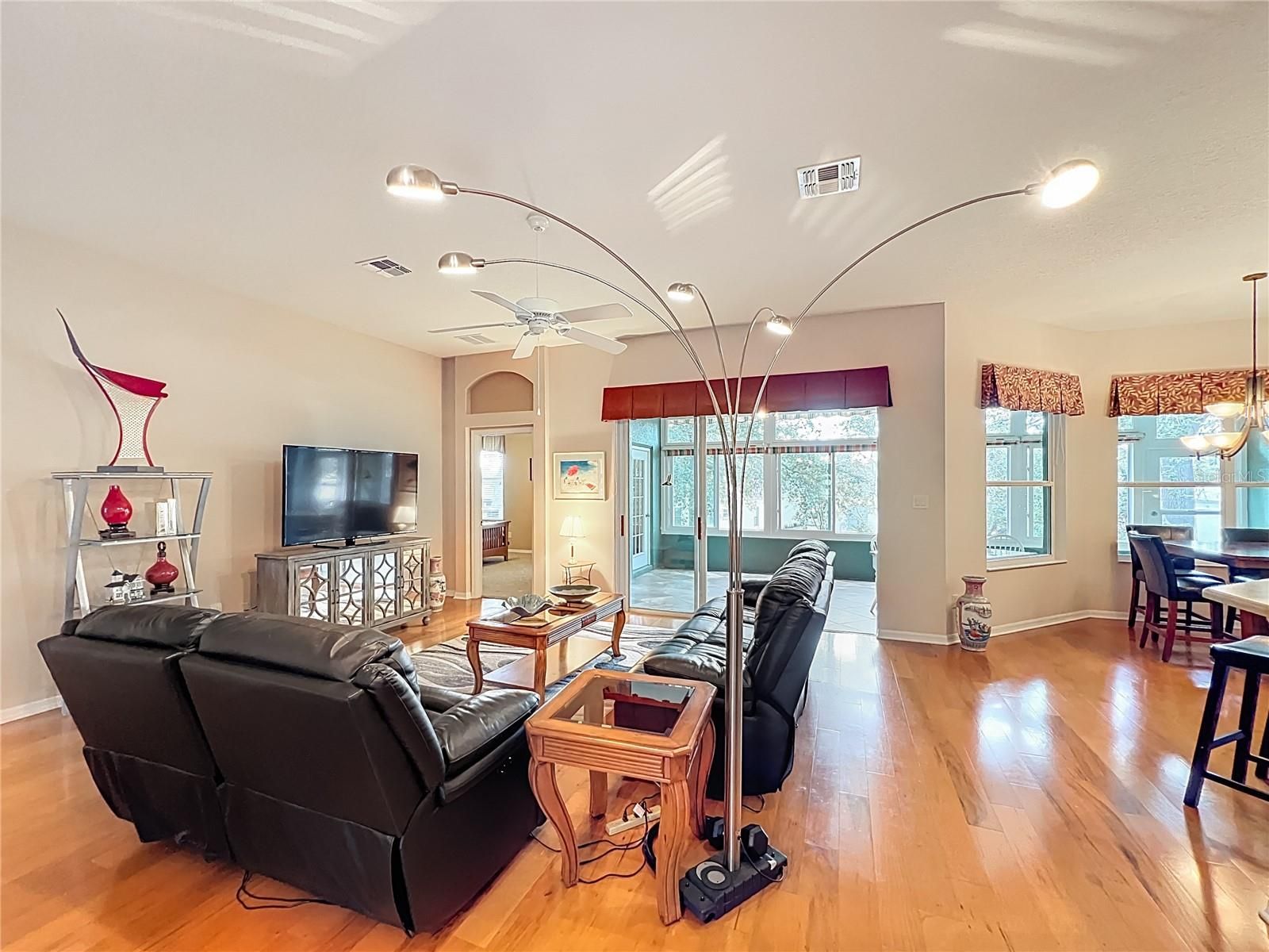 Picture perfection awaits in this stunning Custom Azalea featuring charming colonial pillars and an inviting front entrance. Designed with comfort and flexibility in mind, this thoughtfully laid-out home offers dual primary suites plus a third bedroom that can easily serve as a private office or craft room.Located in beautiful Nottoway Village, one of the higher elevations within The Plantation at Leesburg, this exceptional property is surrounded by elegant homes and lush, luxurious landscaping.This home is truly about efficiency, savings, and low-maintenance living — almost condo-like without the condo fees! Professionally upgraded with Xeriscape landscaping, you’ll save thousands annually with no grass cutting, watering, or pest control required, Brick pavers frame the driveway and extend the front entrance with a patio like setting.. The sellers enhanced the exterior with decorative retaining walls and replaced traditional mulch with 2½–3” river rocks for a polished, long-lasting finish and minimize the growth of weeds. Two gorgeous oak tree provides natural shade, while stately palm trees frame the front elevation. Double pane windows for energy efficiency (except the bay windows ). Custom exterior lighting transforms the home into a postcard-worthy showpiece in the evenings. Gently used for less than six months per year, this residence shows minimal wear and tear. Inside, the welcoming foyer features tile flooring that continues seamlessly through the kitchen and bathrooms. The elegant living room boasts engineered oak wood flooring and three sliding glass doors that open to a custom enclosed lanai with concrete block walls, double-pane windows, and ceramic tile flooring — creating a bright, year-round living space. The backyard patio includes an awning, making it comfortable and usable even during the summer months. Major upgrades for your comfort and peace of mind include: New Roof (2024, New HVAC (2022), Exterior Paint (2025), Brick Paver Driveway (2016), Refrigerator (2019), Oven (2022), Microwave (2026). This meticulously maintained and beautifully upgraded home offers timeless style, modern efficiency, and exceptional value — truly a rare find in an outstanding community.,A Premier 55+ Active Lifestyle Community. Enjoy leisurely rounds of golf on two beautifully maintained 18-hole championship courses, or stay active on lighted tennis courts perfect for evening matches. Unwind by one of three sparkling pools and Jacuzzis, or embrace a healthy lifestyle with access to world-class fitness centers, volleyball, and pickleball courts. With over 100 planned activities each week, there’s always something exciting to look forward to—whether it’s social gatherings, fitness classes, or hobby clubs. The community is set against a backdrop of scenic, landscaped boulevards and tranquil lakes, offering the perfect setting for fishing, walking, or simply relaxing in nature.Three expansive clubhouses serve as hubs of activity and connection, while an on-site restaurant offers