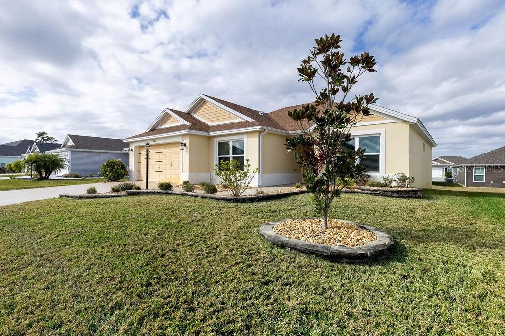 WELCOME HOME TO THE VILLAGE OF ST. JOHNS! Completel Turnkey AVAILABLE! This beautifully maintained 3-bedroom, 2-bath Jasmine model designer home offers flexible, year-round living spaces and is perfectly suited for both entertaining and everyday comfort. One of the standout features is the large Florida sunroom, seamlessly extending the living space and opening to a screened outdoor patio—ideal for morning coffee, evening cocktails, or relaxing with a good book. An additional open patio provides the perfect spot for grilling and enjoying Florida’s beautiful weather. Inside, the open-concept split floor plan features ceramic tile throughout, vaulted ceilings, and a bright, inviting living area. The kitchen is thoughtfully designed with rich wood cabinetry, neutral countertops, stainless steel appliances, a gas range, tiled backsplash, built-in double pantry, and a counter-height eat-in breakfast bar, all flowing effortlessly into the adjacent dining area with double windows. The private primary suite offers a vaulted ceiling, custom walk-in closet, and an en-suite bath featuring dual sinks, rich cabinetry, and a tiled walk-in shower. Two additional bedrooms and a full guest bath are located on the opposite side of the home behind a pocket door, providing excellent privacy for guests or a home office. Additional highlights include whole-house gutters, a painted driveway and entryway, upgraded landscaping, and the home is offered completely turnkey with high-end furniture. Ideally located in the north end of The Village of St. John's, this home is just under 2 miles from Brownwood Paddock Square, easily accessible by golf cart or car, and near popular destinations such as Harry & The Natives waterfront dining, Richmond Pitch & Putt, Lake Okahumpka Rec Center, Magnolia Shopping Plaza, the Everglades Regional Recreation Complex, and numerous golf courses. This home delivers comfort, convenience, and the lifestyle The Villages is known for. Schedule your private showing today.