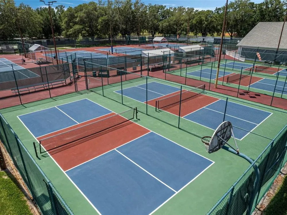 - Includes: Clubhouse, Fence Restrictions, Fitness Center, Gated, Golf Course, Pickleball, Pool, Recreation Facilities, Sauna, Shuffleboard Court, Spa/Hot Tub, Tennis Court(s), Trail(s)