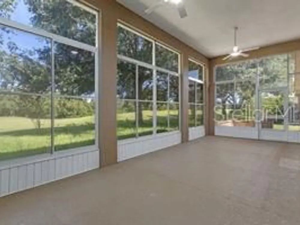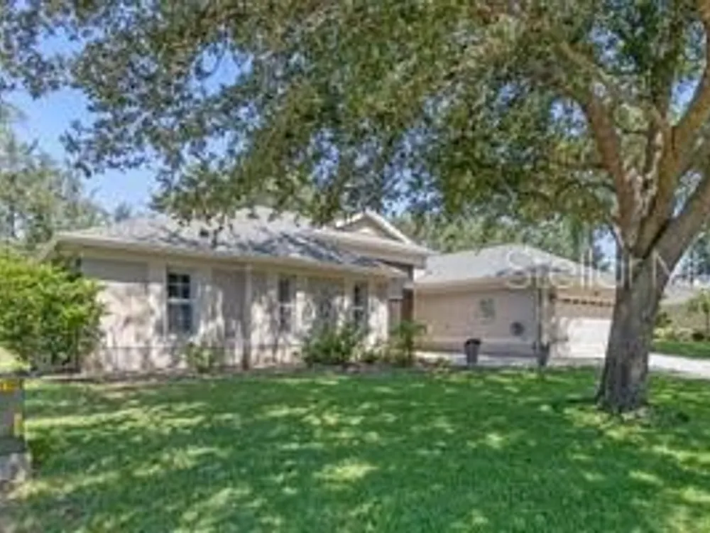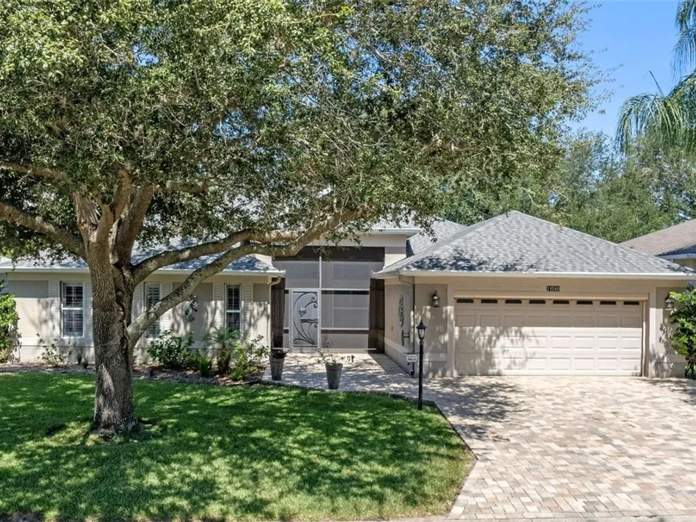 Don't miss this GOLF COURSE beauty with UPGRADES at every turn! Located in The Plantation at Leesburg – 55+ Resort-Style Community! Perfectly positioned on a PRIVATE GOLF COURSE LOT, this upgraded single-story home features a neutral-toned exterior, PAVED DRIVEWAY, front and back COURTYARDS, and beautifully landscaped grounds. Inside, WOOD FLOORING flows through the main living areas, leading to a GOURMET KITCHEN with 42” cabinets, PULL-OUT DRAWERS, GRANITE countertops, tile backsplash, under-cabinet lighting, WINE REFRIGERATOR, STAINLESS steel APPLIANCES, and a HUGE double PANTRY. The open floor plan connects the kitchen to the family room, perfect for entertaining. The spacious primary suite offers dual vanities, soaking tub, walk-in shower, and a HUGE CUSTOM WALK-IN CLOSET. The GUEST SUITE accommodates king-size furniture and includes its own PRIVATE BATH with a large walk-in shower and custom walk-in closet. A separate study/home office or flex space adds versatility, and a convenient HALF BATH is ideal for guests. Enjoy panoramic golf course views from the enclosed lanai with a PAVED COURTYARD—perfect for outdoor dining, lounging, or a fire pit. *** ROOF 2021 ** AC 2017 ** ENCLOSED LANAI 2023 ***Additional features include an OVERSIZE 2-car garage, PLANTATION SHUTTERS throughout, and an INSIDE SEPARATE LAUNDRY room. The Plantation at Leesburg offers two golf courses, three clubhouses each with heated pools, tennis courts, pickleball, fitness centers, walking trails, and endless social activities. Conveniently located near shopping, dining, medical facilities, parks, and the airport. Golf-front living at its best—schedule your private showing today!