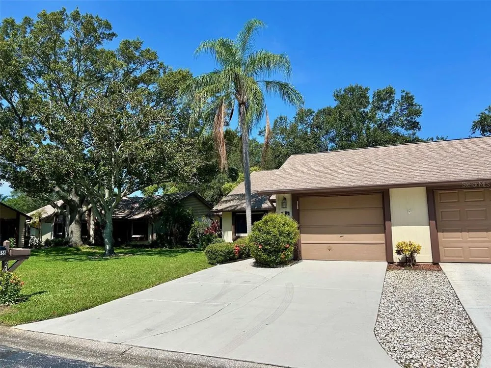 Back on the market due to financing - Lot – Layout – Location – Located in the desirable 55+ Community of Village On The Green, awaits this patio home tucked away on a cul-de-sac and offers great value! Some of the many fine features this patio home has to offer are: split-bedroom layout giving everyone a bit of space, a primary bedroom featuring a walk in closet, large and spacious great room with glass sliding doors leading out to the large screened in porch. Imagine sitting in your large screened porch enjoying your morning coffee and listening to the birds sing. You'll love the added bonus of an extra parking pad. This patio home is full of potential and ready for you to make it your own. A large and active clubhouse is the icing on the cake! Enjoy swimming in the solar heated pool overlooking the tranquil lake, or perhaps play a game of cards, choose a book from the clubhouse library or enjoy a social in the gathering room. Low HOA fees include, lawn cutting, lawn watering & fertilizing, cable, internet and the clubhouse. Centrally located to Clearwater mall, quaint downtown Dunedin, many fine restaurants and beautiful Clearwater beach. LOCATED IN A NON-FLOOD ZONE