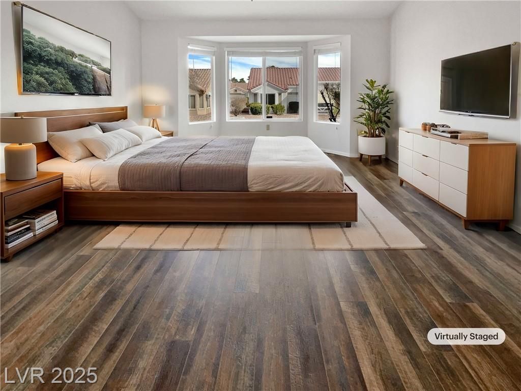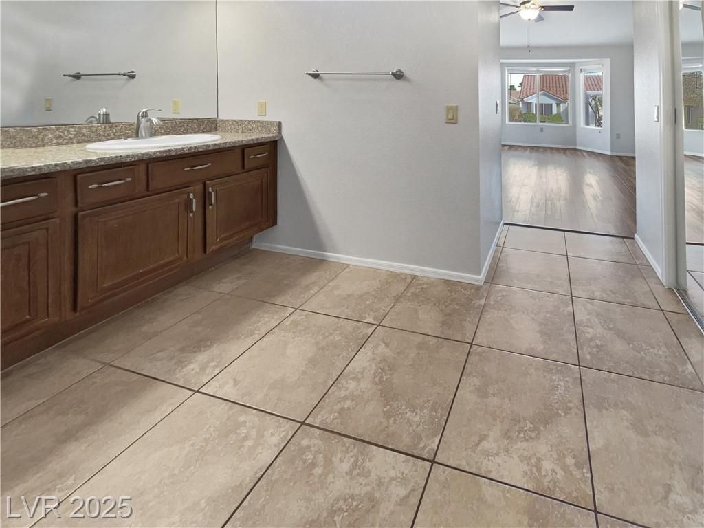 Welcome to this charming property with a natural color palette that creates a warm and inviting atmosphere throughout the home. The kitchen boasts a nice backsplash that adds a touch of elegance to the space. The primary bathroom features double sinks, perfect for convenience and functionality. You'll appreciate the good under sink storage, keeping your essentials organized and easily accessible. Step outside to relax in the covered sitting area in the backyard, ideal for enjoying the fresh air year-round. Don't miss out on this wonderful property with so much to offer! community pool etc. This home is age restricted, Stunning 1,804 sq. ft. home with 2 bed, 2 bath home in Sun City Summerlin is a Premier 55+ community with 3 Golf Courses, 4 pools, gyms, sports courts, clubs, and more!. This home has been virtually staged to illustrate its potential.