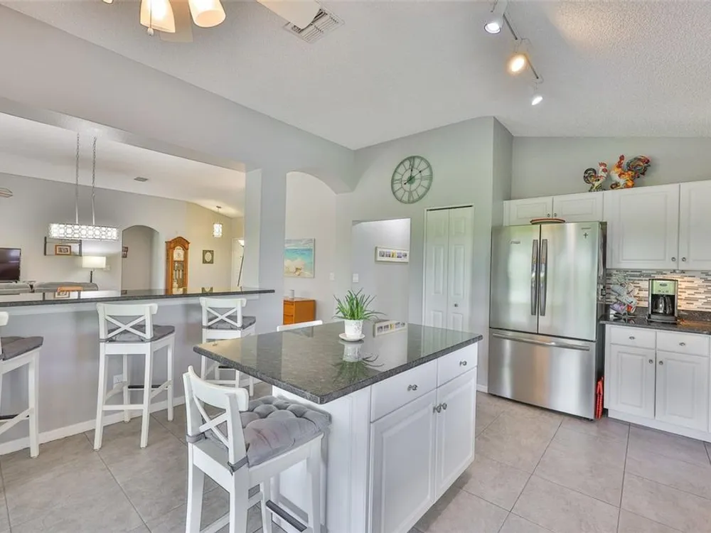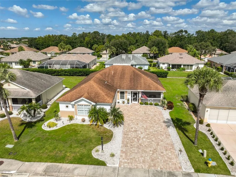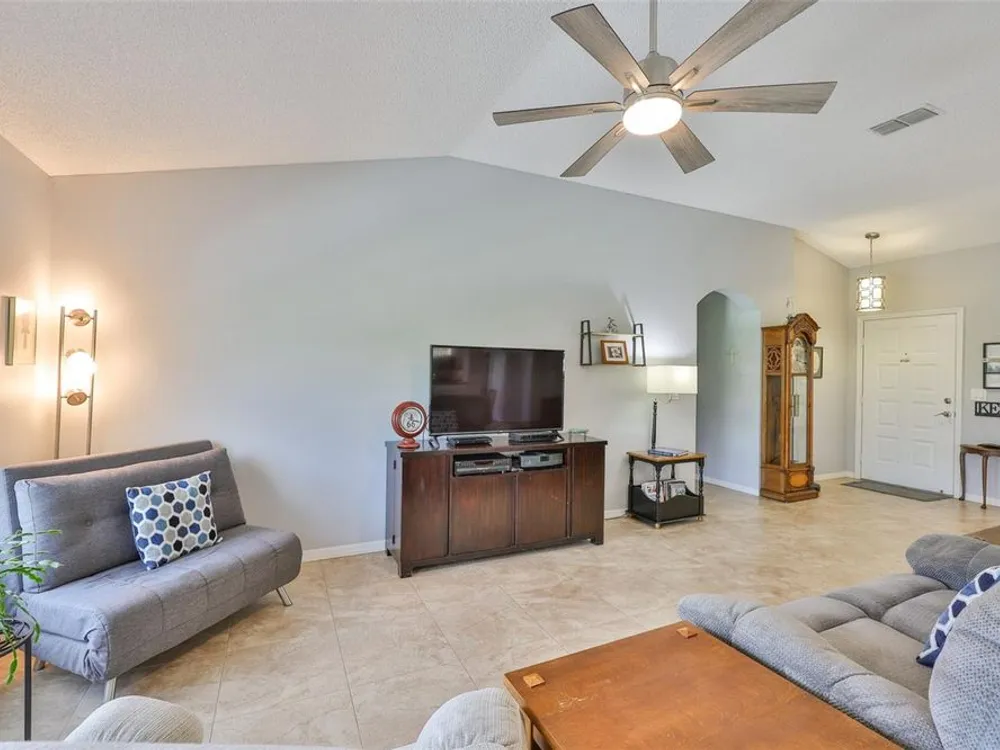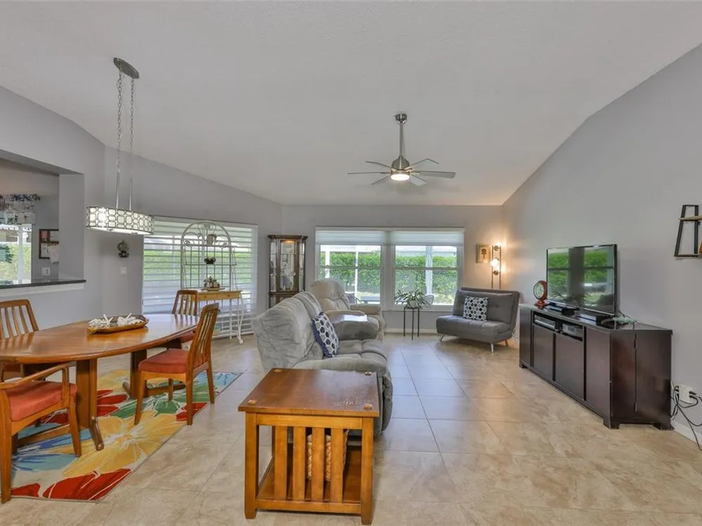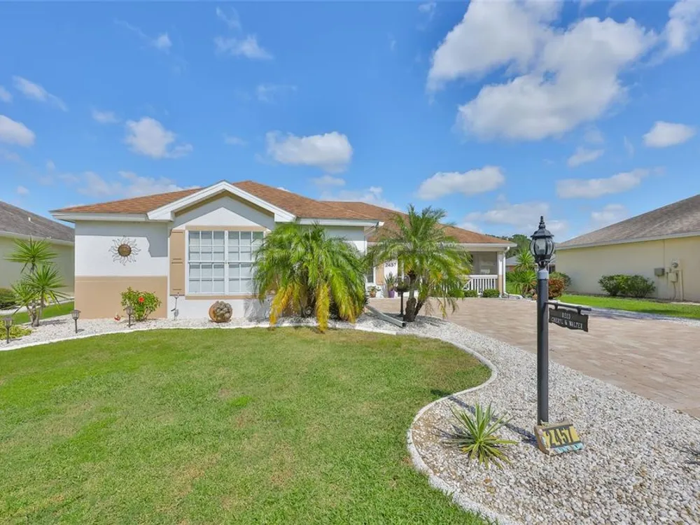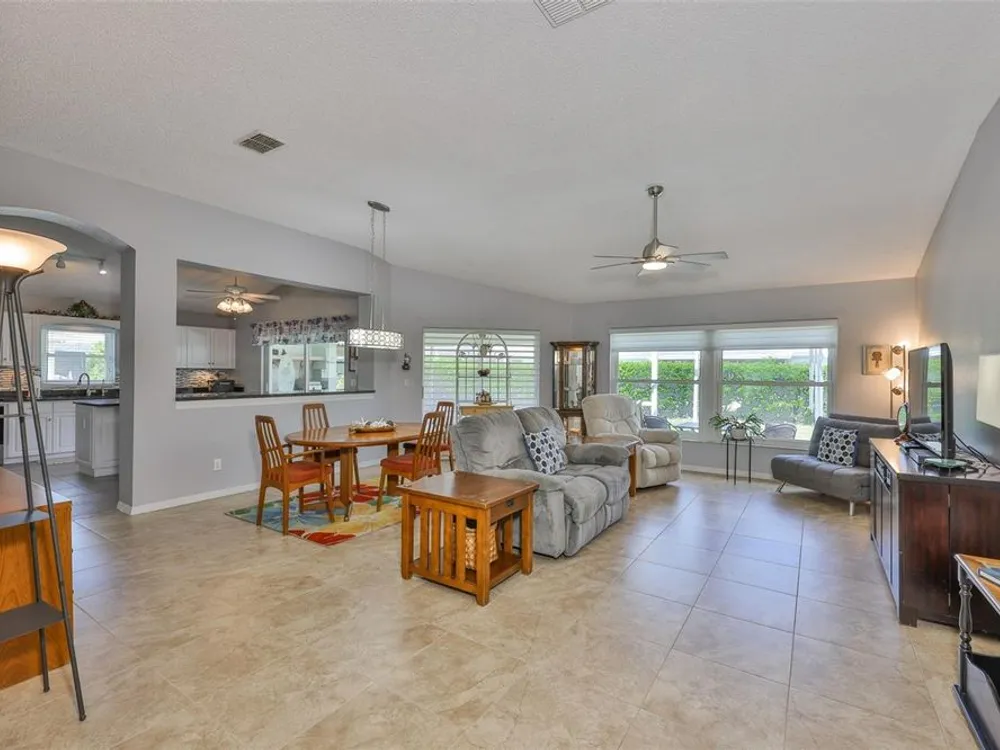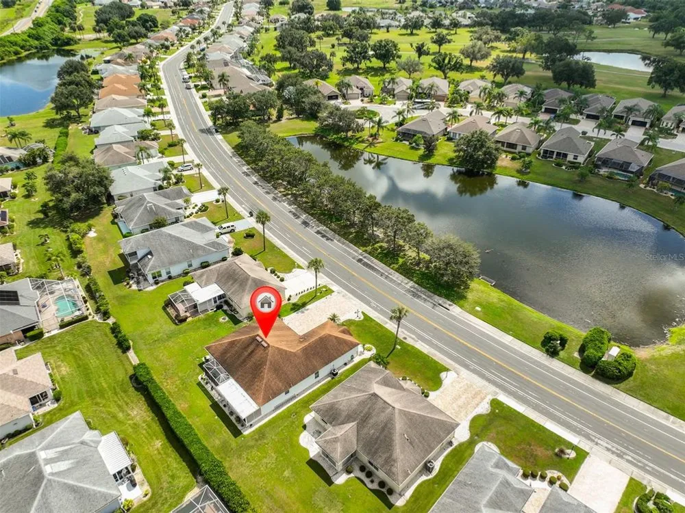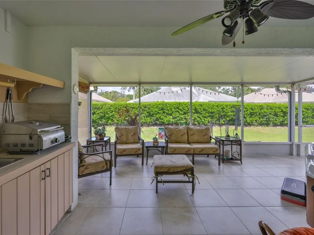Upon entering this popular Fairfield model home you will notice the newer paved driveway and an additional screened garage door. Than imagine sitting on your screened front porch with your morning coffee gazing at Golden pond directly across the street while enjoying what mother nature has to offer. Let's go inside and you will notice ceramic tile floors throughout the entire home. The great room features your main living area and your formal dining area. Did you notice the Silhouette shades by Hunter Douglas in the great room? To your right is the entrance to the main bedroom and bath. Features here include a walkin closet and a step in closet, The remodeled bath features dual sinks, a large walkin shower and a water closet. A split second bedroom along with a bonus room and kitchen are accessed to the left of the great room. The guest bath is directly across from the guest bedroom. A good sized inside utility room leads out to the large enclosed two car garage. The golf cart is included with a full price offer. Ok all you gourmet cooks. You will love this updated kitchen. Features include newer counter tops with backsplash tile, newer appliances, pantry, under counter lighting, food preparation island, large eating area, storage galore and entrance to your lanai. But before we go there lets peek under the sink where you will find a water filter system and connection to the water softner located in the garage. For your large parties lets go to the lanai where you will find another serving area complete with sink, refrigerator and food preparation or bar. Need more relaxing, jump into the large hot tub. LET'S PARTY! See additional feature sheet.