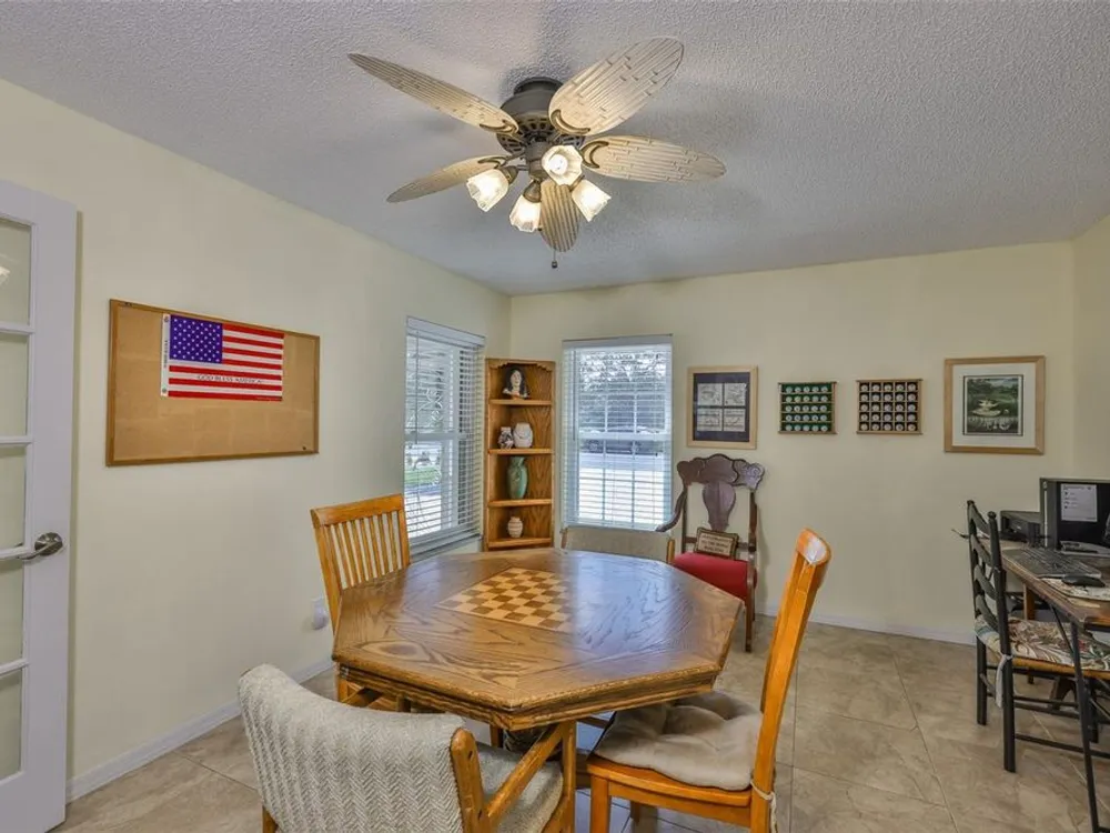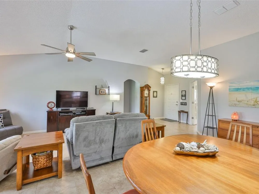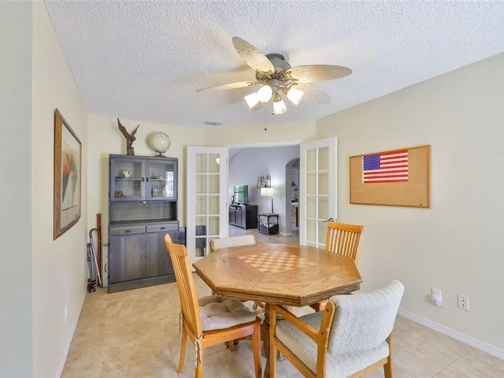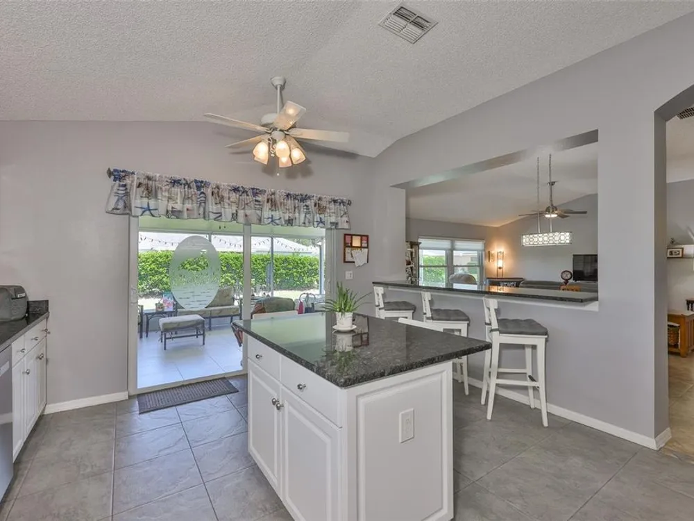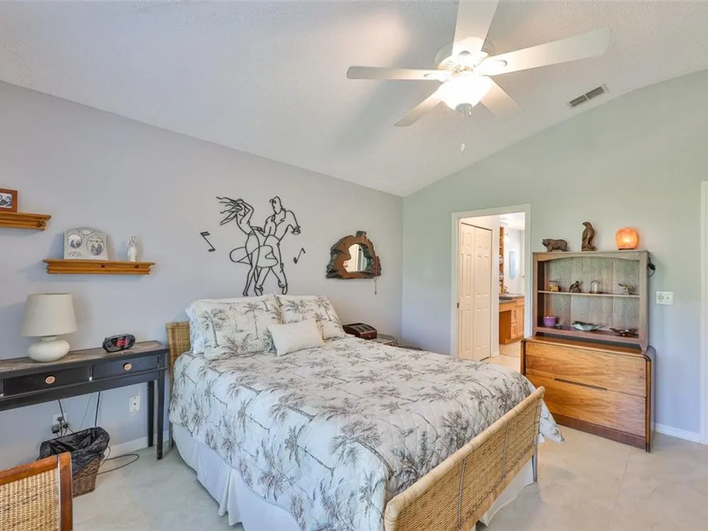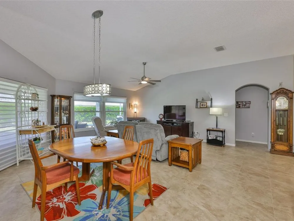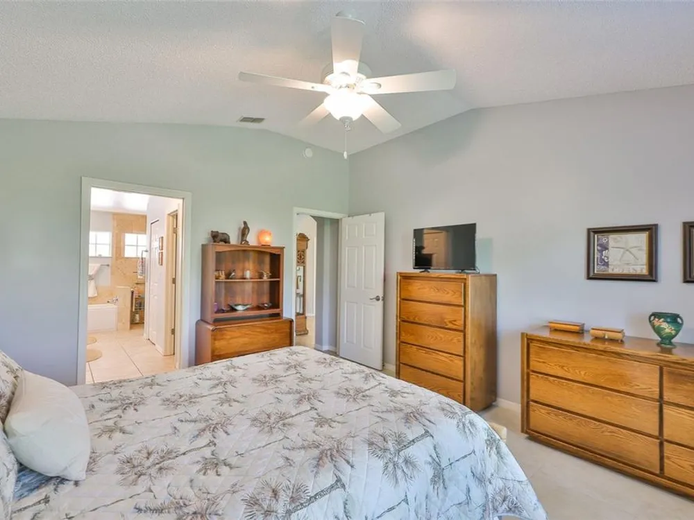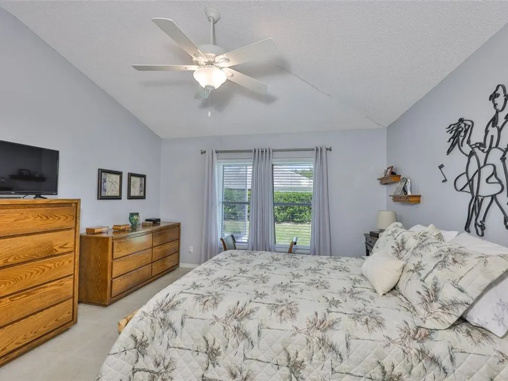 Upon entering this popular Fairfield model home you will notice the newer paved driveway and an additional screened garage door. Than imagine sitting on your screened front porch with your morning coffee gazing at Golden pond directly across the street while enjoying what mother nature has to offer. Let's go inside and you will notice ceramic tile floors throughout the entire home. The great room features your main living area and your formal dining area. Did you notice the Silhouette shades by Hunter Douglas in the great room? To your right is the entrance to the main bedroom and bath. Features here include a walkin closet and a step in closet, The remodeled bath features dual sinks, a large walkin shower and a water closet. A split second bedroom along with a bonus room and kitchen are accessed to the left of the great room. The guest bath is directly across from the guest bedroom. A good sized inside utility room leads out to the large enclosed two car garage. The golf cart is included with a full price offer. Ok all you gourmet cooks. You will love this updated kitchen. Features include newer counter tops with backsplash tile, newer appliances, pantry, under counter lighting, food preparation island, large eating area, storage galore and entrance to your lanai. But before we go there lets peek under the sink where you will find a water filter system and connection to the water softner located in the garage. For your large parties lets go to the lanai where you will find another serving area complete with sink, refrigerator and food preparation or bar. Need more relaxing, jump into the large hot tub. LET'S PARTY! See additional feature sheet.