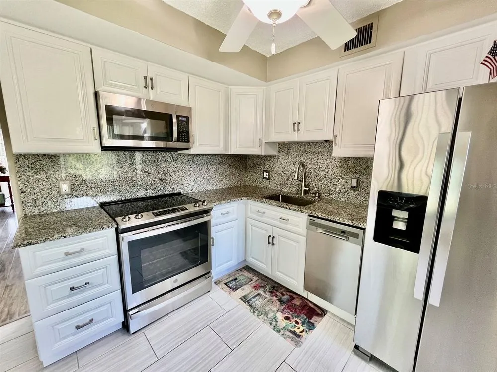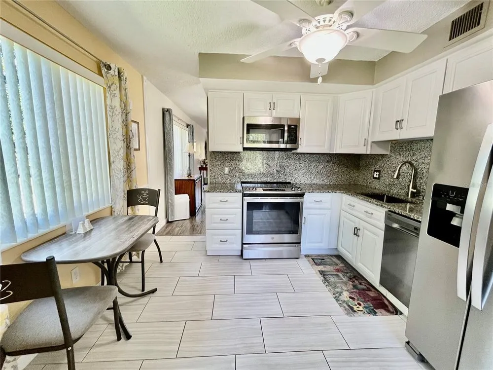 - Ceiling Fan(s), Living/Dining Room, Solid-Wood Cabinets, Stone Counters, Thermostat