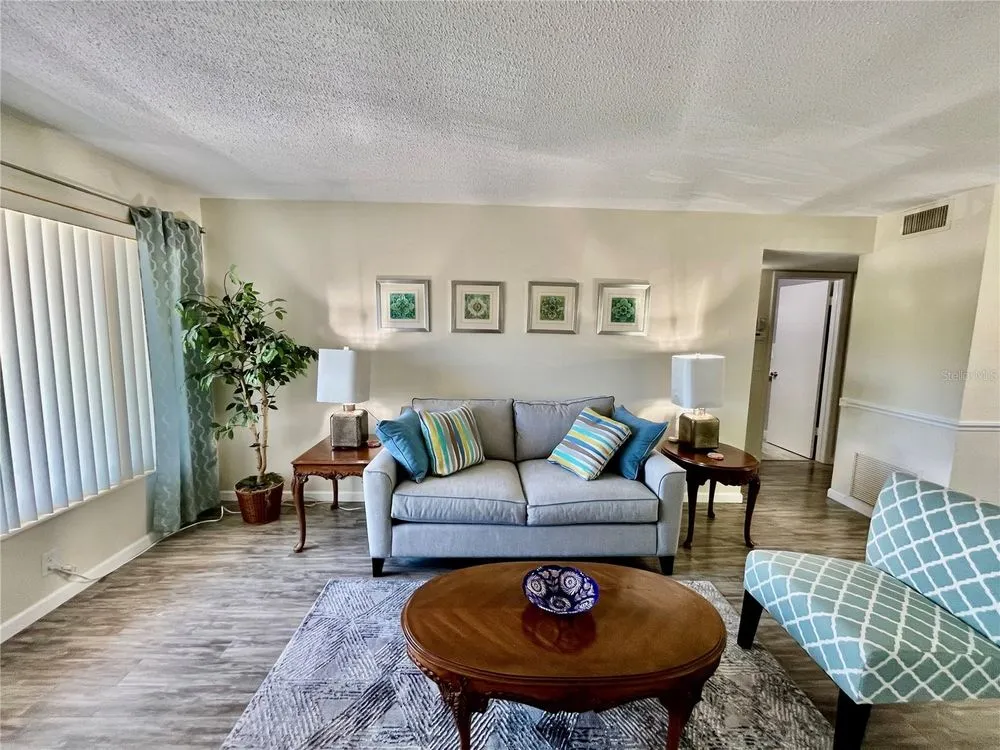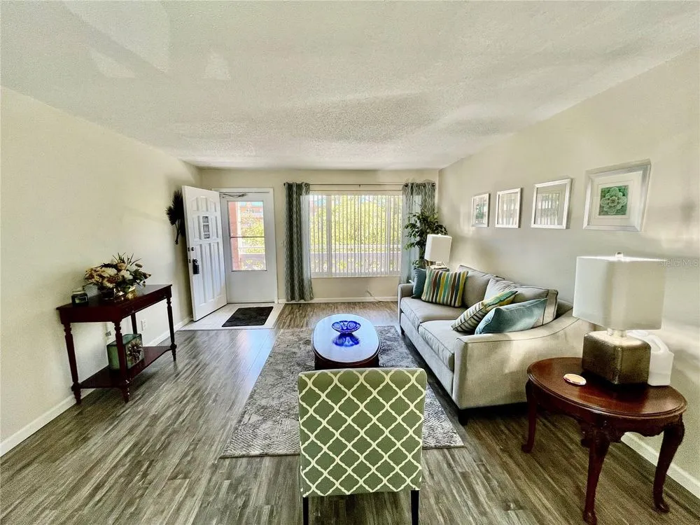 Fully Furnished End Unit!! Come see this Turnkey 2 bed /2 Bath Updated Condo in On Top of the World. This 1,100 square feet of open living space, enhanced by an abundance of natural light with the additional windows that an end unit offers. The updated kitchen features updated cabinets, granite countertops and back splash, stainless steel stove, microwave, refrigerator and dish washer. In addition kitchen features eat in space with window view. Florida room can be used as a second living room, office or bedroom with a great view of back courtyard. Primary bedroom has ensuite bathroom that features updated vanity, granite countertop, glass shower and tile. Condo also features Washer and Dryer. The second bathroom features updated Vanity and granite counter top, glass shower and tile. A/C was replaced in 2018. This condo has it all. Assigned parking. The 55+ community has two activity centers, and two private golf courses with 9 and 18 holes, free exclusively for resident owners. There are two heated swimming pools. The remodeled Cardio Gym has the latest exercise equipment. A very pet-friendly community, there is a fenced dog park with covered seating. There are hobby studios, and a wood shop for the exclusive use of the residents. Activities include fitness classes, dancing, clubs, cards, billiards, entertainment, classes, and much more. The on-site Good Karma Café has take & bake meals and snacks. Close to beaches, transportation, shopping, entertainment, and fine dining. All room sizes, floor plans and square footage are approximate. This property is being transferred by a leasehold estate deed. Association approval is required. If financing, a 35% down payment is required. All washer, dryer and hookups must be approved by the association.