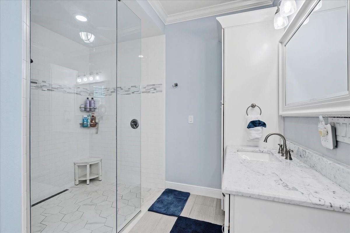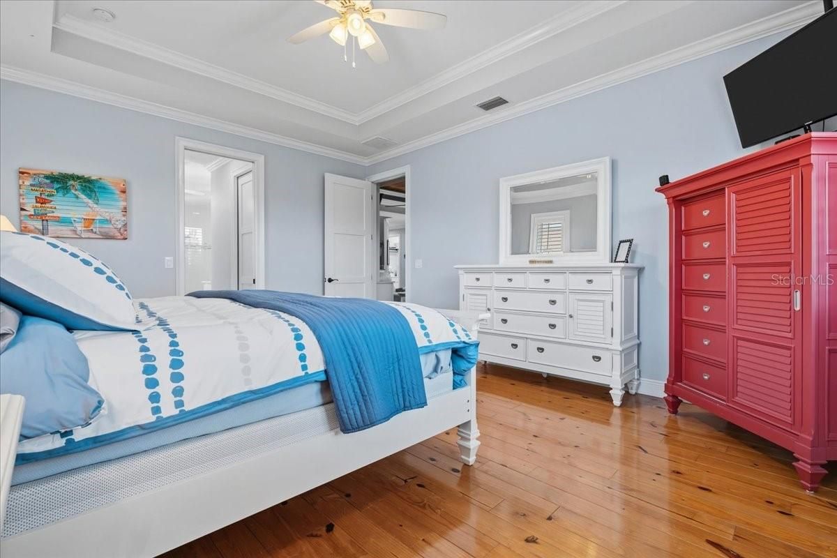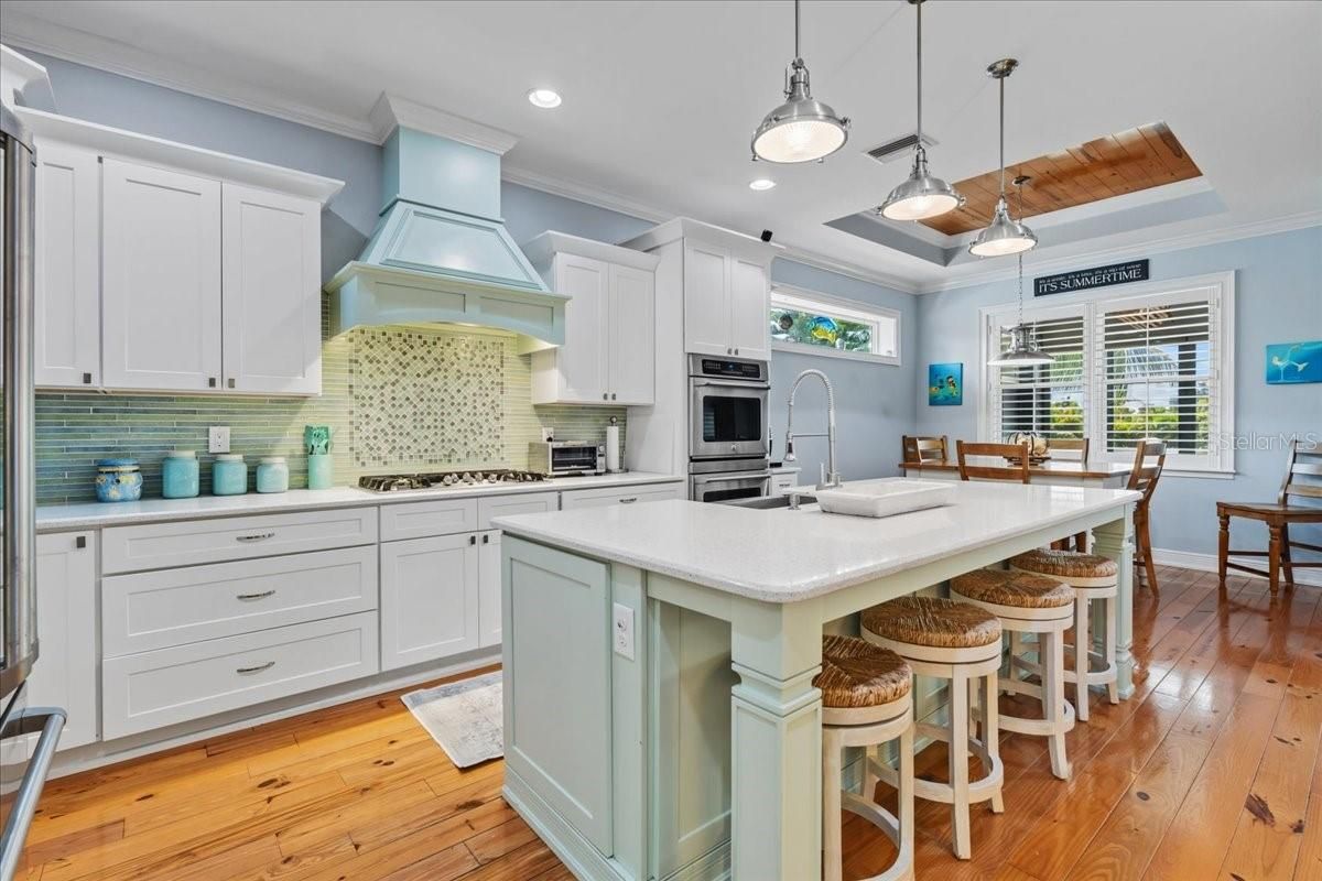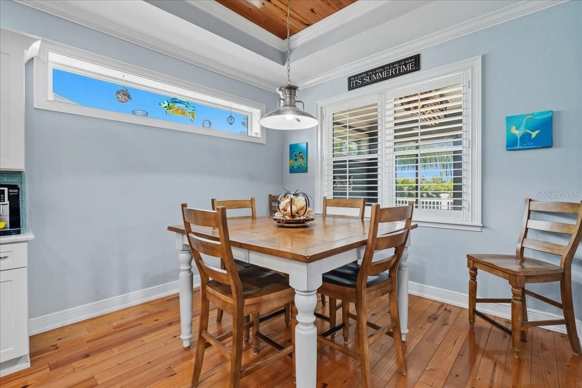 - Coffered Ceiling(s), Crown Molding, Eat-in Kitchen, High Ceilings, Solid Surface Counters, Solid-Wood Cabinets, Stone Counters, Thermostat, Walk-In Closet(s), Window Treatments