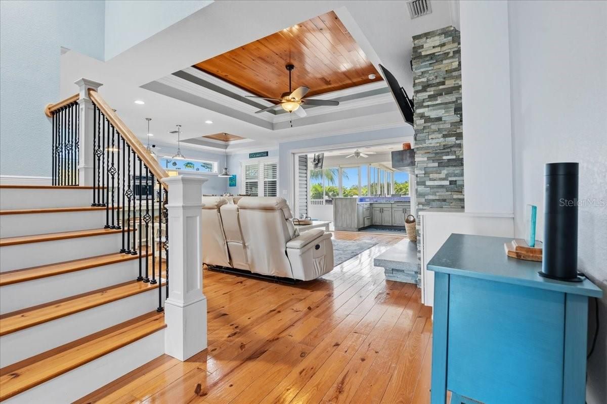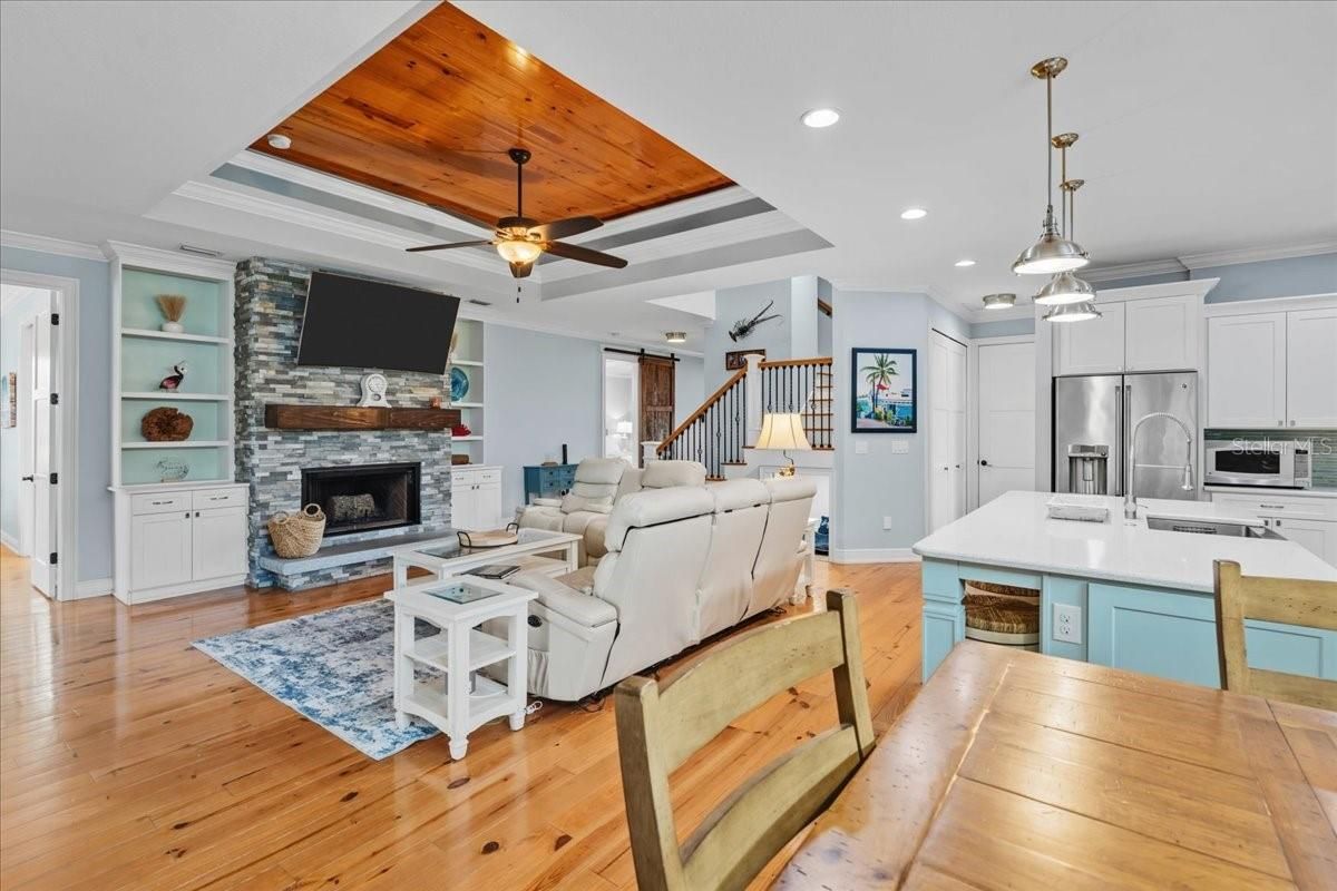 Welcome to Rio Villa Lakes – a sought-after gated 55+ community in beautiful Punta Gorda! This impeccably maintained custom built 3-bedroom, 3-bathroom home sits on an expansive oversized lot and offers over 2,700 sq ft of thoughtfully designed living space with high-end finishes and custom upgrades throughout. Enjoy a bright, open floor plan featuring pine hardwood flooring throughout the main living areas, bedrooms, and upstairs. The heart of the home is a chef’s dream kitchen, complete with propane gas stove, wine cooler, plenty of cabinetry, and a large center island—all opening to the spacious living room with a cozy wood-burning fireplace and elegant plantation shutters throughout. Step outside to your own private retreat! The covered patio features a full bar and an in-ground spa. As well as an outdoor composite deck with built-in grill—perfect for entertaining or relaxing in comfort. This home is built for peace of mind and efficiency with Hurricane impact windows and sliding glass doors, Whole-house generator connected to propane tank, Pelican whole-house water filtration system. Additional highlights include a split-bedroom layout, indoor laundry room, attached 2-car garage, and ample storage space. Located in the maintenance-free Rio Villa Lakes community, residents enjoy access to a clubhouse, heated pool, fitness center, pickleball courts and social activities—all with low HOA fees and no CDD. Conveniently close to downtown Punta Gorda, Fishermen’s Village, waterfront parks, boating, shopping, and dining --this home truly has it all!
