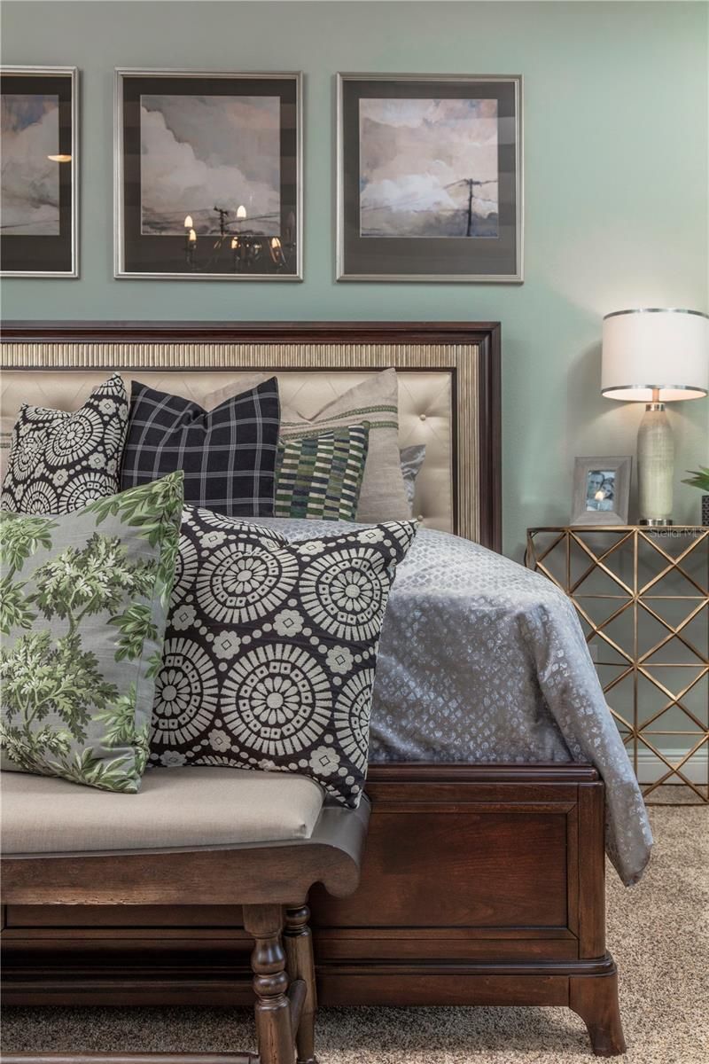 - Built-in Features, Ceiling Fan(s), Coffered Ceiling(s), Crown Molding, High Ceilings, Main Level Primary, Solid-Wood Cabinets, Stone Counters, Thermostat, Tray Ceiling(s), Walk-In Closet(s)