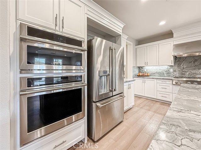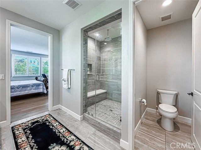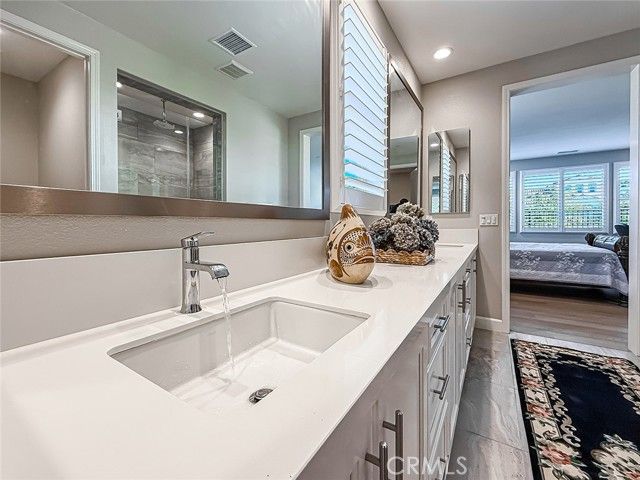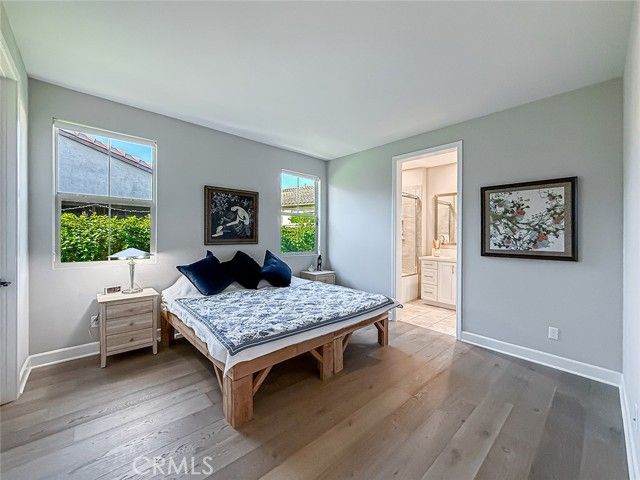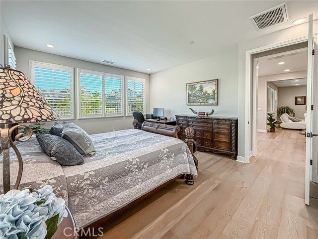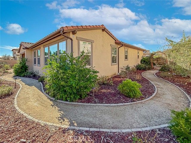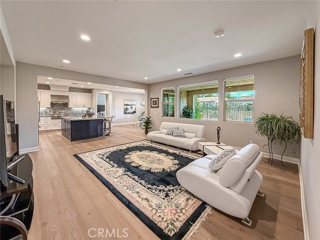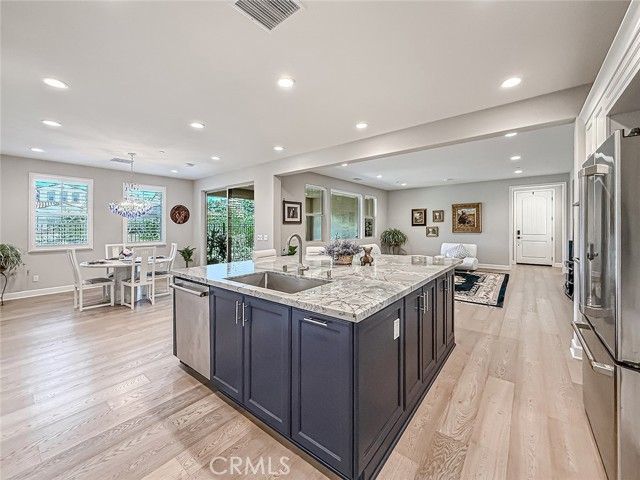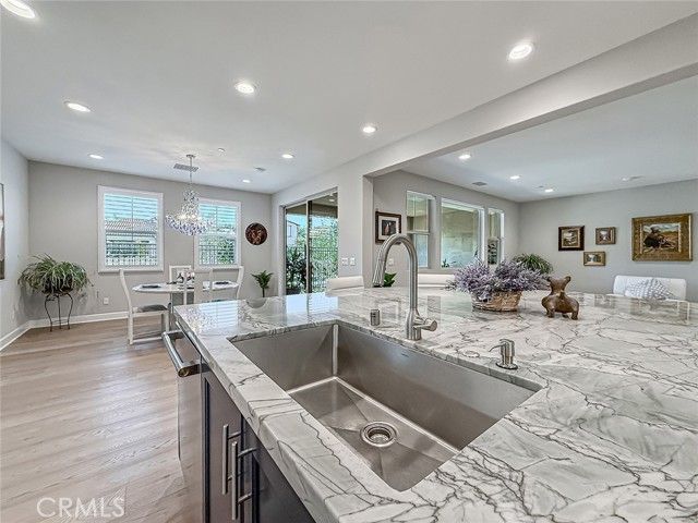This highly coveted Citron Plan 3 home sits on a premium view lot and does not disappoint! Filled with amazing upgrades throughout, it offers luxurious style in the exclusive Grove 55+ gated community. Upon entering you immediately notice the gorgeous neutral color of the real wood flooring and the natural light flooding in from many windows showcasing the views. This property does not back to another home, providing an open, spacious feeling. This layout is highly sought after for the open flow and large kitchen with an island facing the living space, providing a great room ideal for gatherings and connected daily life. The kitchen features stunning marble counters and backsplash, Monogram appliances, custom cabinetry, and a large basin style sink. The dining room, situated within the large living space, features a gorgeous blue accented chandelier to match the kitchen. Having three bedrooms/three full baths allows for flexible living options and a more private guest space. Two of the bedrooms have large ensuite baths, with the third full bath located right next to the third bedroom. All baths have tile floors and matching tiling in the shower and baths. The primary shower has 12x24 tiles running from floor to ceiling which adds an elevated touch. From plantation shutters and custom window coverings, wood casing around each entry way, recessed lighting, a Fall Scan water softener, EV wiring, and epoxy flooring in the garage and the back patio, there is attention to detail everywhere you look. The backyard has been meticulously crafted into a botanical paradise, fully landscaped with a variety of colorful plants, from pink roses and giant hydrangeas to Hawaiian plumeria, bicolor bougainvillea and purple honeydew drops, this yard will not leave you without some beautiful views to enjoy. The Grove is a well-known senior living escape. With the range of activities and amenities welcoming all levels of activity and varying interests alike, homeowners can find countless ways to make new friends or pick up a new hobby. Work out in the state-of-the-art gym, play some pickleball, ping pong or bocce ball. There is also a putting green, large walk-in swimming pool, 24-person jacuzzi, walking trails, and two dog parks! Or relax in a cabana with a book from The Grove library. The BBQ/fireplaces make a great place to host guests or enjoy your friends. There are also dozens of clubs and groups to join. Buying a home in The Grove is buying a lifestyle. Don’t miss out!