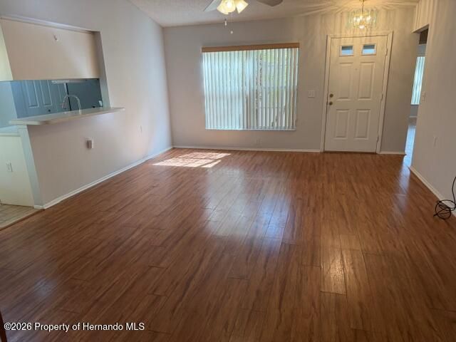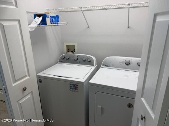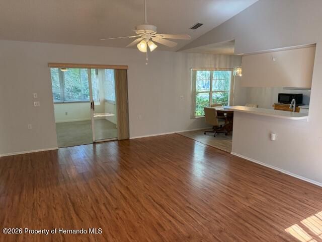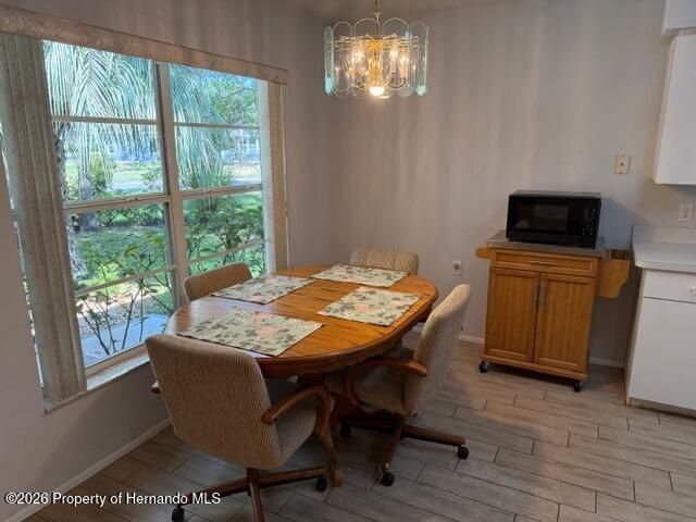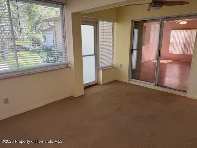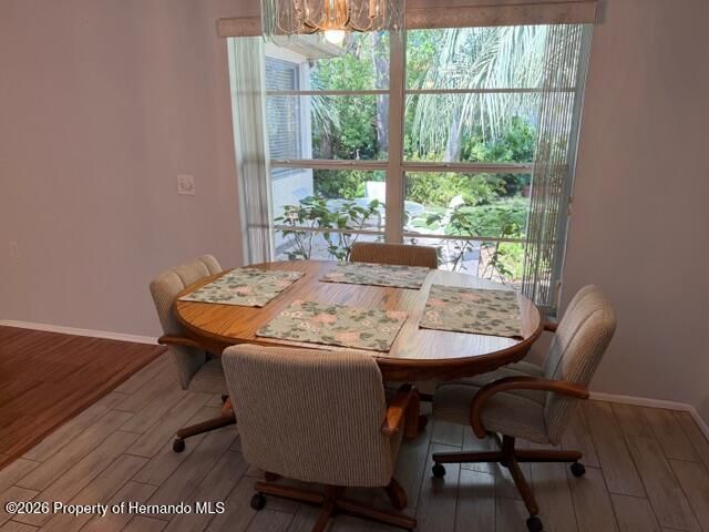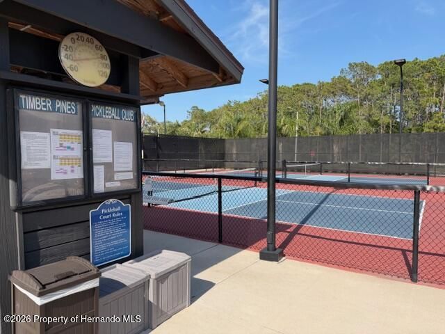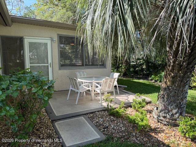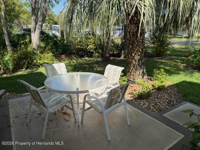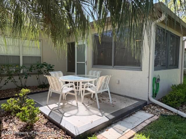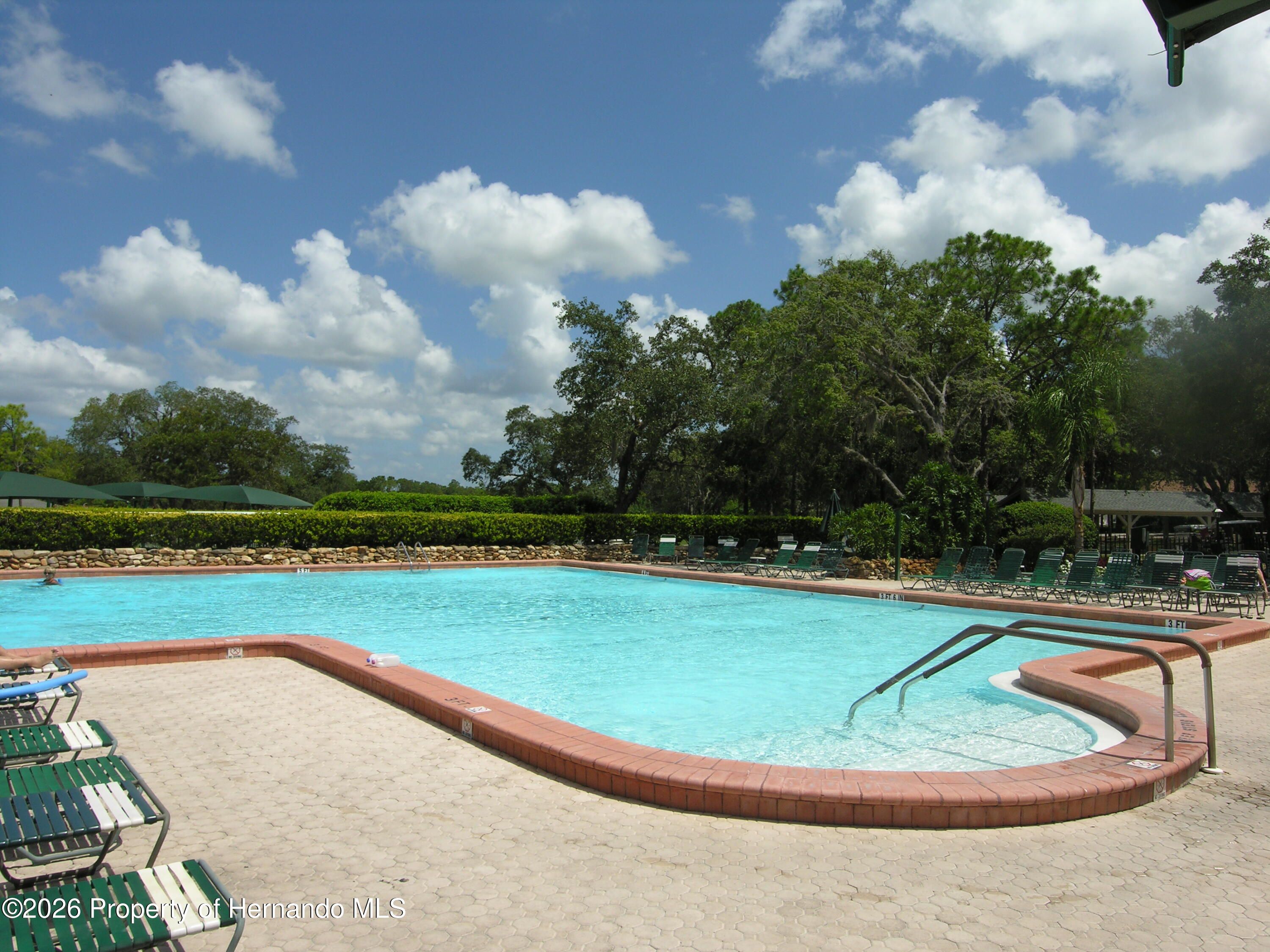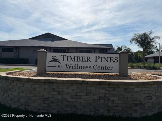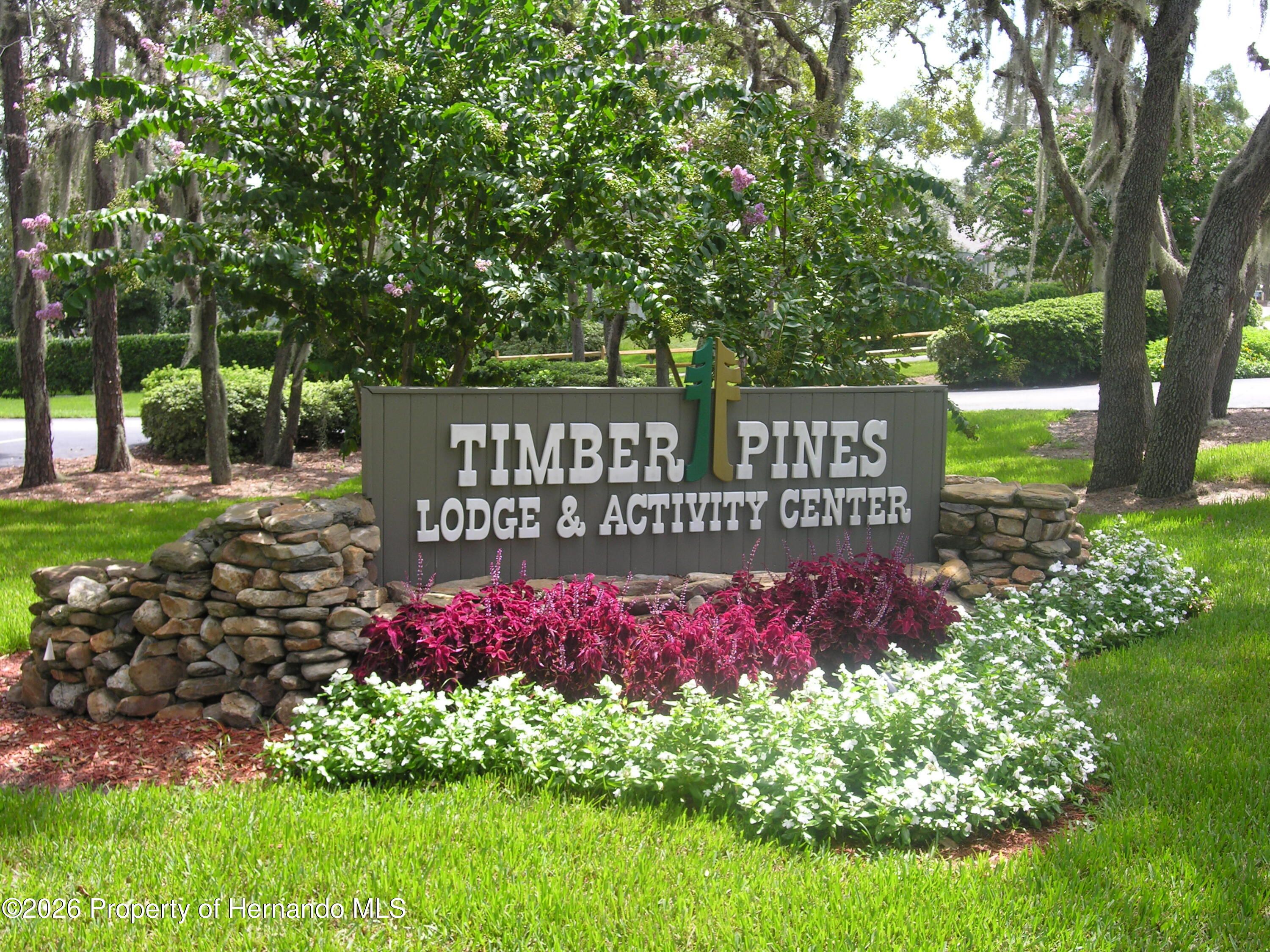 Desirable end unit Villa in Timber Pines! Clean 2-bedroom, 2-bath maintained villa is located in Manor Place Village! This is a pet friendly village and located just a few minute walk to the dog park and the new wellness center, too! Previous owners added a lovely 160' Florida room addition, which has 2 ceiling fans, is full of windows and overlooks a deep backyard with tropical foliage. Enjoy a morning coffee or a cook out with friends on your patio. Patio furniture and kitchen set remain for you. Wood laminate flooring in most rooms, only carpet is in Florida room. Laundry closet conveniently located in the kitchen, washer and dryer stay, too. Oversized garage floor has just been freshly painted, has room for a golf cart. New A/C installed in 2015. New roof in 2019. Come join your neighbors for a drink and a snack at the Gazebo on the pond on Thursdays. Timber Pines is an award winning community, and offers residents an exceptional number of amenities including four golf courses, a clubhouse with dining and year-round social events, pools, tennis and pickleball courts, a wellness center, performing arts center, billiards room, walking paths, dog park, and 24-hour guarded gate access, along with a full calendar of clubs and activities. This home is also near Weeki Wachee Springs State Park for kayaking or spotting manatees in crystal-clear waters, Rogers Park and Pine Island Park for Gulf sunsets, fishing and waterfront relaxation, offering a lifestyle that allows you to enjoy some of the best that the Florida Nature Coast can offer! Come see this charming villa today!
