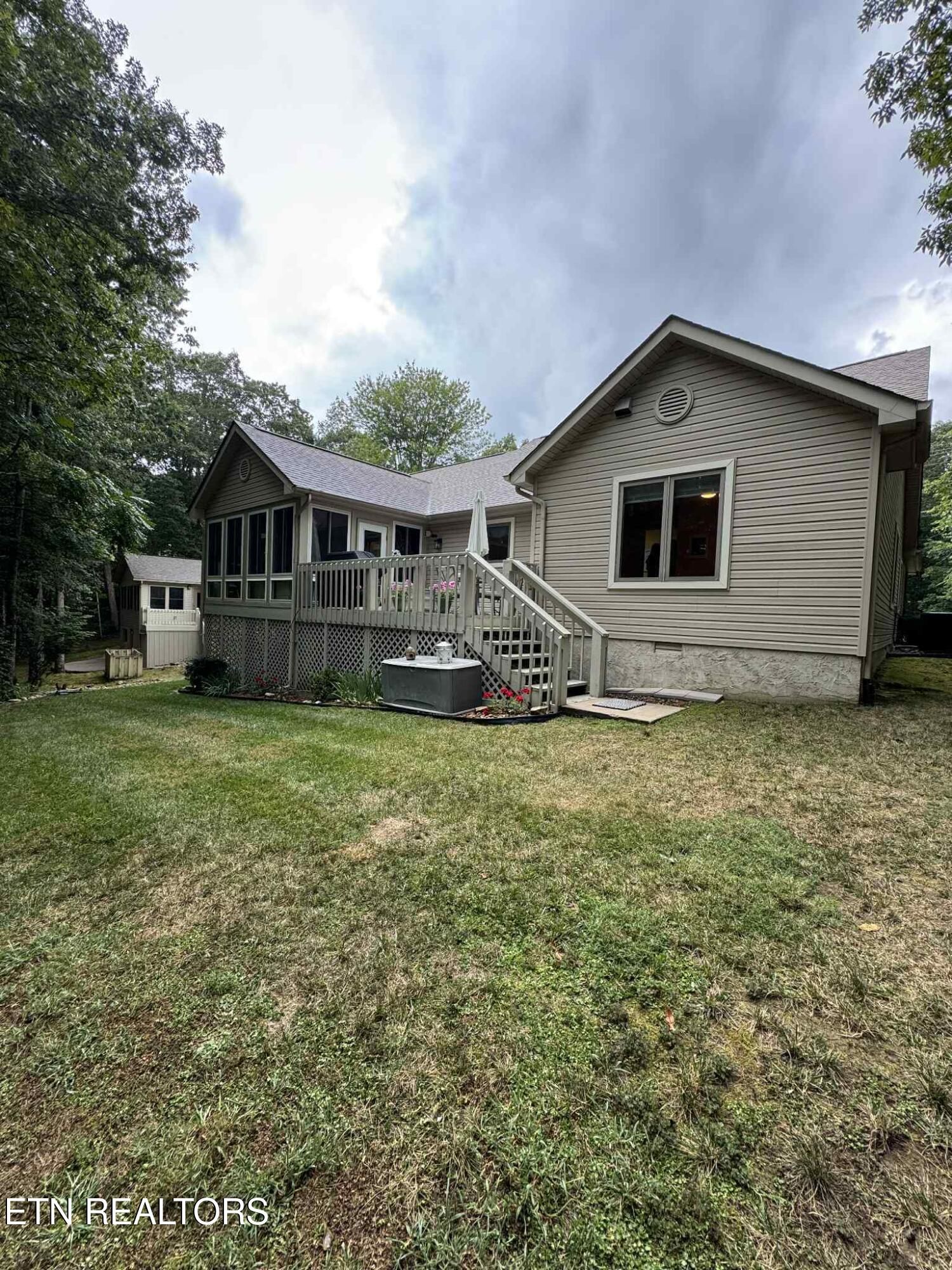 Beautiful 3 bedroom, 2 bath home in the sought-after Fairfield Glade community. A welcoming covered front porch leads into generously sized rooms featuring beautiful wood floors, nice linoleum, and ceramic tile, with abundant storage throughout. The spacious living room boasts cathedral ceilings and flows into the dining area and open kitchen with a large island, peninsula seating for four, breakfast bar, walk-in pantry, and double ovens—perfect for the home chef. A bright 4-seasons room provides a scenic spot to enjoy meals overlooking the private, level backyard, while an uncovered back deck offers the perfect outdoor retreat. The master suite is a true escape with a double split vanity, whirlpool tub, and steam shower, while a split floor plan ensures privacy with two additional bedrooms for family or guests. A flex-space off the garage is ideal for a workshop or craft room. Additional highlights include an oversized garage with ample storage, a walk-in crawl space with poured cement pad and workshop/storage area, an immaculately landscaped yard, and sun-filled windows throughout. Move-in ready with opportunity for updates to match your style. Fairfield Glade amenities include 11 lakes, 2 marinas, 5 golf courses, 4 swimming pools (2 indoor/2 outdoor), tennis, pickleball, beaches, a fitness center, dog park, hiking trails, and more than 100 social clubs—all just minutes from downtown Crossville. Don't miss your chance to own this exceptional home; schedule your showing today! Buyer to verify all information before making an informed offer.