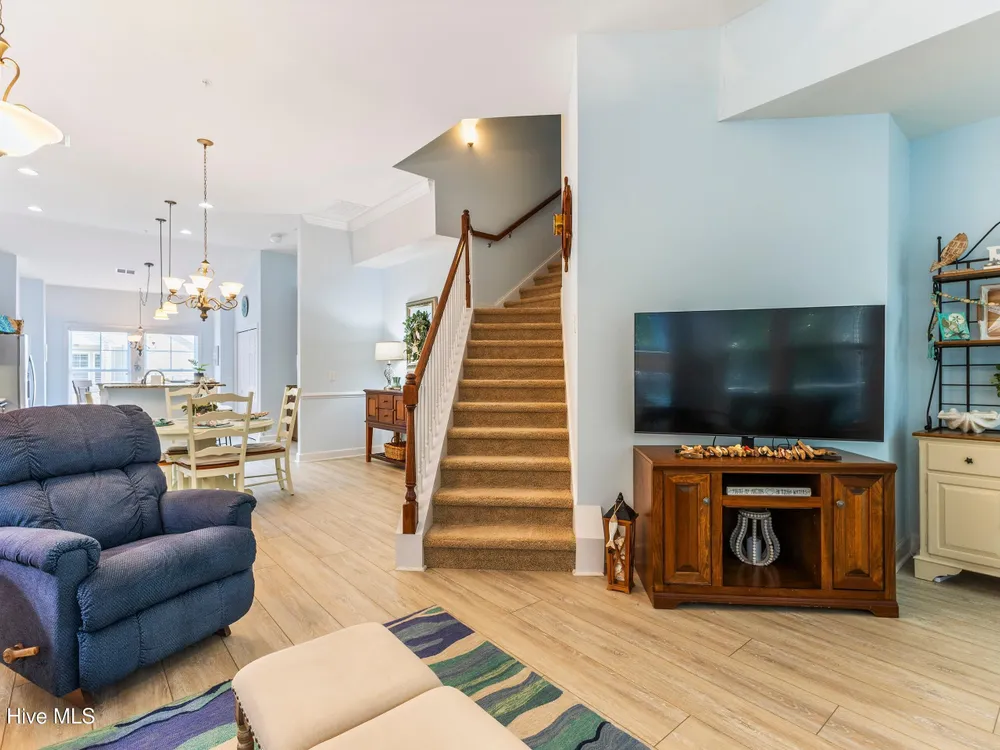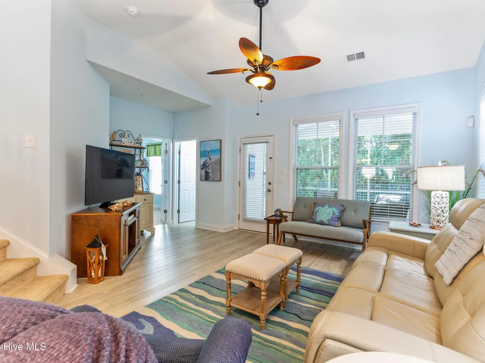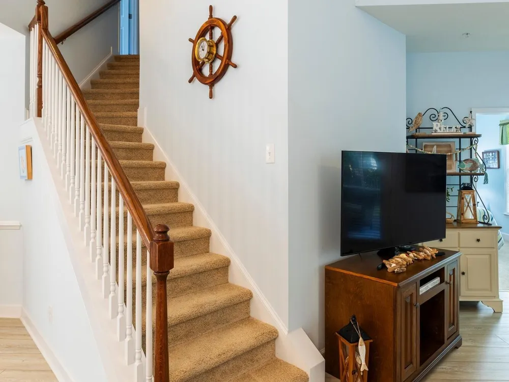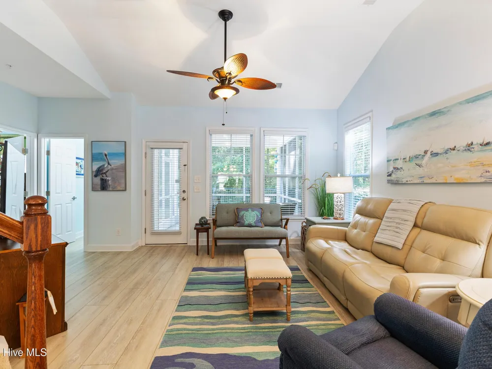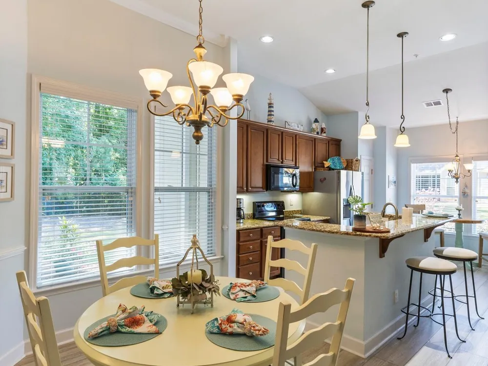 This stunning townhome offers a maintenance-free lifestyle, including landscaping, building maintenance, insurance, and more. Enter the home and see the natural light from all the windows throughout. The first floor offers a kitchen, living room, dining area, half bath, screened porch, and master bedroom suite. The kitchen features custom cabinetry, granite counters, a breakfast bar, and luxury vinyl flooring. The dining and living room offer the same flooring in this very open floor plan, perfect for entertaining. The screened porch has a decorative epoxy floor coating. This is the perfect place to relax and enjoy a libation of choice, or just enjoy the serenity that surrounds you. The master suite is huge with a walk-in closet and master bath. There is also a cubby for extra storage. Take the stairs to the second floor, where you will find a loft area for an office or quiet reading. The two bedrooms offer lots of space, ample closets, and a bathroom. There is also walk-in attic storage. This townhome offers more than others in the community. The property is an end unit offering a larger garage. Located at the end of Pilothouse, there is a larger yard, partially fenced in by the HOA. The current and previous owners have never occupied this property as their permanent residence. This is a home you'd like to view. The HOA has an active events committee to organize regular community activities.