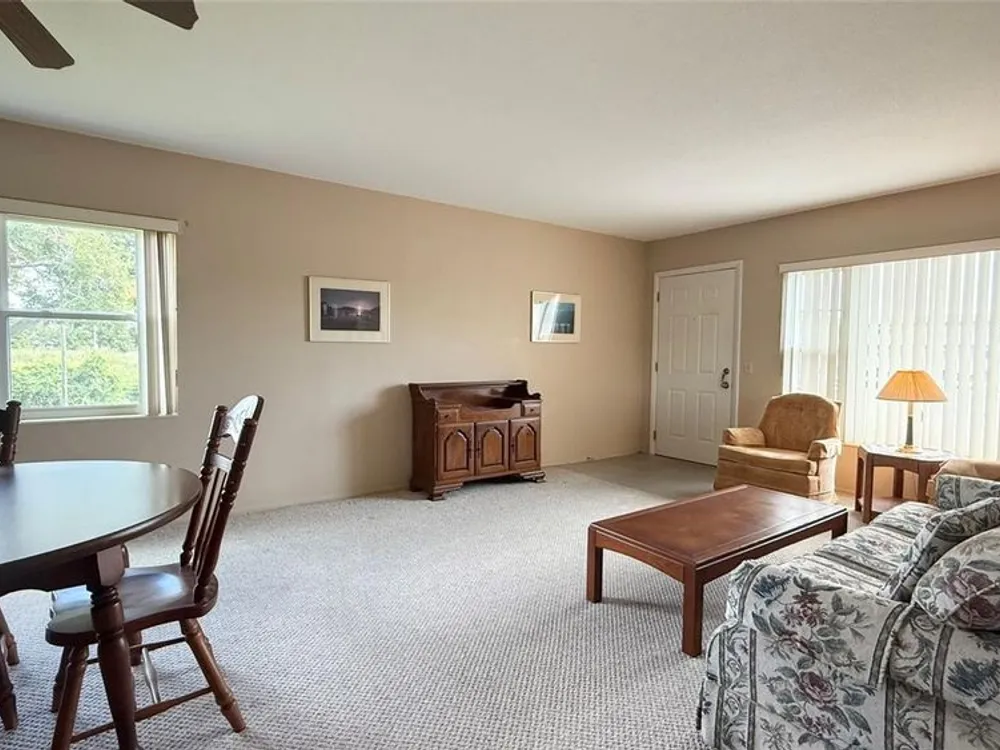Welcome to this beautiful 2-bedroom, 2-bath END unit condo in the prestigious On Top Of The World 55+ lifestyle community! The spacious living and dining room combination is perfect for family gatherings and entertaining guests. The updated kitchen, with appliances replaced in 2009, offers plenty of cabinet space for all your storage needs. Mayor updates include a new AC system installed on November 30, 2021, and a water tank replaced in 2019. At the back of the unit, enjoy a generous seating area with a large closet and a serene view of beautiful mature trees- an ideal spot to relax and unwind. The primary bedroom offers an ensuite bath and a large closet, while the second bedroom is perfectly suited for a guest room or a home office. On Top of the World is an all-inclusive gated community offering elevators, bus service for shopping, 9 and 18-hole golf courses, tennis courts, fitness center, whirlpool spa, two heated pools, recreation center, billiards, shuffleboard, wood shop, library, tai chi, a dog park, and an on-site café for drinks and snacks.