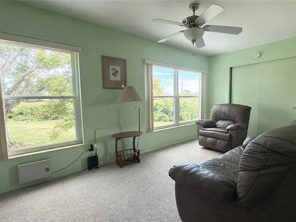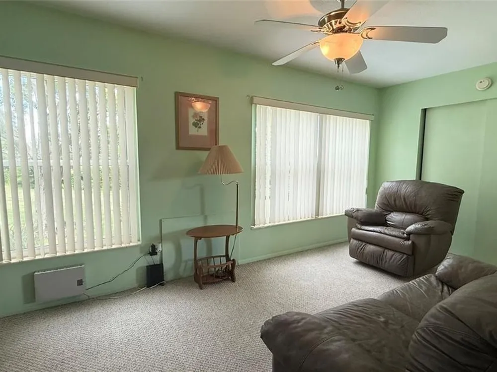 - Ceiling Fan(s), Living/Dining Room, Thermostat, Window Treatments