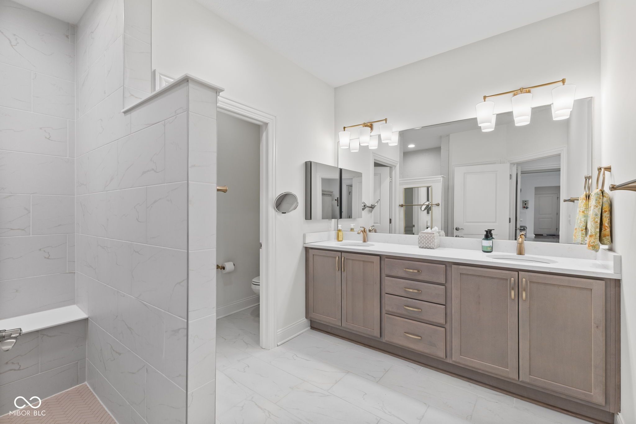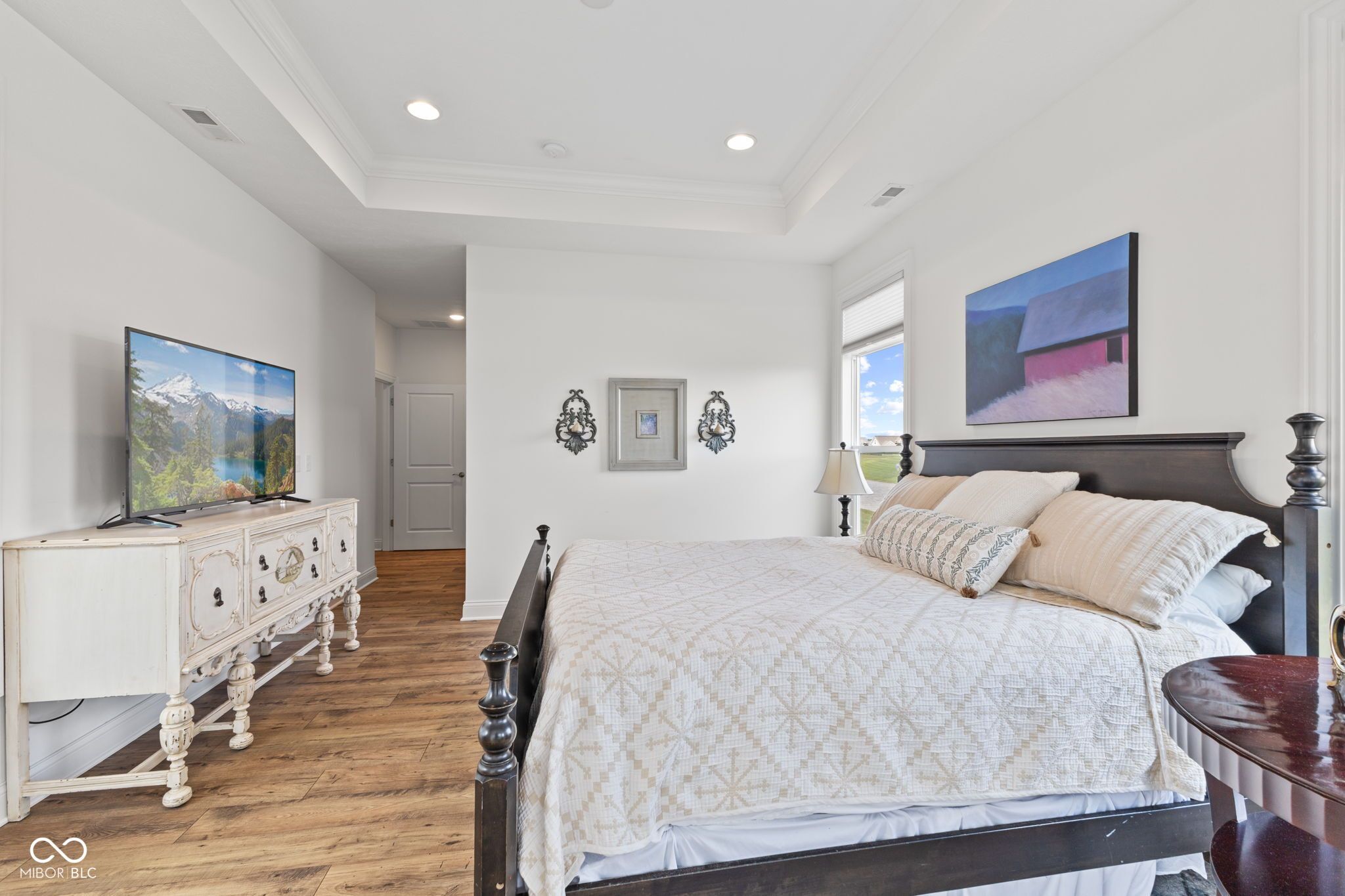 QUICK MOVE-IN!! LOTS OF EXCEPTIONAL UPGRADES! Beautiful home & setting in the popular COURTYARDS OF WESTFIELD community. AND no need to wait on construction or deal with warranty issues. All has been handled-this is as hassle-free as you can imagine. And it's the only home still available on the water. Your perfect, quiet hassle-free home awaits! You'll love the OPEN CONCEPT LAYOUT and all the NATURAL LIGHT this home has to offer. Beautifully-appointed w/a GOURMET KITCHEN, filled w/gorgeous cabinetry, high-end appliances, walk-in-pantry, stunning island, countertops, extraordinary backsplash & more. BETTER-THAN-NEW w/eye-catching DETAILS NO LONGER AVAILABLE WITH NEW CONSTRUCTION. (Like the BUILT-IN bookshelves in the living room.) LOTS OF PRIVACY in this captivating cottage style home w/many places to hang out. THE COURTYARD is a serene getaway w/attractive landscaping, outdoor fan & high-end pavers provides a great private & peaceful getaway. And you'll find more privacy w/the UPPER LEVEL RETREAT-like another home in itself-has its own living room, bedroom & full bath. A great place for a quiet office, den, rec room AND to accommodate company (visiting friends, kids, grandkids) or if a live-in healthcare professional is desired, they could have their own separate living quarters. The primary bedroom has an adjoining cozy sitting area (w/a pond view). There are two additional main floor bedrooms (which can also be used as an in-home office or den). OTHER STANDOUT FEATURES: ZERO-THRESHOLD WALK-IN SHOWER, CUSTOM BLINDS, TANKLESS WATER HEATER, LUXURY VINYL PLANK FLOORING & EXTRA WIDE DOORS throughout, polyurea-COATED GARAGE FLOOR, fireplace & more. Great low maintenance community! Great neighbors! A new grocery store & restaurants will be within walking distance! Courtyards of Westfield amenities include a great, cozy clubhouse w/pool & pickleball courts! A dog park coming very soon. Weekly yoga, theme parties, euchre, ladies & men's luncheons & game nights!