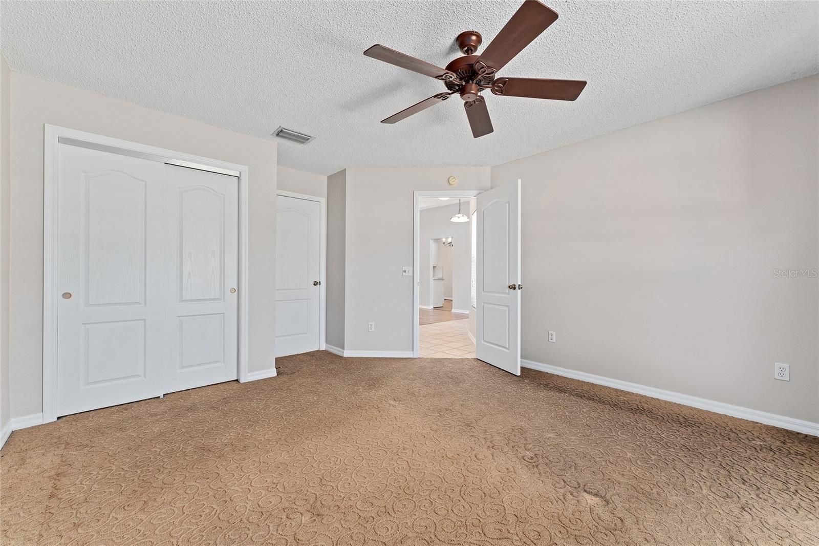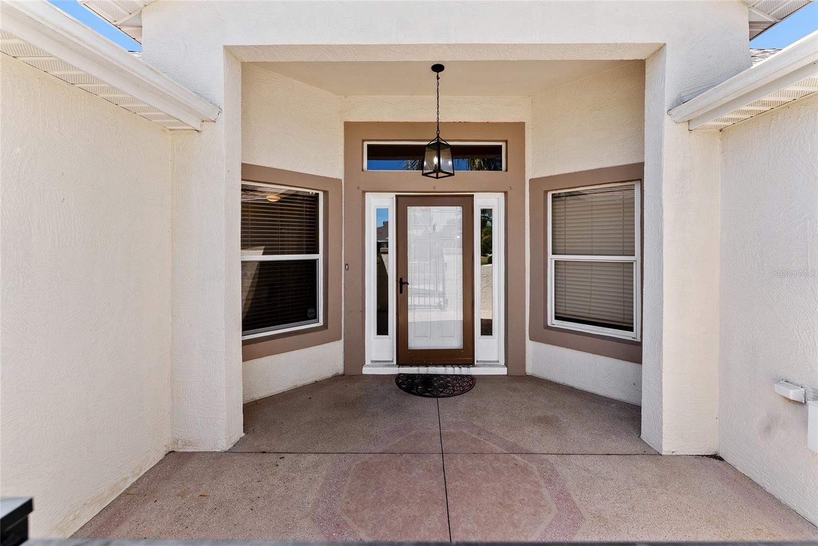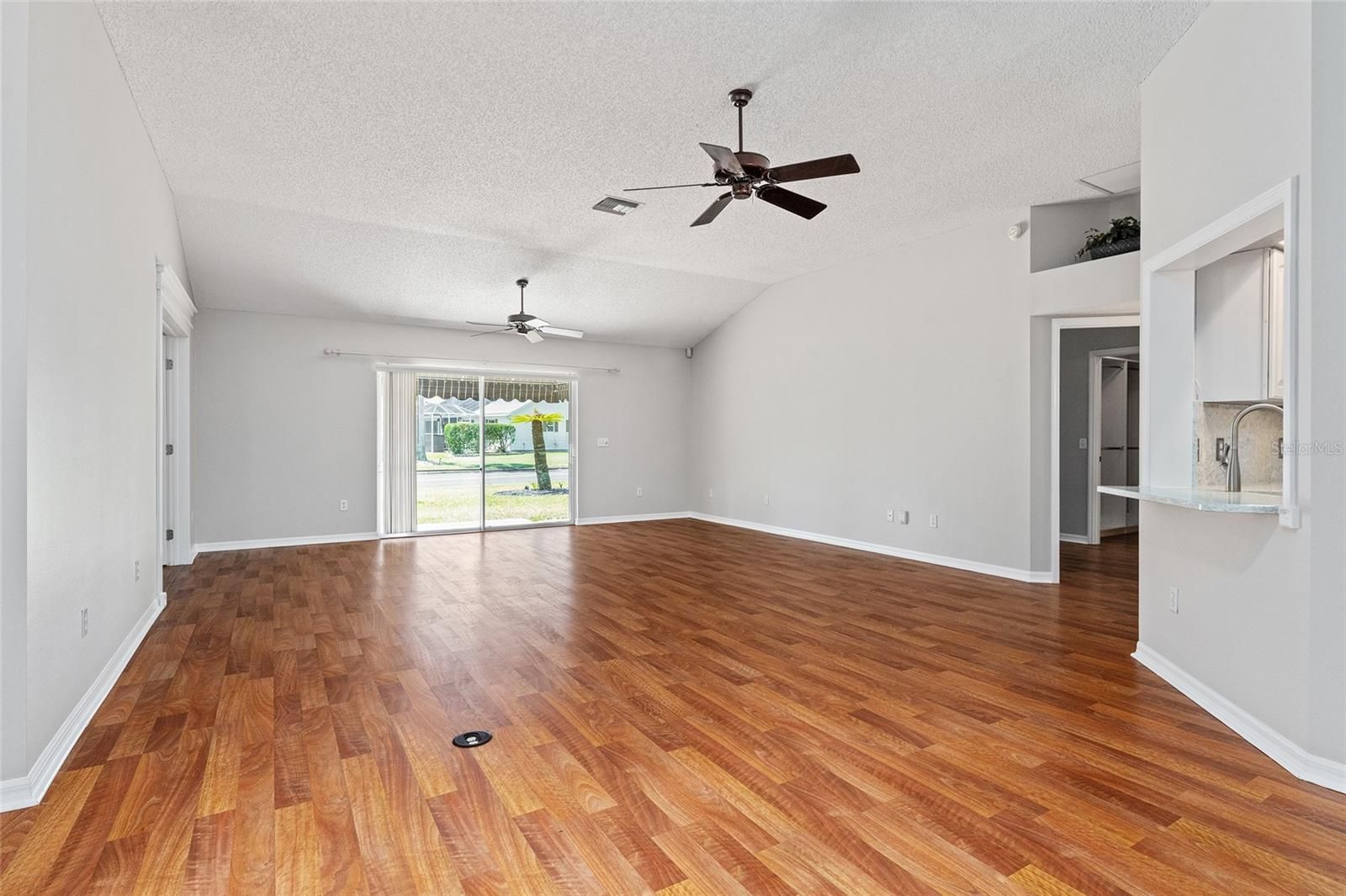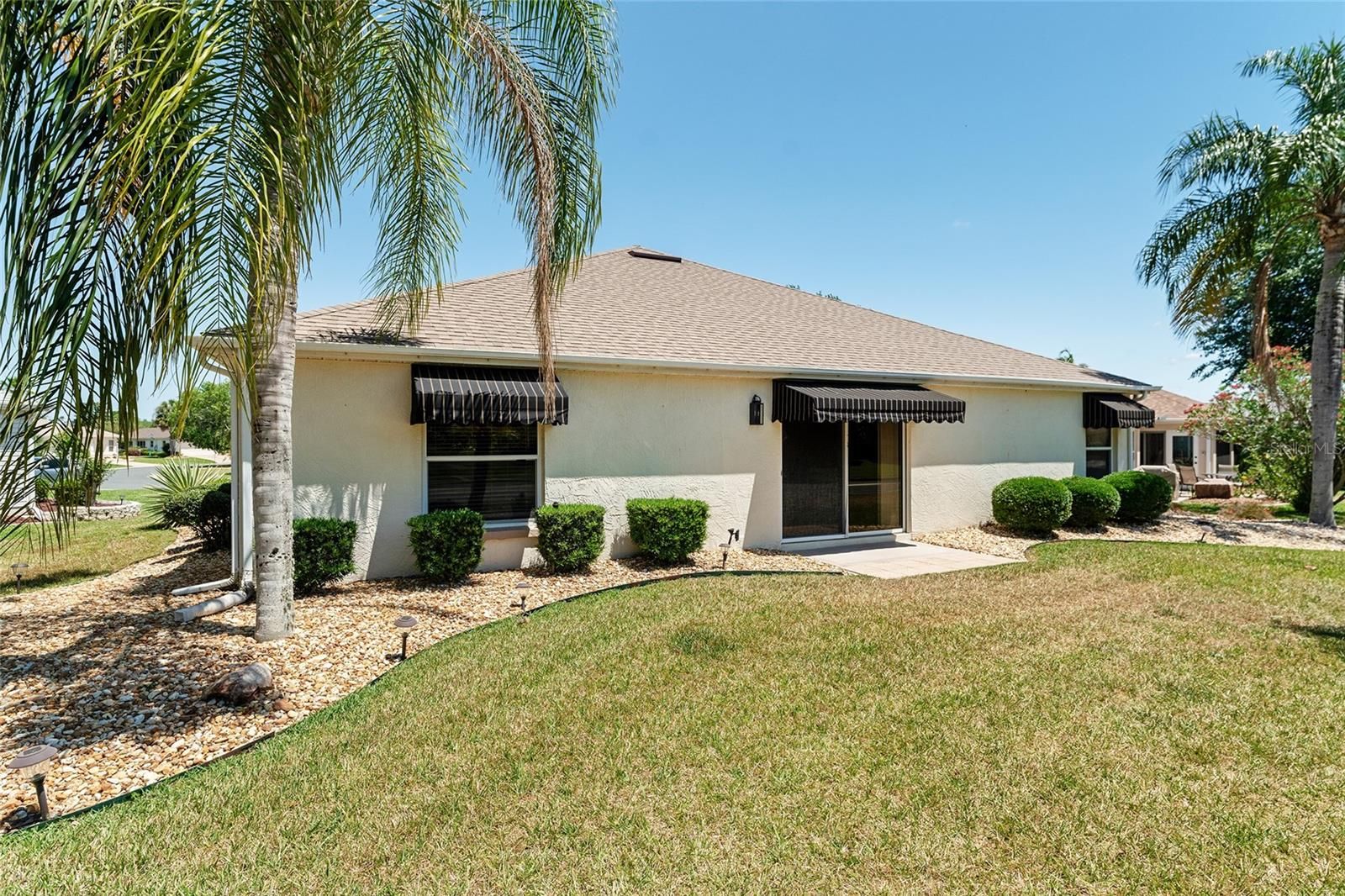 UPDATE 10/23/2025: Seller Will Consider OWNER FINANCING! Discover the PERFECT BLEND of UNIQUE DESIGN, COMFORT, and PRIVACY in this expanded Designer located in the VILLAGE of SANTIAGO! Perfectly positioned on an oversized 0.218-acre lot, this well-maintained 3 BR/2 BA/2 Car Garage home offers privacy w/ NO HOMES BEHIND. Enjoy charming CURB APPEAL highlighted by an ARCH SHINGLE HIP ROOF (2019), CONCRETE BLOCK & STUCCO exterior, and MATURE LANDSCAPING featuring ROCK-FILLED BEDS & a variety of palm trees. Prepare to be impressed by the METAL GATE ENTRY leading to the elegant COVERED FRONT PORCH featuring a concrete patio enclosed by a decorative CBS half-wall w/ 2 mini-columns. Stylish outdoor lighting mounted atop the columns illuminate this area in the evenings. Accentuated by matching sidelights & an overhead transom, the welcoming front door has a full glass storm door which provides for protection from the weather elements. Step inside the FOYER and experience the spacious ambiance of this OPEN CONCEPT, SPLIT BEDROOM FLOOR PLAN w/ 2145 SF of living area. The sightline is perfectly centered from the FOYER through the LIVING ROOM to the SLIDING GLASS DOORS with SOUTHERN REAR EXPOSURE. Natural light is generous in the expansive LIVING ROOM which exudes warmth w/ VAULTED CEILINGS & rich WOOD LAMINATE FLOORING. Adjoining the Living Room, the DINING ROOM is brightly illuminated by natural light from 3 large EASTERN-FACING windows & a SOLAR TUBE. An INDOOR LAUNDRY is conveniently tucked behind closet doors in the hallway to the Dining Room. The KITCHEN offers a culinary paradise featuring WHITE CABINETS with PULL OUTS & BUILT-IN PANTRY, luxurious QUARTZ COUNTERTOPS w/ BACKSPLASH which creates a sleek & cohesive look, contemporary DROP PENDANT LIGHTING over the single basin SS sink w/ disposal button & pass through window, and a cozy BREAKFAST NOOK w/ a convenient BUILT-IN BUFFET CABINET providing storage galore! The PRIMARY BEDROOM (rear SW corner) features VAULTED CEILINGS, a WALK-IN CLOSET w/ a CUSTOM CLOSET ORGANIZATION system, and an ENSUITE BATHROOM boasting DUAL SINKS/ VANITY w/ elegant WATERFALL FAUCETS, a bright SOLAR TUBE, and a TILED WALK-IN SHOWER w/ a built-in seat & an oversized, handheld showerhead. The guest wing provides welcoming accommodations featuring BEDROOM #2 (front) w/ a closet & an adjoining BATHROOM #2 offering MATCHING QUARTZ COUNTERTOPS, TILED TUB/SHOWER COMBO, & a GRAB BAR for enhanced safety. Dual FRENCH DOORS framed w/ classic woodworking finishes present an elegant entrance to BEDROOM #3 (no closet) just off of the LR in the rear of the home (SE corner). The WOOD LAMINATE FLOORING, ample NATURAL LIGHT from dual windows, and an illuminating SOLAR TUBE make this a comfortable space. Step outside the SLIDING GLASS DOORS in the rear of the LR to the REAR PATIO, the ideal place for enjoying Florida’s balmy winter evenings. The spacious 2-CAR GARAGE includes a motorized GARAGE DOOR SCREEN and 2 exterior access keypads. Add’l features include: PAID BOND, WHOLE-HOUSE WATER FILTRATION SYSTEM, DOUBLE PANE windows, HVAC w/ HEPA filter, economical GAS HEATING & DRYER, & IRRIGATION SYSTEM. This lovely abode is conveniently located just minutes from vibrant SPANISH SPRINGS & LAKE SUMTER LANDING town squares, the renowned SAVANNAH CENTER, and El Santiago & Tierra Del Sol rec centers. Homes of this quality and unique charm are rarely available. Grab your “Slice of Paradise” now before it is too late! Call today!