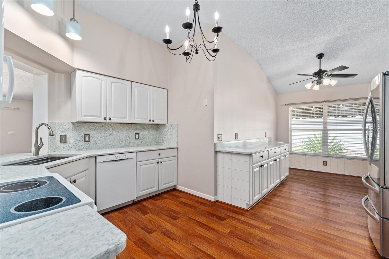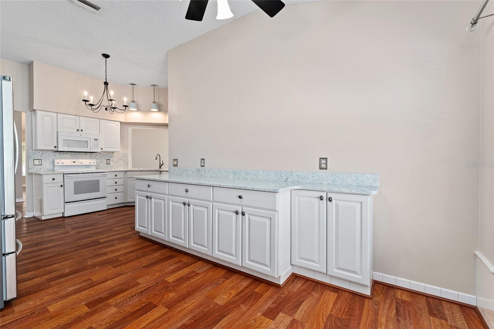 - Attic Ventilator, Ceiling Fan(s), Eat-in Kitchen, Living/Dining Room, Split Bedrooms, Stone Counters, Thermostat, Vaulted Ceiling(s), Walk-In Closet(s), Window Treatments