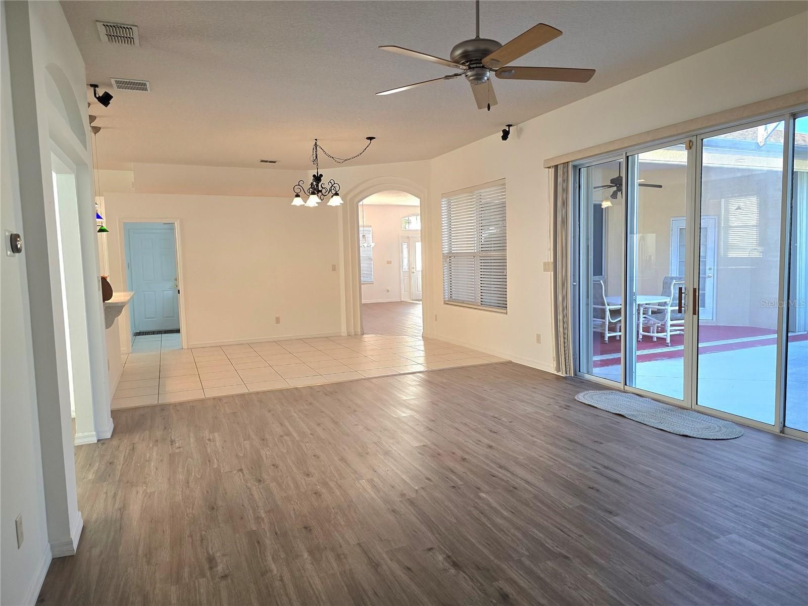 Amazing price for this Bird of Paradise model in The Plantations of Leesburg with a great floor plan and design. Opportunity to make this your home sweet home with your personal touch. A unique added feature is the screened-in Mickey Mouse pool with fountain. This home has 2 bedroom 2 1/2 baths with high ceilings, sliders off the main living room and also off the family room, 14 x 12 den/office, Primary bedroom has walk in closet with shelving unit and drawers & access to pool, primary bathroom with large shower handicap ready, nice size kitchen with lots of counter and cabinets, 2nd bath can also be used as pool bath, planters shelves and the laundry room features the half bath, 2 car garage along with golf cart garage, extra closet in garage for storage, racks mounted in garage for extra storage and BONUS hurricane shutters at all windows including front door and back lanai. A wonderful active life style community offering pool, fitness center, billiards, pickelball, tennis, restaurant, lots of activities daily and 2 18-hole golf courses. A must to see