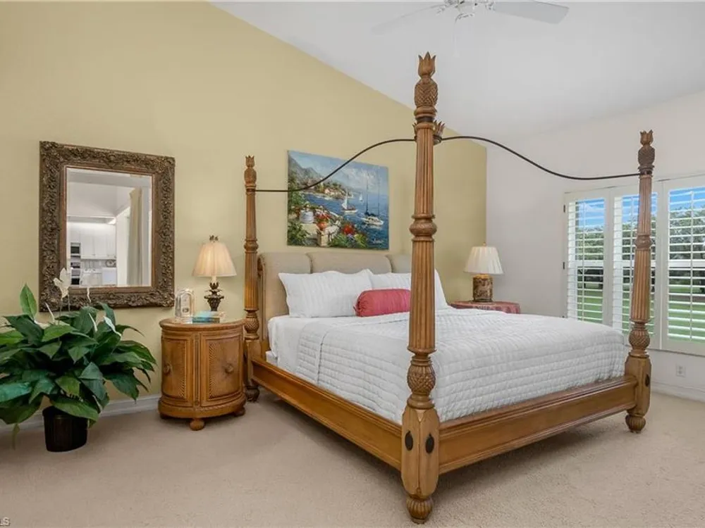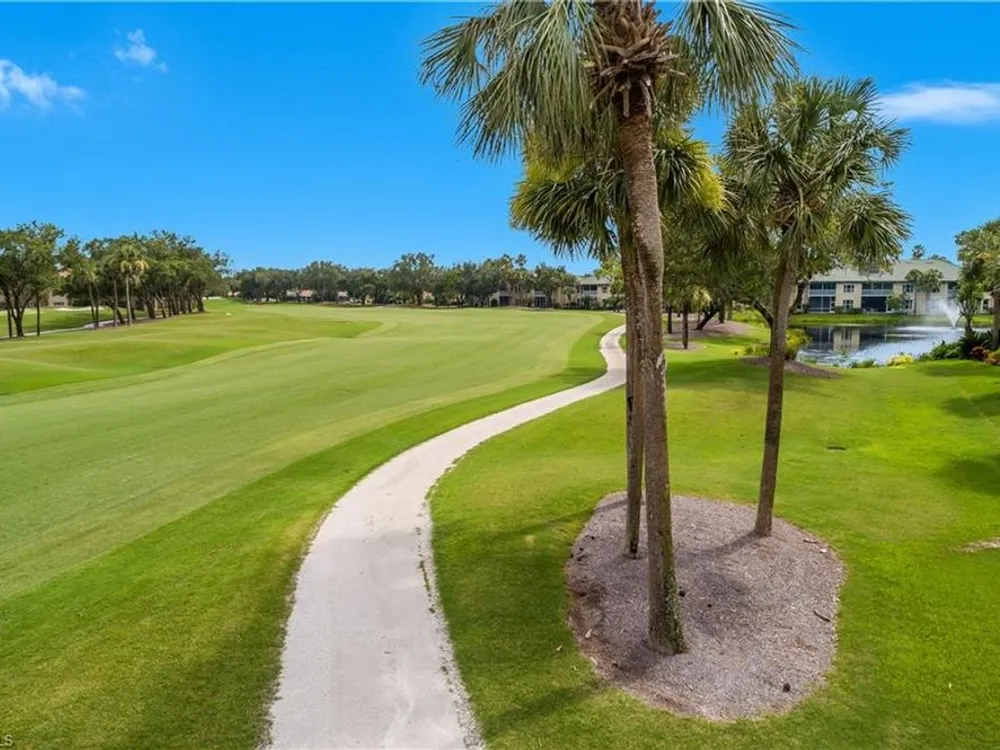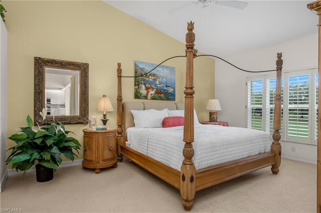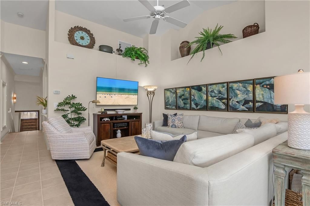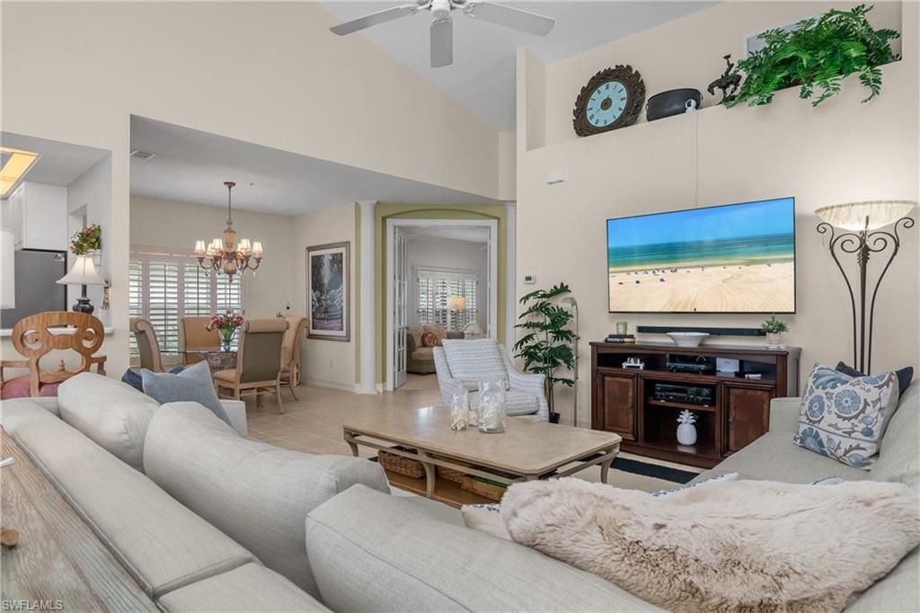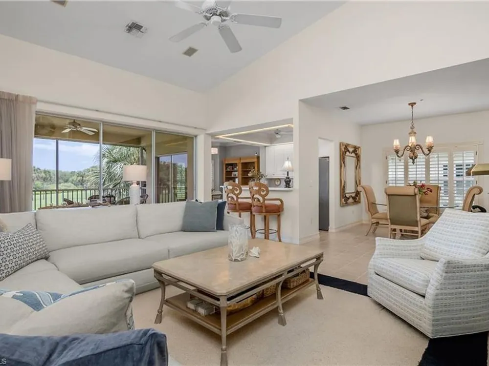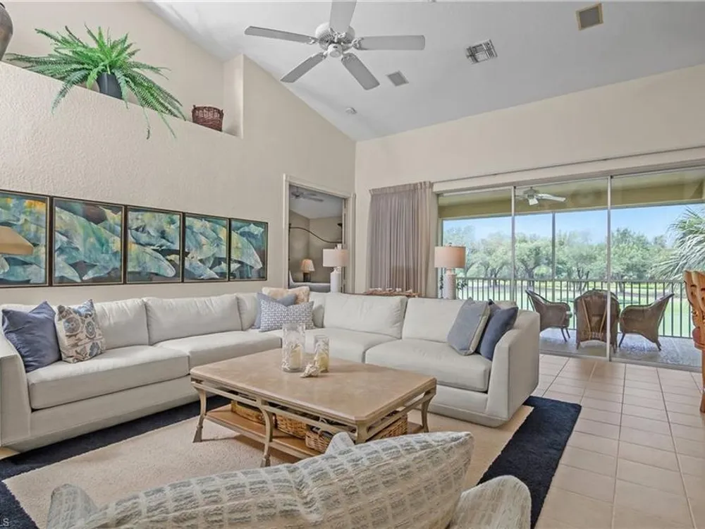 A rare treasure! Palm Colony now available in beautiful Pelican Landing! Serenity awaits you with a peaceful and private southerly view of the lush GATOR 5 hole on Pelican Nest Golf Course. Spacious and open floor plan seamlessly connects living room, dining room, lanai and kitchen for great views and entertaining! Sneak a peek of the glorious sunrise as you pour your morning coffee. With high vaulted ceilings this 3 BR/3BA upper end unit coach home boasts of natural light. Special custom upgrades make this Palm Colony home truly unique. A large primary and 2nd guest en-suites have double sinks, tubs and showers. Nice size closets. 3rd BR/den, has custom pillars surrounding tall French doors to enter, also an additional custom interior window built in to provide a special touch of natural light to the hallway. 3rd bathroom has oversized shower. Masland carpet in bedrooms, tile in community living areas. New kitchen appliances, new chandelier and hall sconces, new AC condenser, new roof. Freshly painted common areas, attached garage. One owner. Step out the front door and in seconds be greeted at the tropical oasis of one of the two Palm Colony pools, both well appointed with everything you need to enjoy a relaxing day by the heated pool and lake. Large poolside kitchens with grills, refrigerator, sink, bathroom, fitness center and even a library/community room. Tranquility awaits you as you enjoy the peaceful fountain and dine with family and friends. As part of the friendly Pelican Landing community, you will enjoy access to amazing community amenities, including access to a private Island beach club on the Gulf by boat shuttle over Estero Bay. Gulf access sailing and a boat landing. For the sports minded, 12 Har Tru tennis courts conveniently located right around the corner from Palm Colony. Pickleball courts, bocce, state-of-the-art fitness center, community center with events, kayak park, children’s park and butterfly garden. Pelican Landing is conveniently located within 20 minutes of the airport, as well as a couple minutes to the outdoor Coconut Mall and abundant dining options, pharmacy and grocery. Optional Golf memberships available by contacting The Nest Golf Club, which has 36 holes of Championship Golf and a beautiful appointed clubhouse. This is a special place on Ivory Cane in Palm Colony to call home!