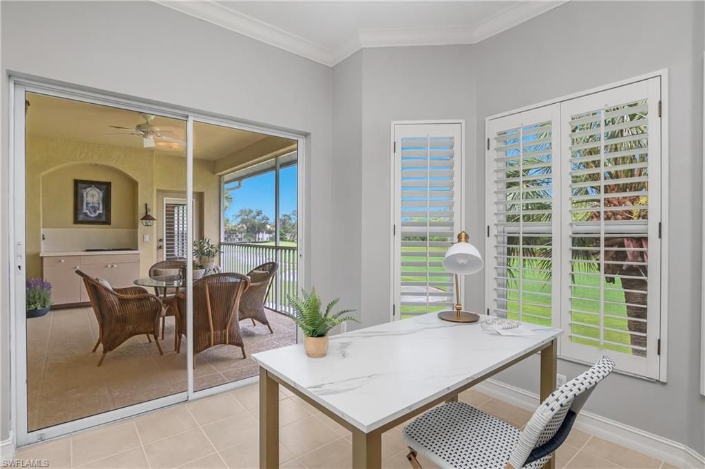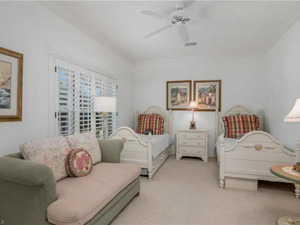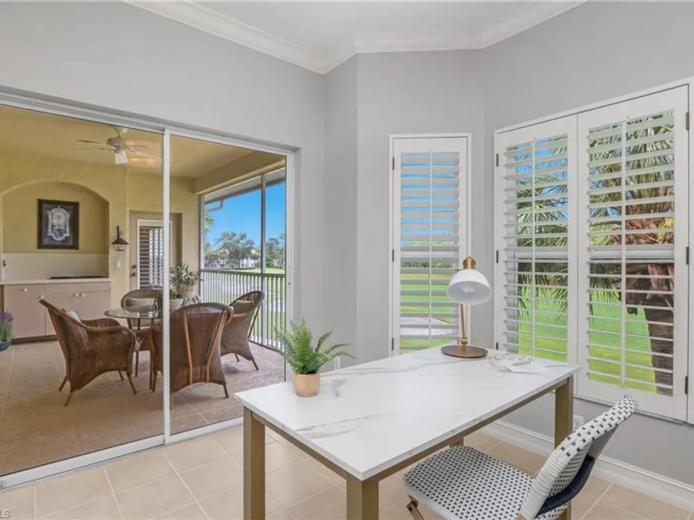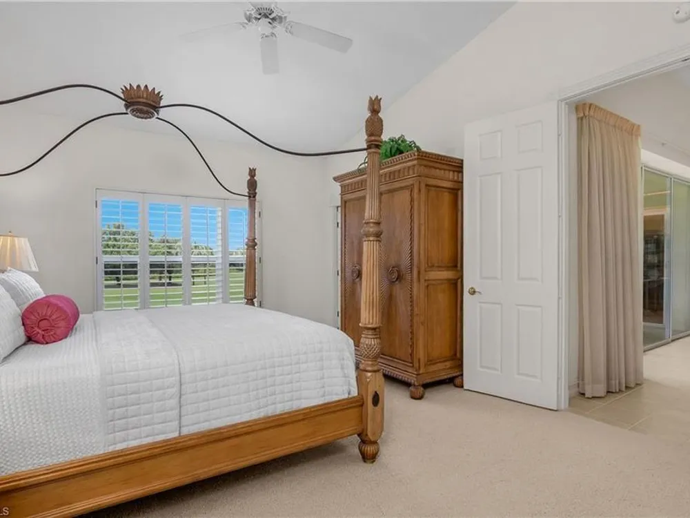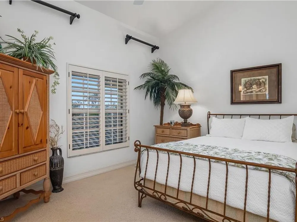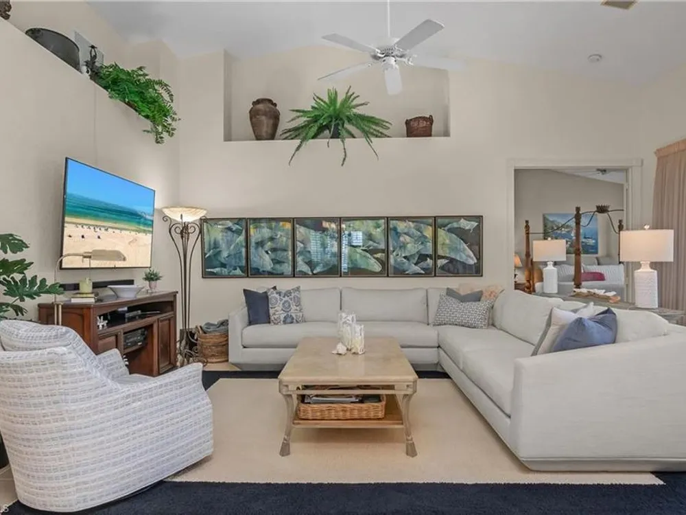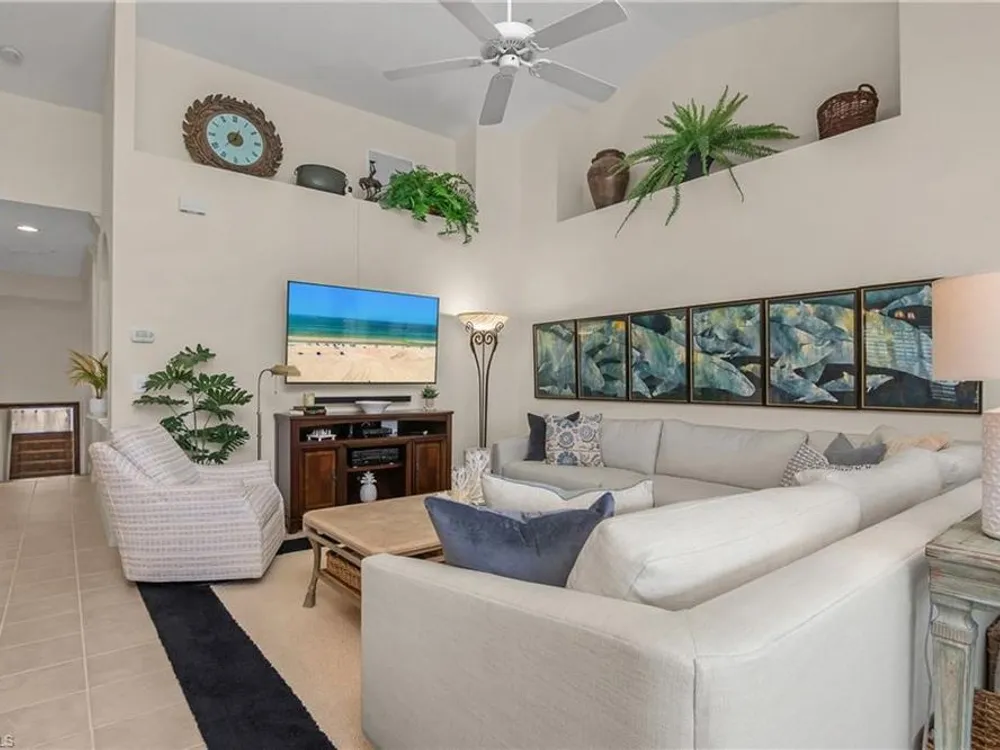 A rare treasure! Palm Colony now available in beautiful Pelican Landing! Serenity awaits you with a peaceful and private southerly view of the lush GATOR 5 hole on Pelican Nest Golf Course. Spacious and open floor plan seamlessly connects living room, dining room, lanai and kitchen for great views and entertaining! Sneak a peek of the glorious sunrise as you pour your morning coffee. With high vaulted ceilings this 3 BR/3BA upper end unit coach home boasts of natural light. Special custom upgrades make this Palm Colony home truly unique. A large primary and 2nd guest en-suites have double sinks, tubs and showers. Nice size closets. 3rd BR/den, has custom pillars surrounding tall French doors to enter, also an additional custom interior window built in to provide a special touch of natural light to the hallway. 3rd bathroom has oversized shower. Masland carpet in bedrooms, tile in community living areas. New kitchen appliances, new chandelier and hall sconces, new AC condenser, new roof. Freshly painted common areas, attached garage. One owner. Step out the front door and in seconds be greeted at the tropical oasis of one of the two Palm Colony pools, both well appointed with everything you need to enjoy a relaxing day by the heated pool and lake. Large poolside kitchens with grills, refrigerator, sink, bathroom, fitness center and even a library/community room. Tranquility awaits you as you enjoy the peaceful fountain and dine with family and friends. As part of the friendly Pelican Landing community, you will enjoy access to amazing community amenities, including access to a private Island beach club on the Gulf by boat shuttle over Estero Bay. Gulf access sailing and a boat landing. For the sports minded, 12 Har Tru tennis courts conveniently located right around the corner from Palm Colony. Pickleball courts, bocce, state-of-the-art fitness center, community center with events, kayak park, children’s park and butterfly garden. Pelican Landing is conveniently located within 20 minutes of the airport, as well as a couple minutes to the outdoor Coconut Mall and abundant dining options, pharmacy and grocery. Optional Golf memberships available by contacting The Nest Golf Club, which has 36 holes of Championship Golf and a beautiful appointed clubhouse. This is a special place on Ivory Cane in Palm Colony to call home!