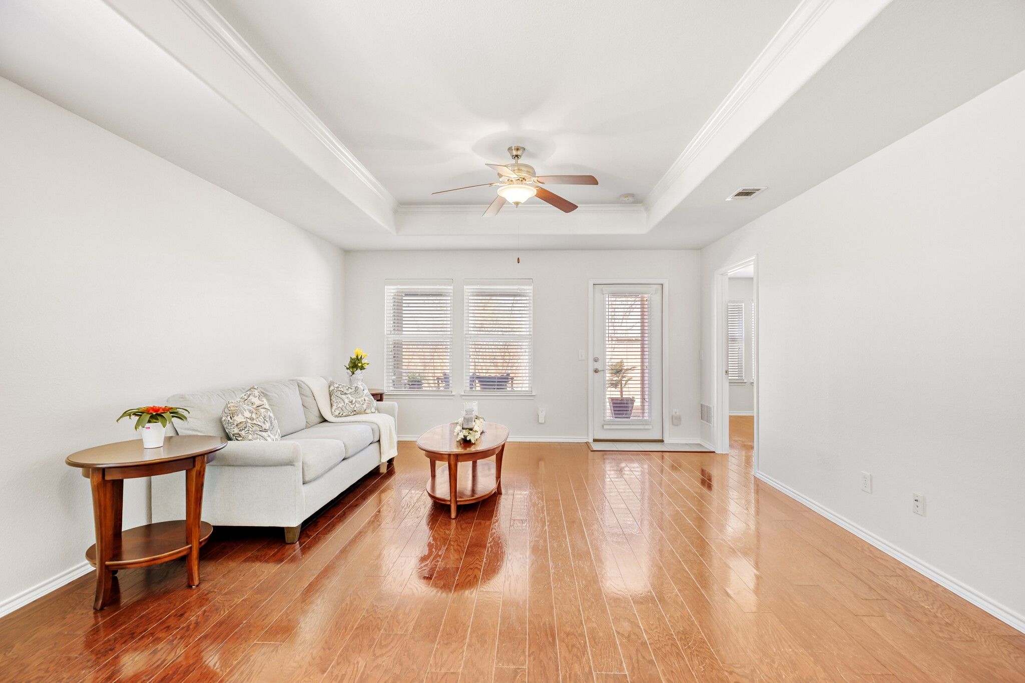 We want to Welcome YOU to your next fabulous home in the Frisco Lakes by Del Webb a 55+ active adult living community. This beautiful community is packed with amenities, social groups, and many activities for you to enjoy. This Gray Myst plan home has 3 bedrooms and 2 full baths. This meticulously cared for one-owner home has multiple updates throughout, including engineered wood flooring, Freshly painted Interior, and new carpeting installed Feb. 2026, a tankless water heater, an insulated garage door, full gutters front and back of home, a fenced in back yard, a gas cooktop inside this Beautiful kitchen and ceiling fans. Enjoy the Texas sunsets on the covered back patio with a roll down shade, and plenty of privacy. The washer, dryer and kitchen refrigerator will stay for the new buyer. Very convenient to many retail and grocery stores. Frisco Lakes golf course is situated IN the community as well.