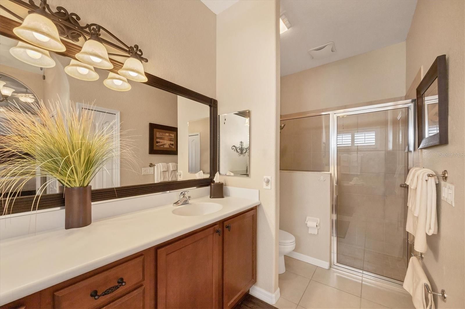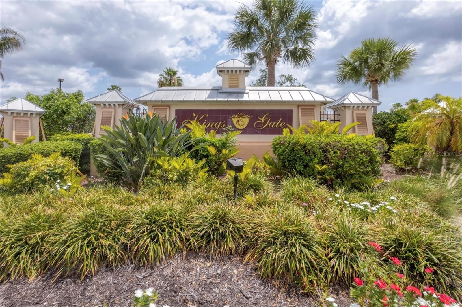 The perfect blend of location, luxury and move in ready. As you approach the home, you can't miss the wonderful landscape with plenty of parking that a 3rd car garage offers. Welcome to this beautifully maintained 3 bedroom, 2 bathroom home. From the moment you enter this home, you are greeted with a cut above great room with furniture to compliment a quality home. The updated kitchen is a chef's dream, featuring SS appliances, under cabinet lighting and plenty of working space with the island and roll out lower cabinet shelves and a snack bar for convenience. Adjacent to the kitchen is the family room with double doors to the finished lanai. The primary bedroom features a stepped ceiling, double doors to the master bath. Double walk-in closets and sinks. Bedrooms 2 & 3 are very comfortable size with a shared bath and very comfortable for your guest. Your guest will enjoy the large finished lanai with a well done, well lighted patio out back. Kings Gate offers the full service Lions Den restaurant, a fitness center, Olympic pool with a large hot tub. Tennis courts, pickle ball, lawn bowling, horseshoes to name a few. Inside you will find a ballroom, theater, computer room, billiards, card games and a great deal more. Don't forget the 18 hole executive golf course. You'll need a golf cart just for your everyday travel from event to event. I'll be happy to show you around.......Welcome to Florida Living......