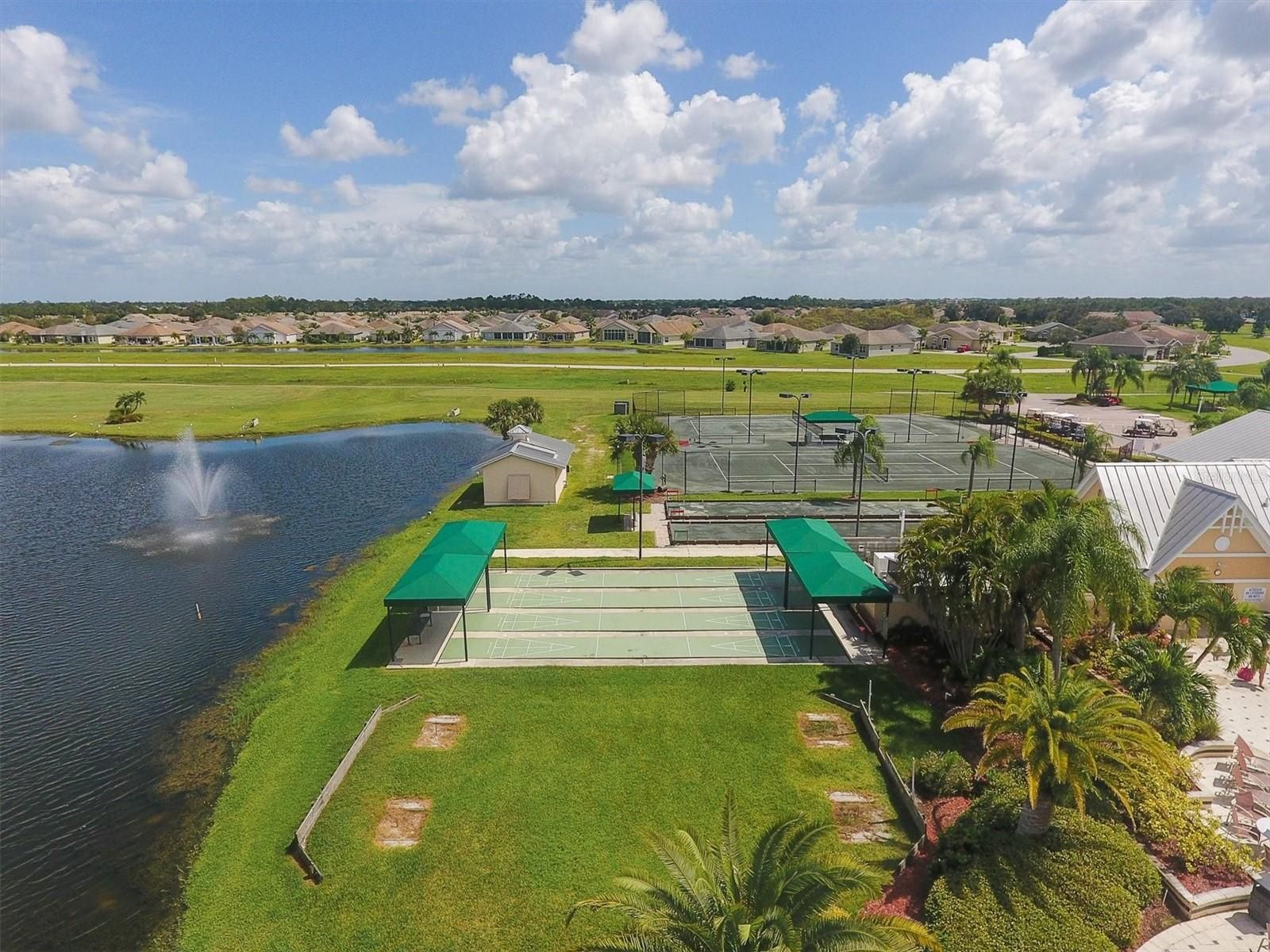 - Includes: Cable TV, Clubhouse, Fence Restrictions, Fitness Center, Gated, Golf Course, Pickleball, Pool, Shuffleboard Court, Spa/Hot Tub, Storage, Tennis Court(s), Vehicle Restrictions
