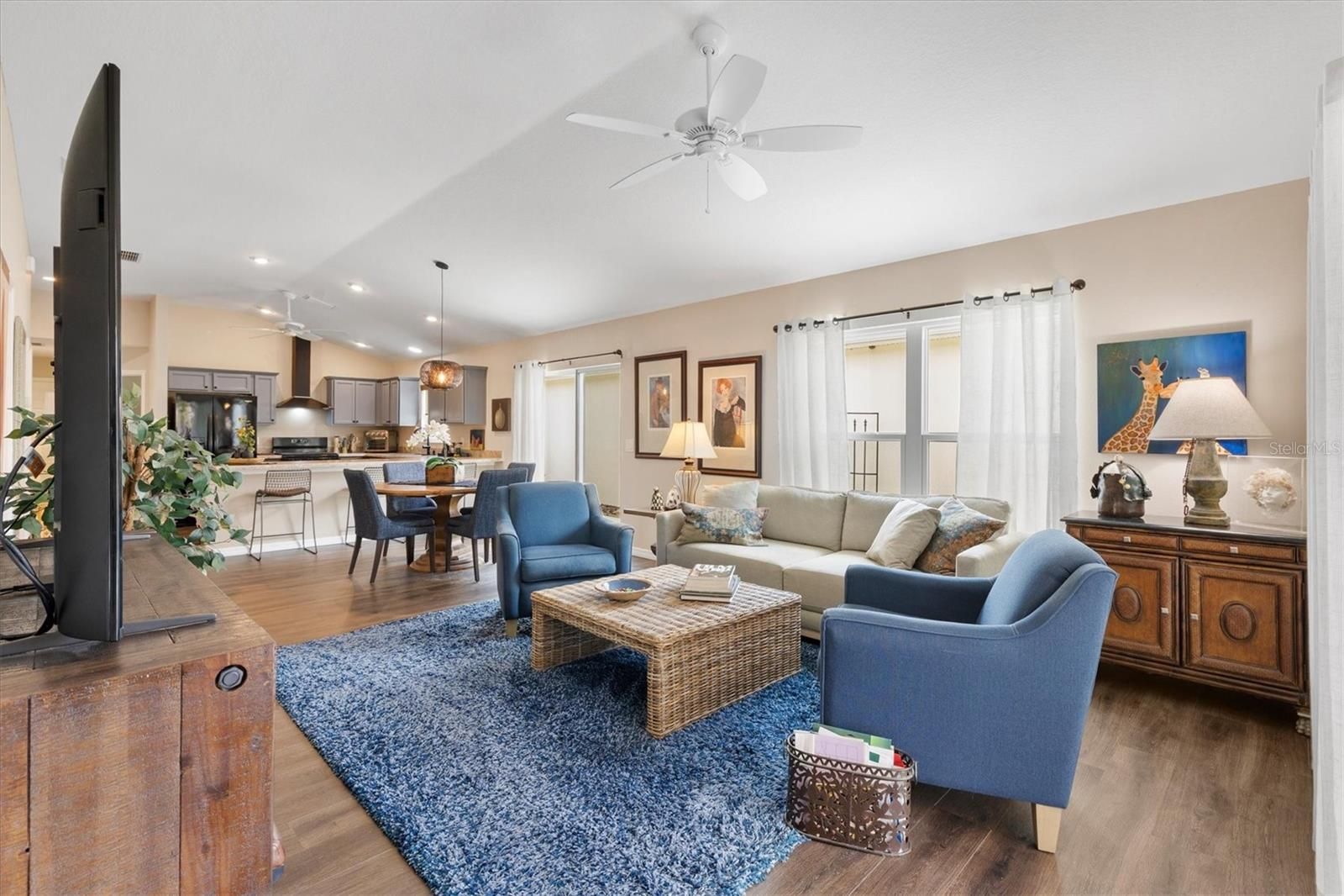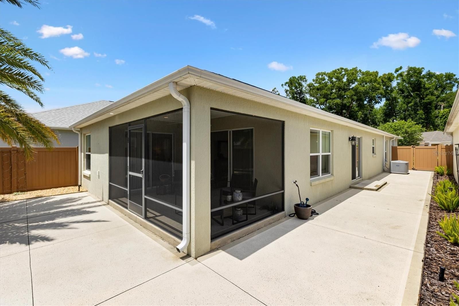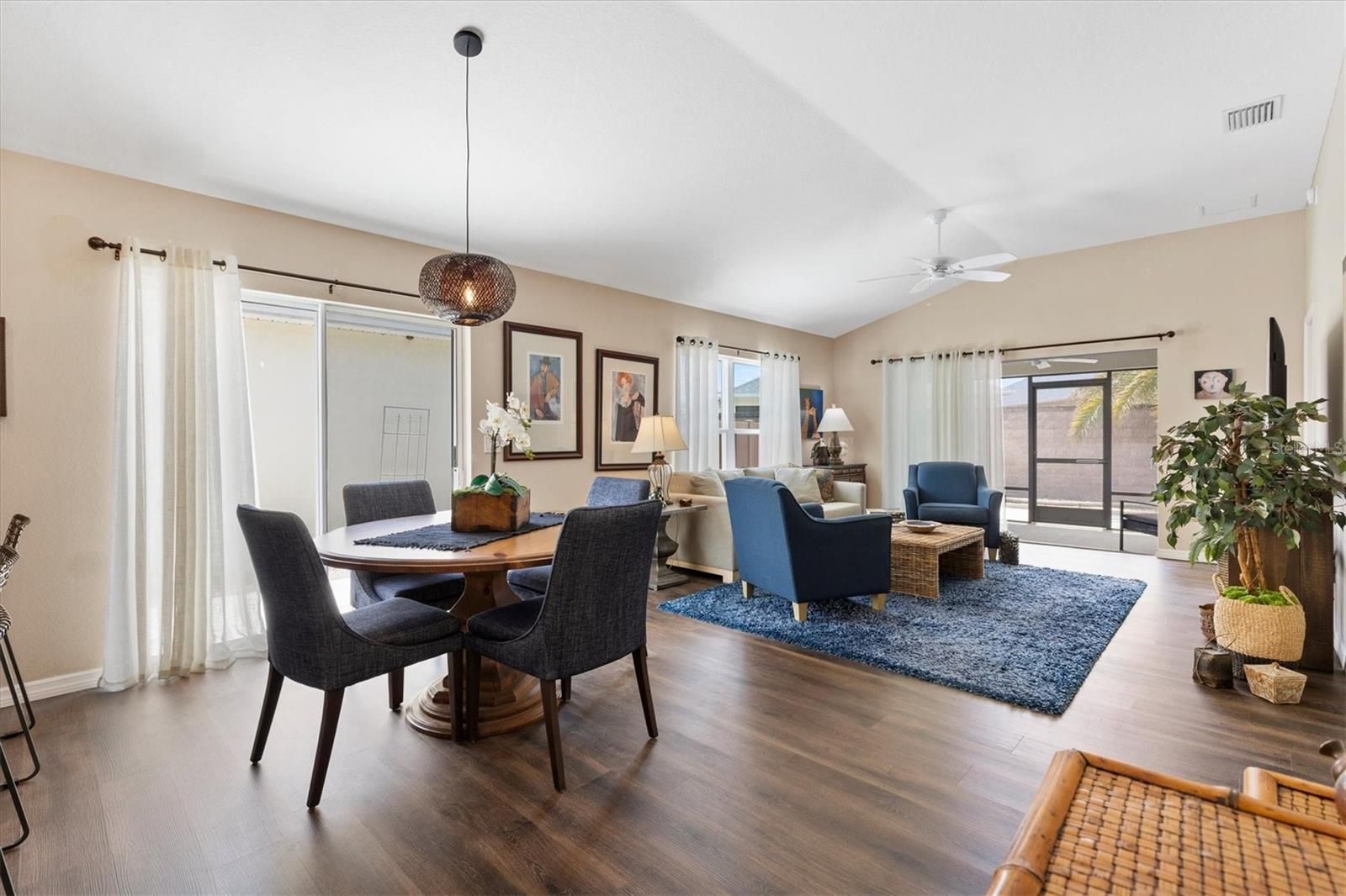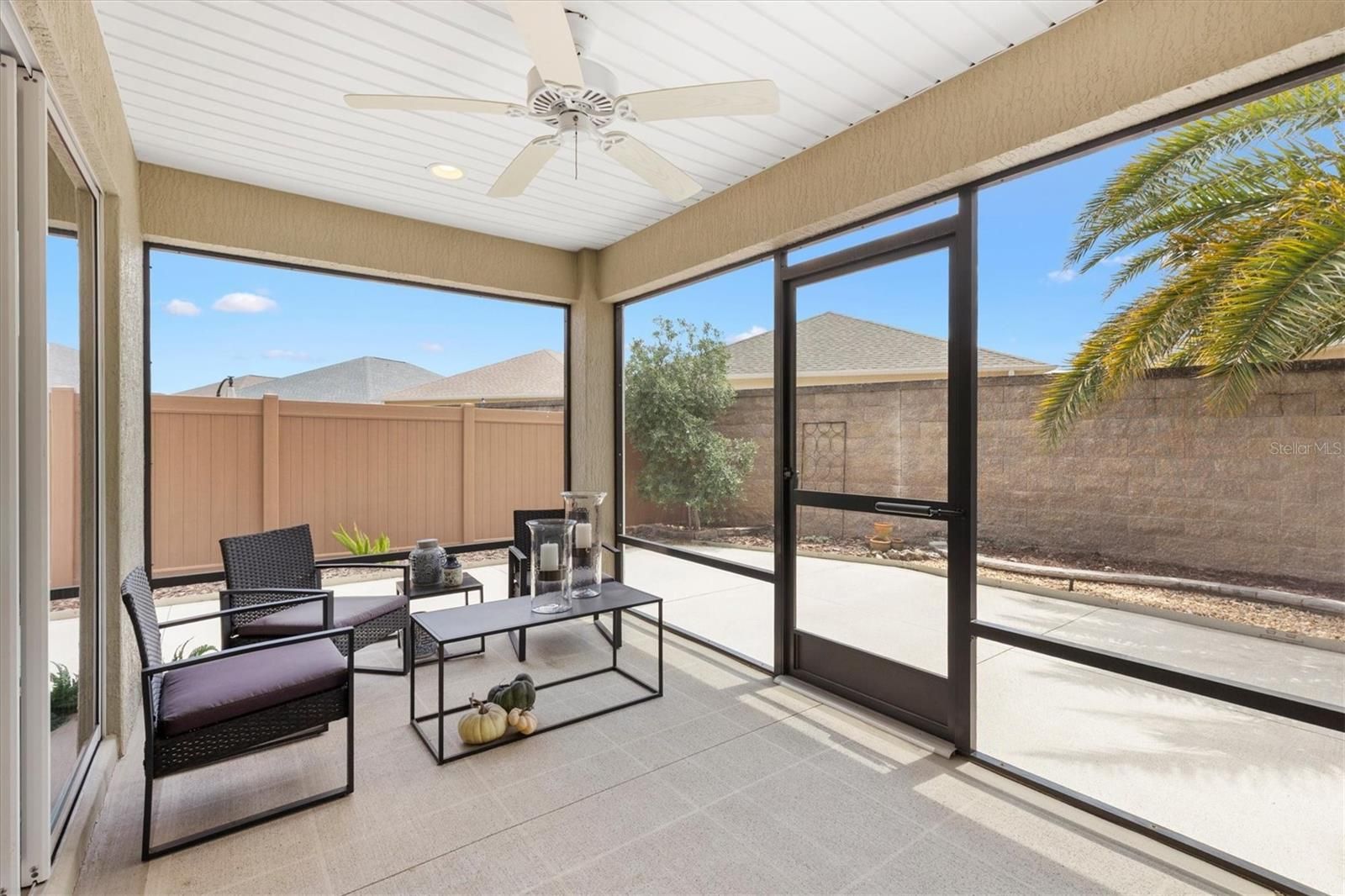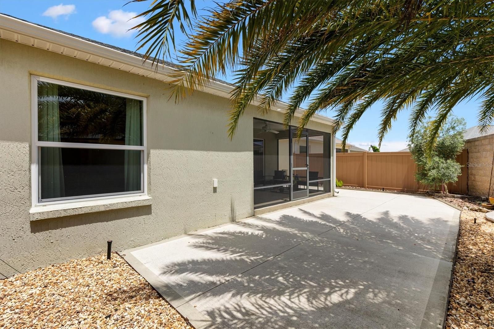 Welcome to your own private slice of paradise in the desired Lantana Villas, located in the Village of DeSoto within The Villages®. This Charlotte Courtyard Villa offers the perfect blend of peaceful surroundings and unbeatable convenience. If you love the charm of mature trees reminiscent of the north, yet want to stay close to all the excitement, this location truly delivers and we are about equidistant from both Eastport Town Square and Brownwood Paddock Square. Built in 2018, this thoughtfully maintained 3-bedroom, 2-bath home spans 1,425 square feet and is move-in ready with fresh interior paint. You’ll find carpet only in the guest bedrooms, keeping the main living areas low-maintenance and ideal for everyday living or seasonal stays. Rear primary bedroom hosts its own private sliding glass door to the lanai and a fully tiled Roman shower in the attached suite. Freshly painted home plus a brand new kitchen range. Stand out features in the Charlotte Courtyard Villa include a true laundry room with added cabinetry indoors plus a kitchen pantry. Step outside and enjoy a fully hardscaped courtyard—no grass in the front or back means easy upkeep and more time to enjoy the Florida lifestyle. The tall privacy wall creates your own secluded retreat, while the extended concrete patio provides the perfect spot to relax, entertain, or simply take in the view of your very own palm tree. Additional highlights include a painted driveway and garage, plus a mini-split system already installed in the garage—ideal for hobbies, storage, or keeping things cool year-round. The Village of DeSoto is packed with amenities, including scenic walking paths, both large and small dog parks, an archery range, and adjacent to Loblolly Executive Golfing. Easy access to Fenney Regional Recreation Center with a zero entry all age pool, the Fenney Putt & Play golf course, and the popular Fenney Grill. You’re also just moments from Magnolia Plaza and the Everglades Regional Recreation Complex. There are so many things to love about this community! Whether you’re looking for a full-time residence, seasonal escape, investment opportunity, or the perfect pet-friendly home with a fully fenced back yard, this villa checks all the boxes. Schedule your private showing today and start enjoying the lifestyle you deserve!