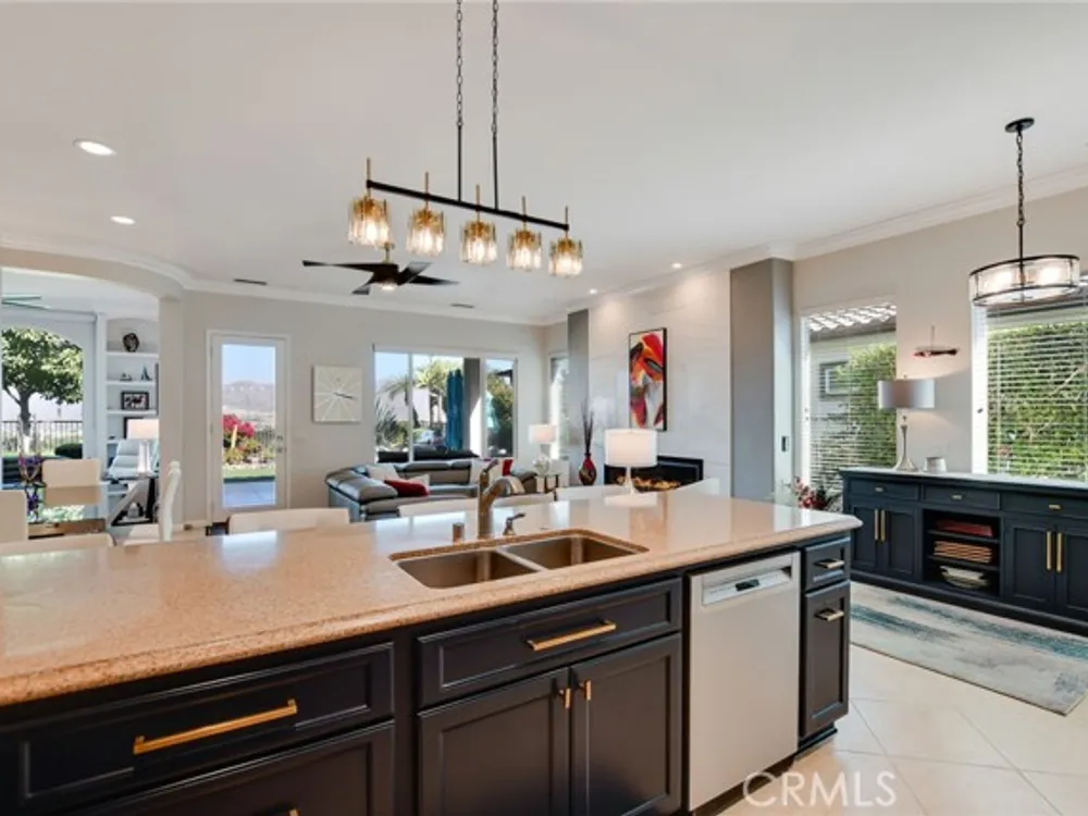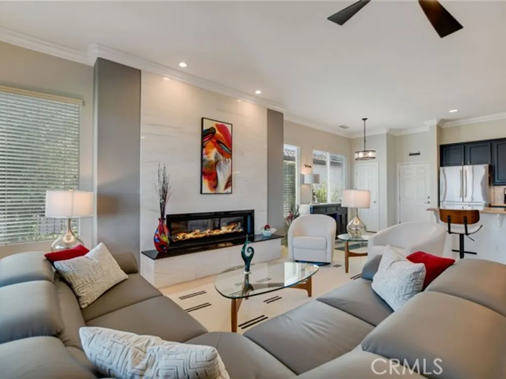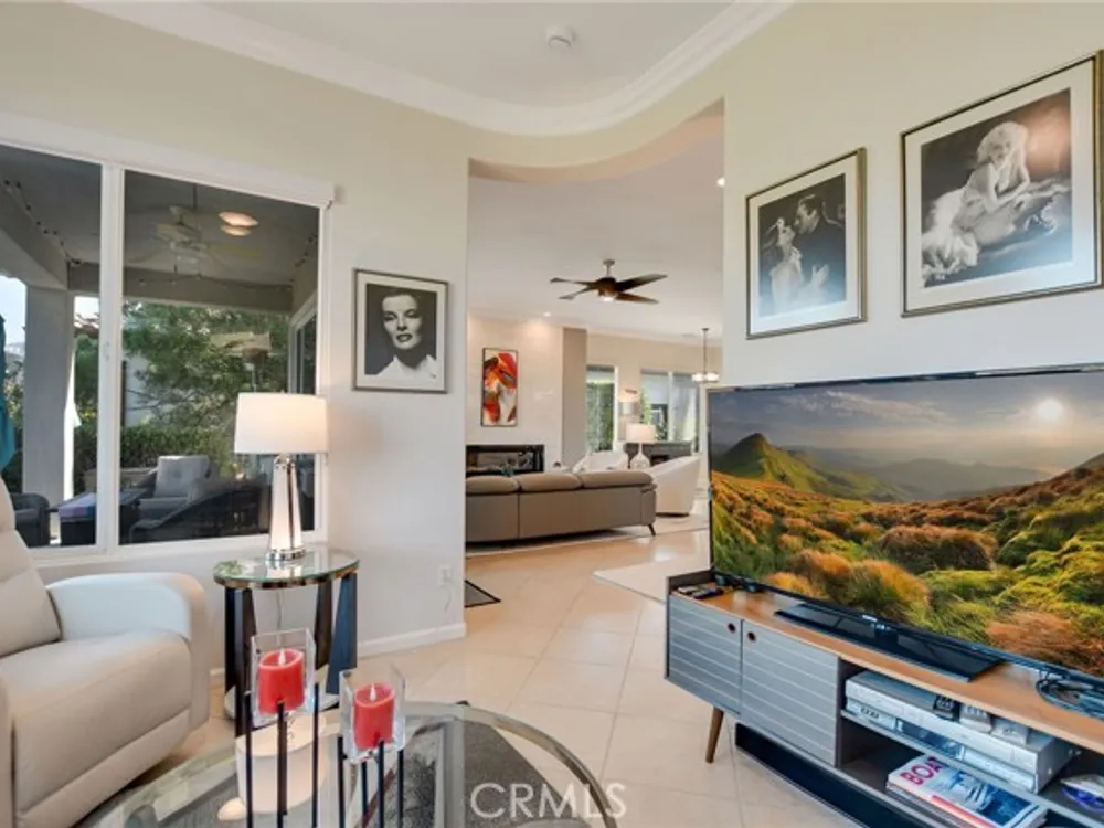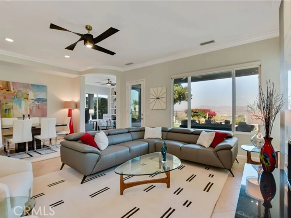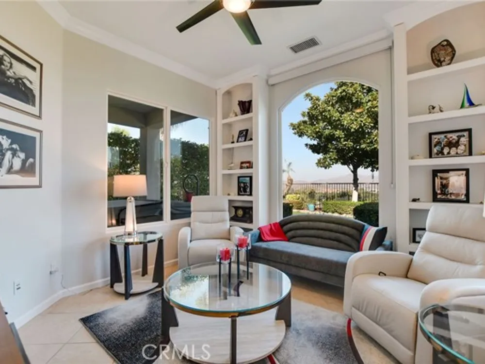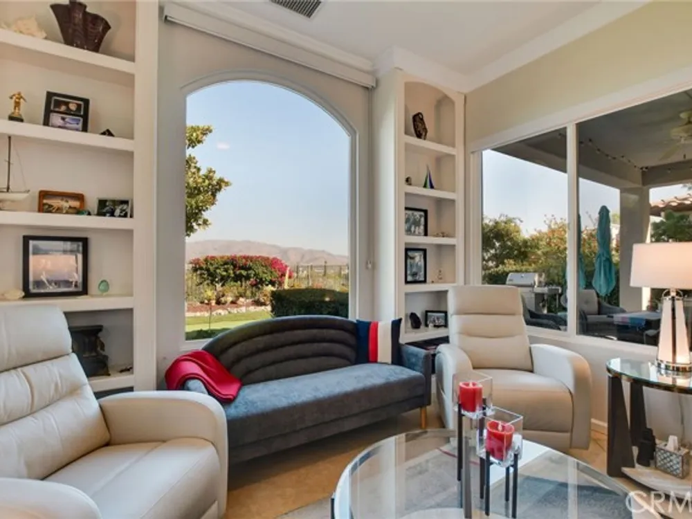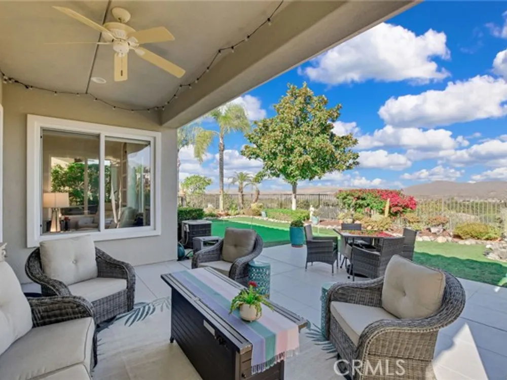 "MILLION-DOLLAR VIEWS WITHOUT THE MILLION DOLLAR PRICE TAG!" Welcome to this beautifully upgraded SINGLE story home (Tenaja Model) in the coveted Trilogy @ Glen Ivy. Glen Ivy is the Inland Empire's premier 55+ active adult community, nestled at the base of the Cleveland National Forest and surrounded by the stunning Glen Ivy Golf Course. This home offers resort-style living with breathtaking panoramic mountain views and twinkling night city lights. Step inside to a bright, open-concept layout that radiates elegance and comfort. The heart of the home features a remodeled floor-to-ceiling fireplace, crown molding throughout, and fresh paint inside and out. The expansive gourmet kitchen is a chef's delight with oversized wrapping island, newer 42†cabinets, stainless steel appliances, and modern lighting. Additional luxury touches include: Whole house fan for energy efficiency, Artfully designed ceiling fans, windows are adorned with Plantation shutters for classic charm and sunshades for keeping cool, Beautiful 18†angled tile & engineered wood flooring, Updated modern hardware and finishes, Stylish remodeled bathroom, Versatile “Hollywood†themed sitting room, Built-in Murphy bed in Bedroom #2 (included!). Step outside and be amazed ... the entertainer's backyard boasts a