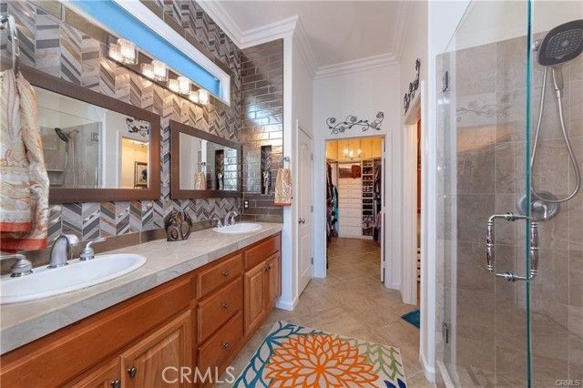 - Crown Molding, Wired for Data, Built-in Features, High Ceilings, Ceiling Fan(s), Recessed Lighting, Open Floorplan, Storage, Tile Counters, Granite Counters, Primary Bathroom, Den, Primary Suite, Laundry Facility, Main Level Primary, Bedroom on Main Level, Living Room, Family Room, Great Room, Formal Entry, All Bedrooms on Lower Level, Kitchen, Walk-In Closet(s)