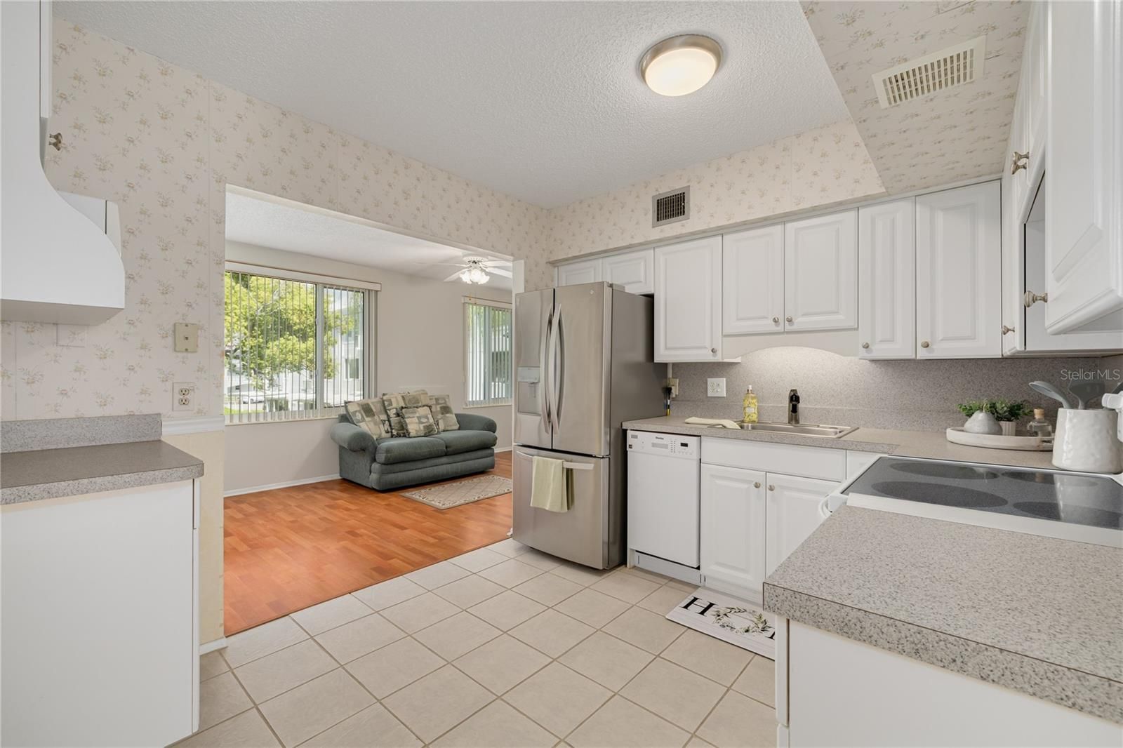 Enjoy peaceful, easy living on a quiet cul-de-sac in the highly desirable 55+ community of On Top of the World, where golf course views and resort-style amenities create the ultimate Florida lifestyle. This light-filled 2-bedroom, 2-bath condo offers a spacious layout featuring a combined living and dining area ideal for entertaining, plus a versatile family/sitting room adjacent to the kitchen for added comfort. The kitchen highlights updated cabinetry and durable ceramic tile floors, while sleek laminate flooring extends through the primary living areas. Freshly painted interiors in the main living areas and bedrooms ensure a unified, turnkey vibe ready for your personal touch. The primary bedroom features an updated private en-suite bath with a walk-in shower and elegant granite countertops. The guest bath, remodeled in 2021, mirrors this style with its own walk-in shower and matching granite countertops for a polished finish. Offered fully furnished, this turnkey residence allows you to move right in and start enjoying the Florida lifestyle from day one. Embrace an energetic, resort-inspired lifestyle with complimentary access to both a 9-hole and 18-hole golf course via the community activity card, plus two heated pools for leisurely swims and unwinding. Keep fit at the on-site fitness center, let your furry friends play at the dedicated dog park, or dive into over 100 clubs and social events that foster lasting connections among neighbors. Conveniently nestled in the heart of Clearwater, you're just minutes away from Clearwater Beach, the eclectic shops and restaurants of Downtown Dunedin, and endless entertainment options-making this the ideal spot to savor Florida's finest offerings. Additional Highlights: In-unit washer and dryer (2016), HVAC (2019), water heater (2018), stainless steel refrigerator (2019), and Hurricane-impact windows throughout. Note: Buyer approval is required. If financing, On Top of the World requires a 35% down payment.