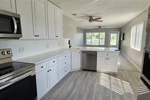 WOW! Washer/Dryer to be added prior to closing. This condo is the ultimate in rebuilt, remodeled and impressive! Bright End unit w extra windows for bright days and calming golf course views! From the New a/c, HWH, Plumbing, to the electric to the EZ care Luxury Vinyl flooring, nothing was overlooked. . Open floor plan enhances the remodeled kitchen, perfect for entertaining and the stone countertops and new appliances make cooking a joy! The remodeled baths are so elegant with marble floors , spacious vanities and custom tiled shower.Beyond the condo itself, the On Top of the World community offers an impressive array of amenities. Whether you're into fitness or relaxation, there's something for everyone. Enjoy a state-of-the-art gym, two golf courses (one 18-hole and one 9-hole), and a fully equipped woodworking shop available for free to all owners. Two refreshing pools, two recreation centers, tennis courts, and lawn bowling add to the variety of outdoor activities available. For those who enjoy creative pursuits, there's a lapidary and a library to explore. The Karma Café provides a perfect spot to relax, and with dozens of clubs, shows, dancing, art classes, and exercise classes, there’s no shortage of entertainment and social opportunities. With its top-tier updates, stylish furnishings, and access to an abundance of activities, this condo offers everything you could want in a home. It’s not just a place to live—it's a lifestyle.