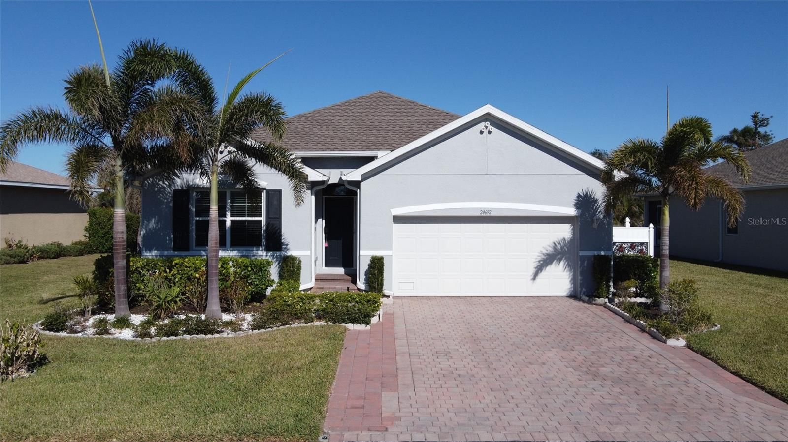 Welcome to your 4 bedroom/2 bathroom Florida dream home located in an exclusive 55+ gated community with many amenities including a Heated Pool, Pickel Ball Courts, Bocce Ball, Tennis Courts, Workout Facility, Club House/Activity Center and Hassle-Free Yard Maintenance. When you arrive, you will notice the brick paver driveway that has been extended an extra 4 feet and leads to a 2-car garage with a convenient plugin for the 6500-watt Generac portable generator and shelving for storage. There is as also a Water Filtration System on the Exterior of the home for extra water purification. This Property and Community has never flooded! FLOOD INSURANCE ON THIS PROPERTY IS ASSUMABLE. IS IT AN OPEN FLOOR PLAN The kitchen features quartz countertops, an island/breakfast bar, a walk-in pantry, and appliances still under the manufacturer's warranty. The screened-in, covered lanai has a roll-down sunshade, perfect for the FL afternoons. Home has a Smart Home package that includes an alarm system. The home is Energy efficient with double hung windows, has a new roof, the interior and exterior have been freshly painted, rain gutters, Manabloc plumbing, and clear hurricane panels for storm protection. This home provides storage space with many closets and has lots of upgrades throughout. Schedule your showing today, you don't miss out on this beautiful home! INFORMATION IS DEEMED RELIABLE BUT NOT GUARANTEED…TO BE VERIFIED BY THE BUYER AND/OR BUYER'S AGENT.