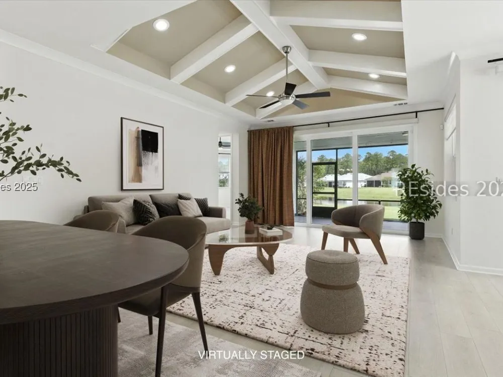 Dreaming of the perfect home? The Breeze is an entertainer's delight! Step into the inviting foyer and discover beamed ceilings in the great room, dining area, and gourmet kitchen. The primary suite is a true retreat, featuring a bay window with a view to the lagoon, a spa-like bath and dual walk-in closets. A second ensuite is very spacious, along with a guest bath, There is a large bonus room/office and 2-car garage with epoxy flooring add convenience. Relax with a cup of coffee in the screened lanai overlooking the serene lagoon. Embrace the Jimmy Buffett lifestyle in this amazing community!