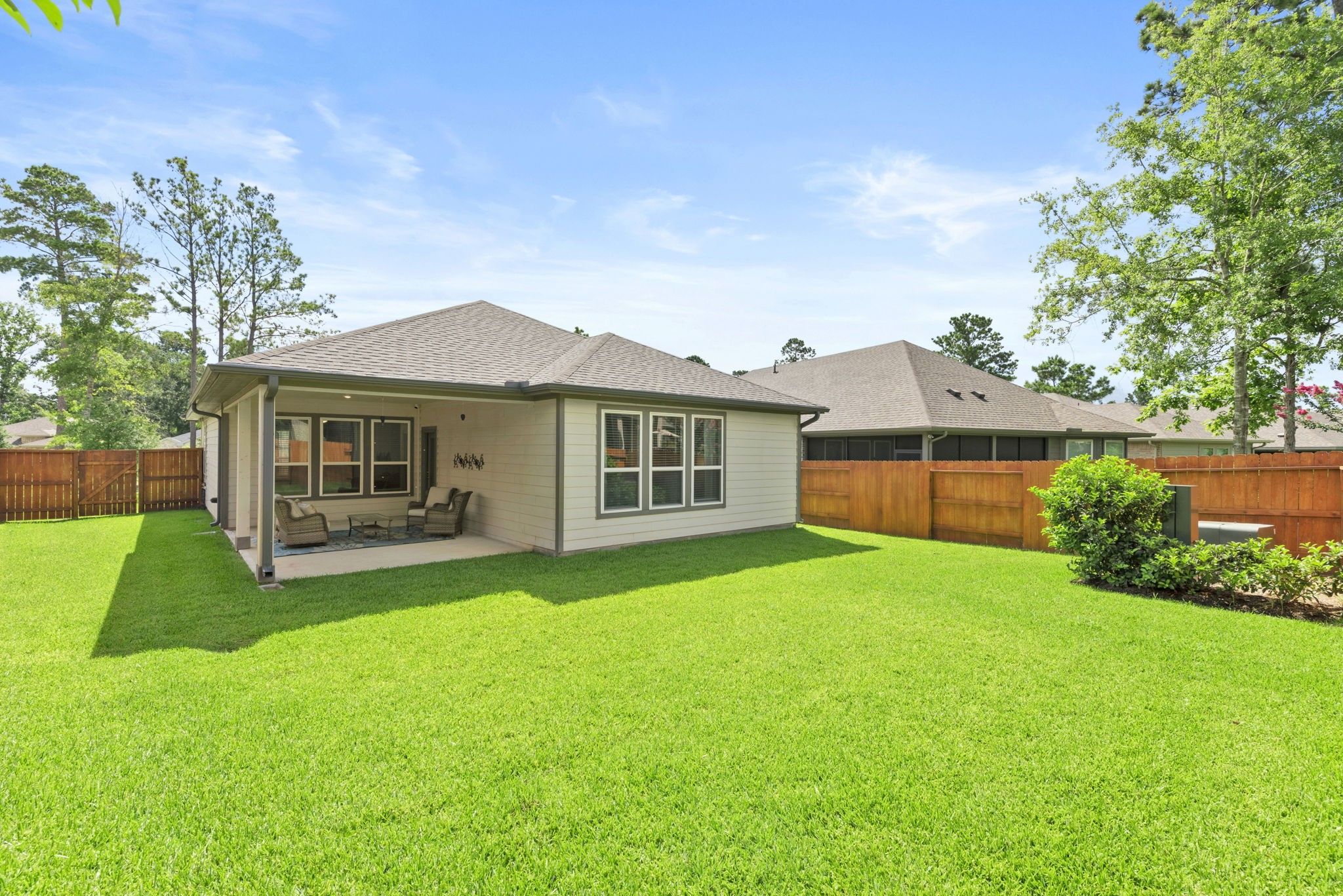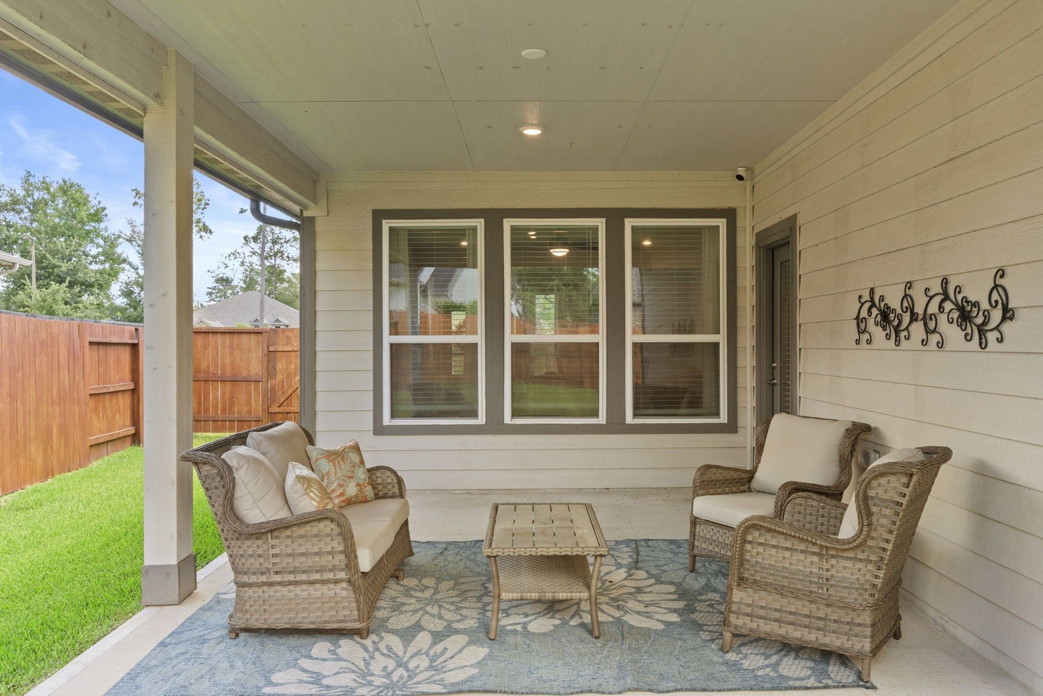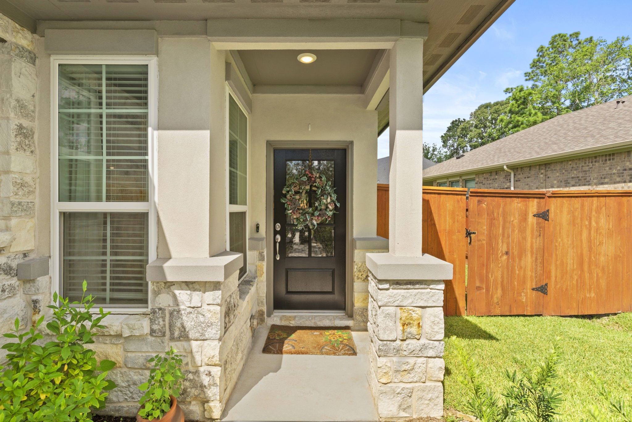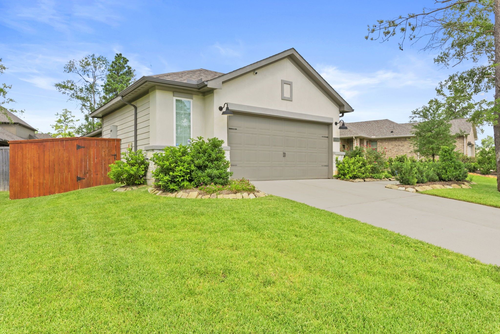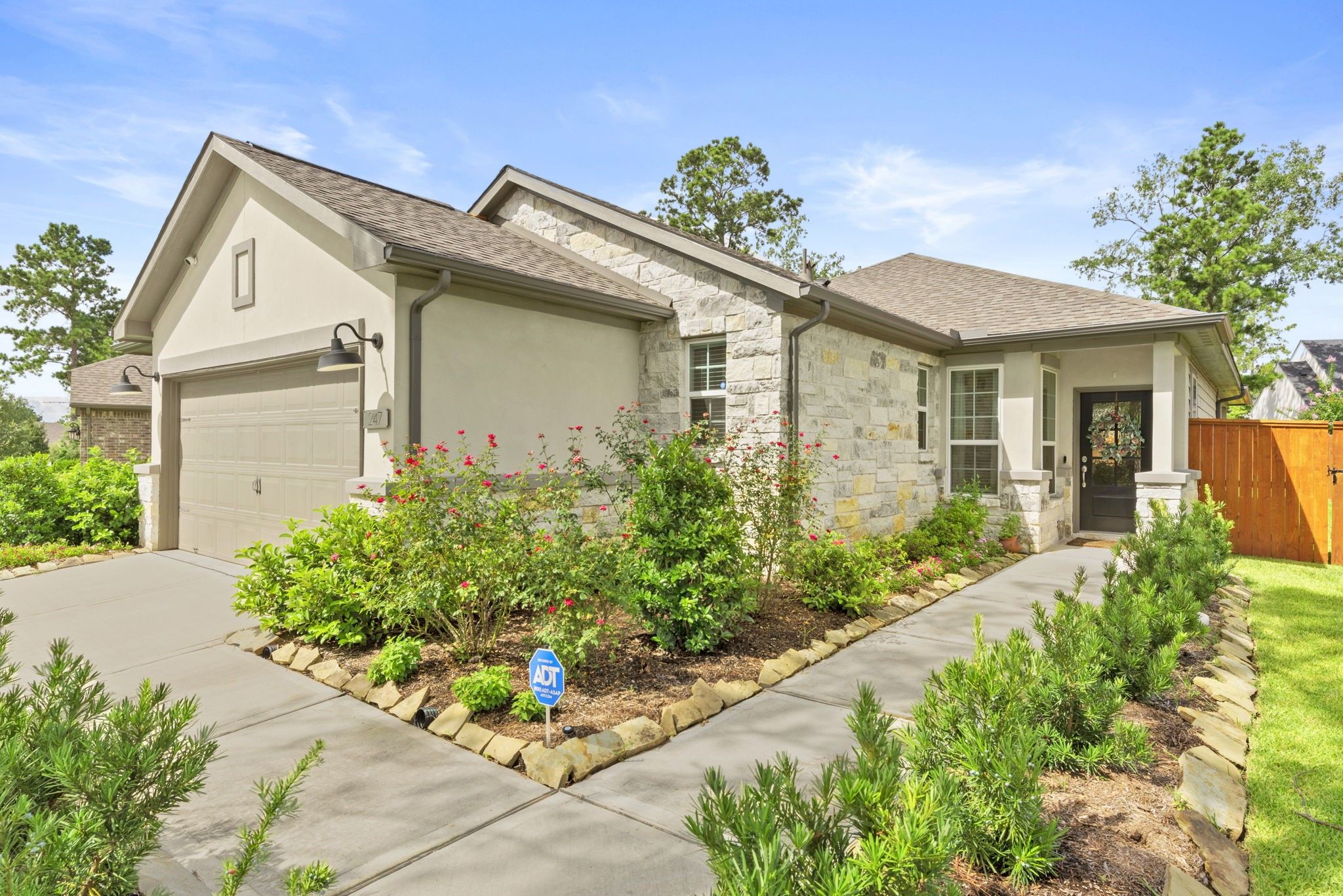 Nestled in the heart of nature and surrounded by resort style amenities of a master-planned, active adult enclave, this charming one-story, 2-bedroom, 2-bath home is more than just a residence—it's your gateway to a vibrant, fulfilling lifestyle. Located in Bonterra at Woodforest, a 55+ community offering a 27-hole championship golf course, clubhouse, pools, trails & lush parks, this home invites relaxation & connection. Inside, luxury vinyl plank floors guide you through an open-concept layout where a gourmet kitchen with entertainer’s island, quartz countertops & generous cabinetry—flows seamlessly into a bright, welcoming living space. Soft carpet adds comfort to the guest room, while the dining area offers tranquil views. The serene primary suite features a spa-inspired walk-in shower & spacious closet. A covered patio overlooks a peaceful backyard retreat—perfect for your morning coffee. A GENERATOR offers added peace of mind. Come see what makes this place special!